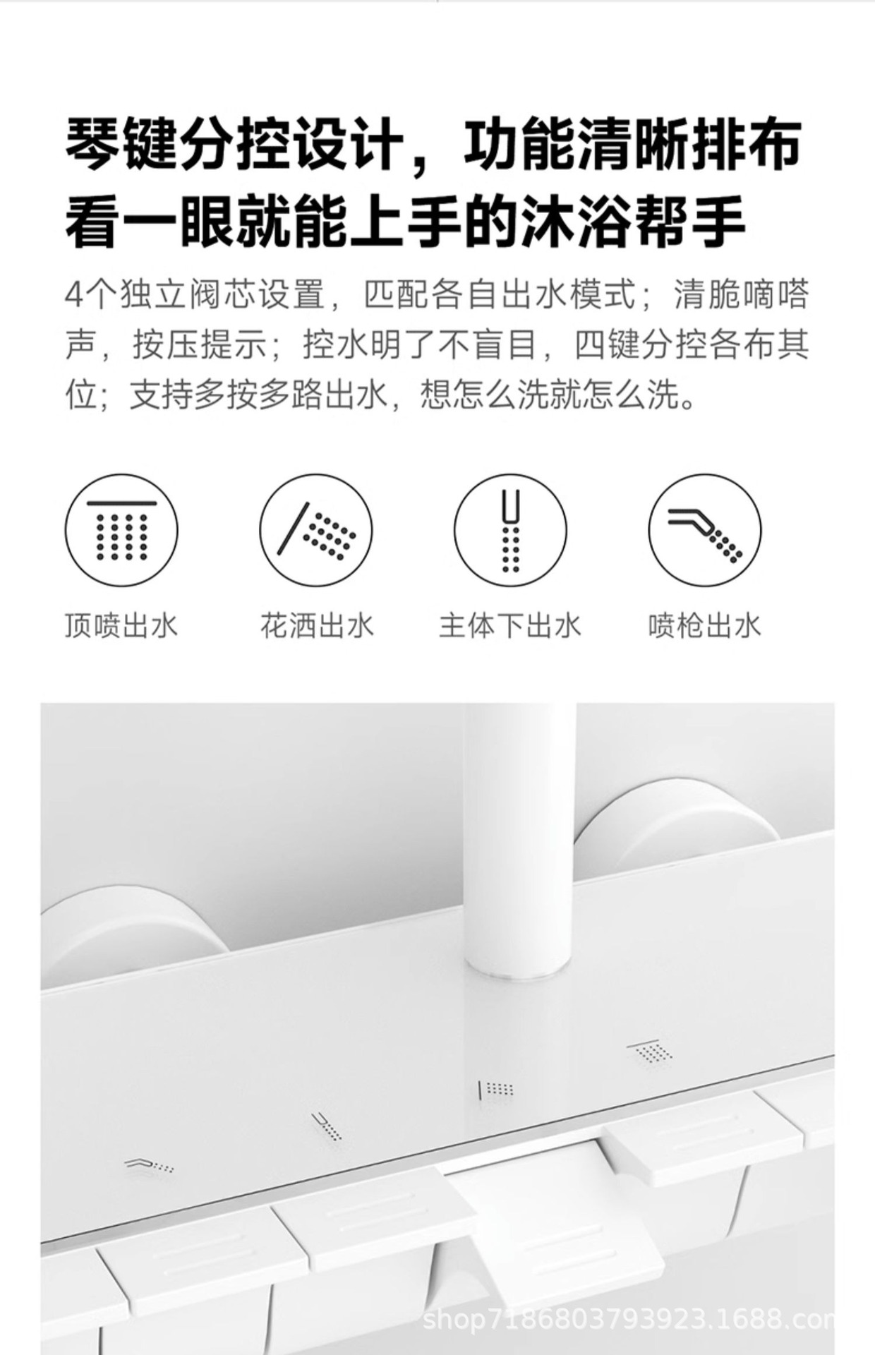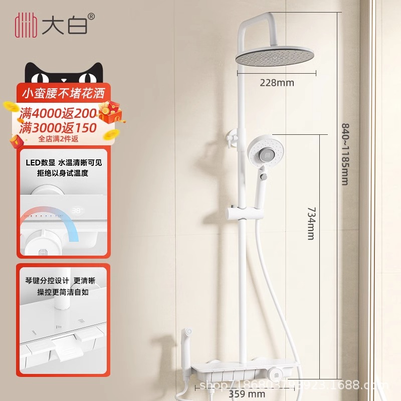 샤먼 화이트 욕실 피아노 키 샤워 세트 가정용 화이트 구리 샤워 욕실스토어 가기