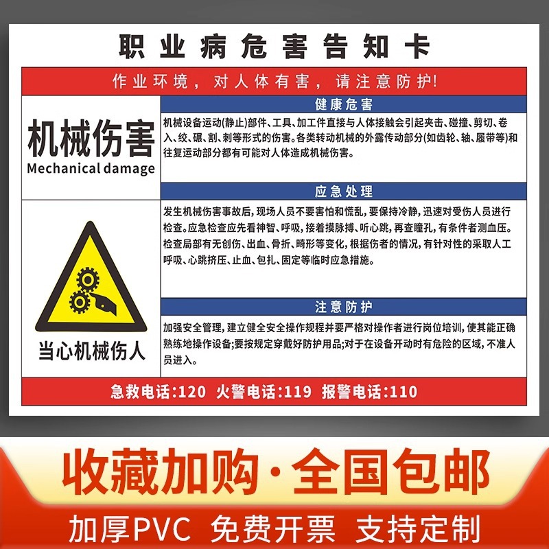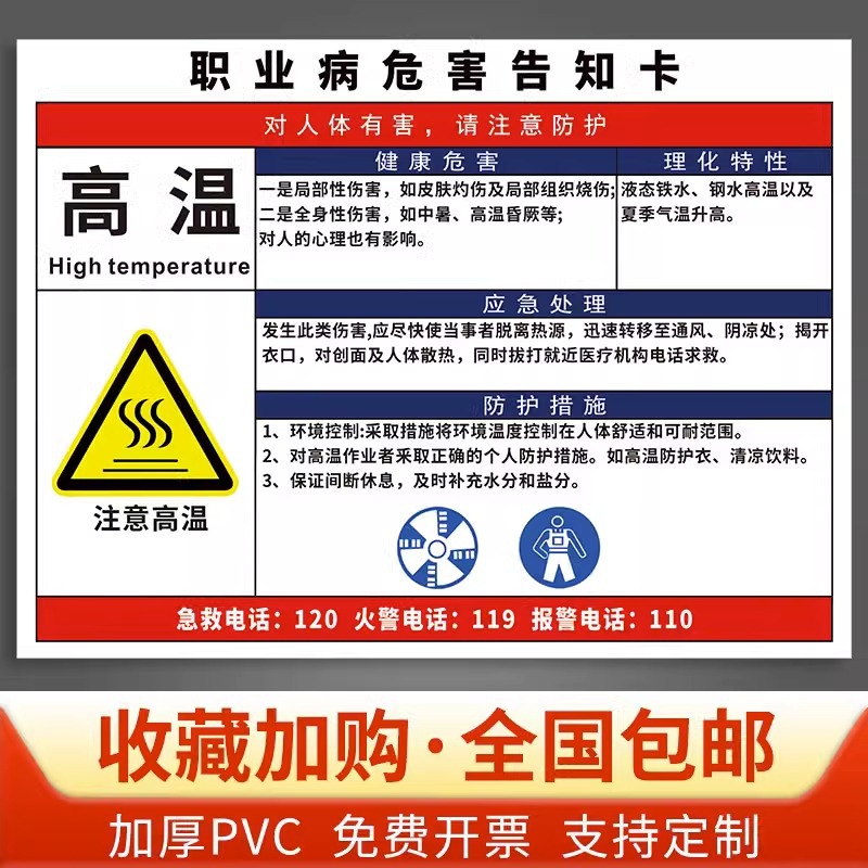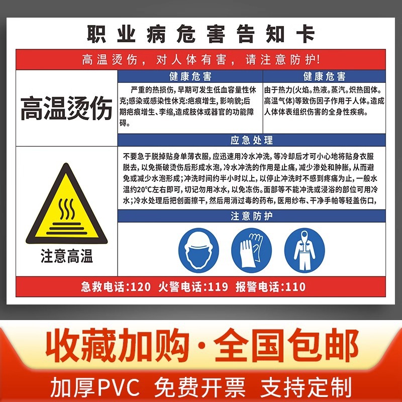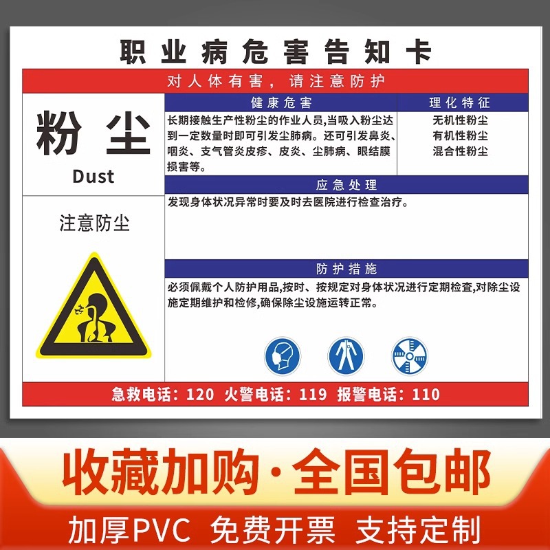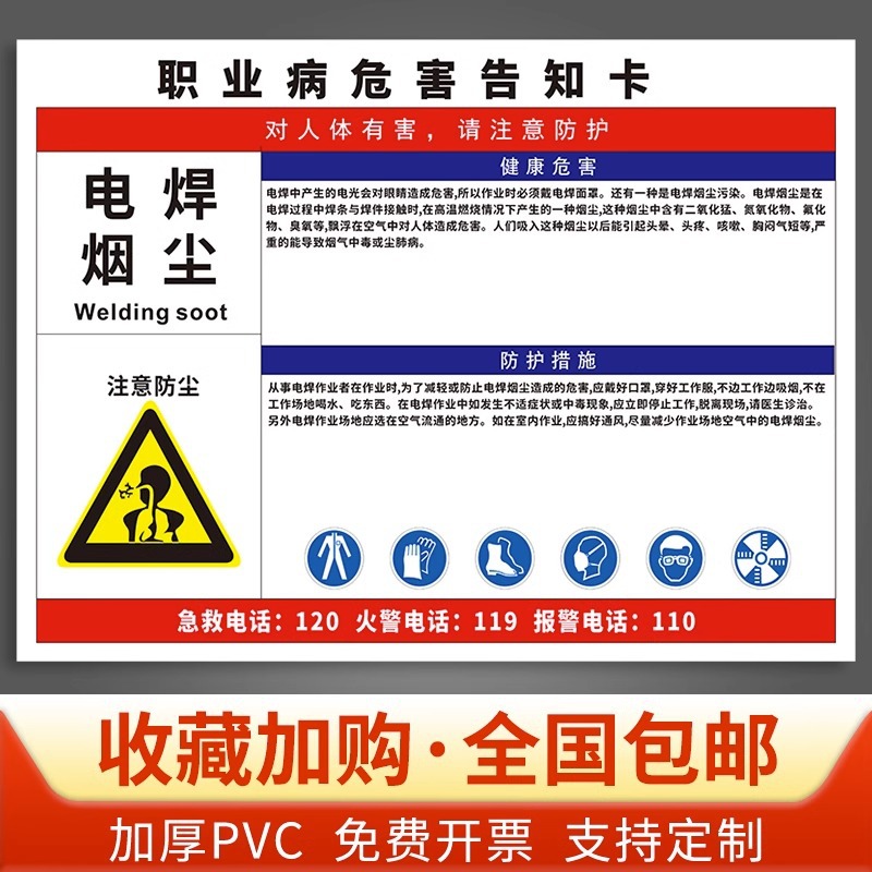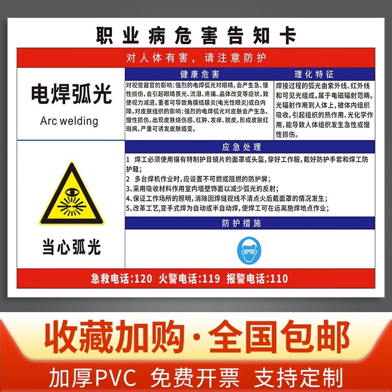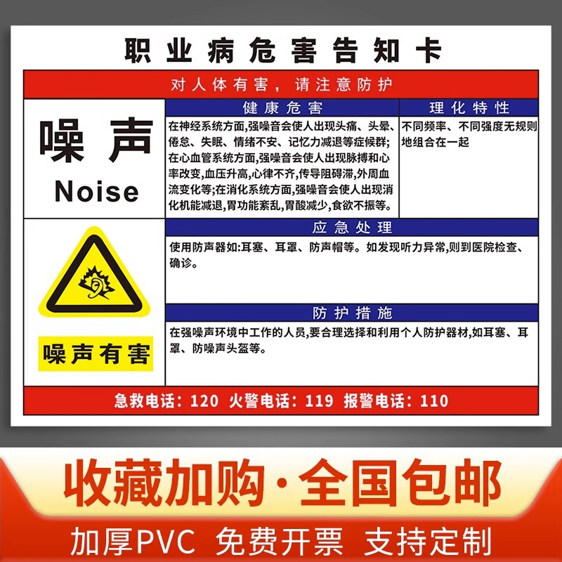 직업 위험 통지 카드 소음 먼지 고온 경고 표시 용접 안전 위험 지점 알려진 카드