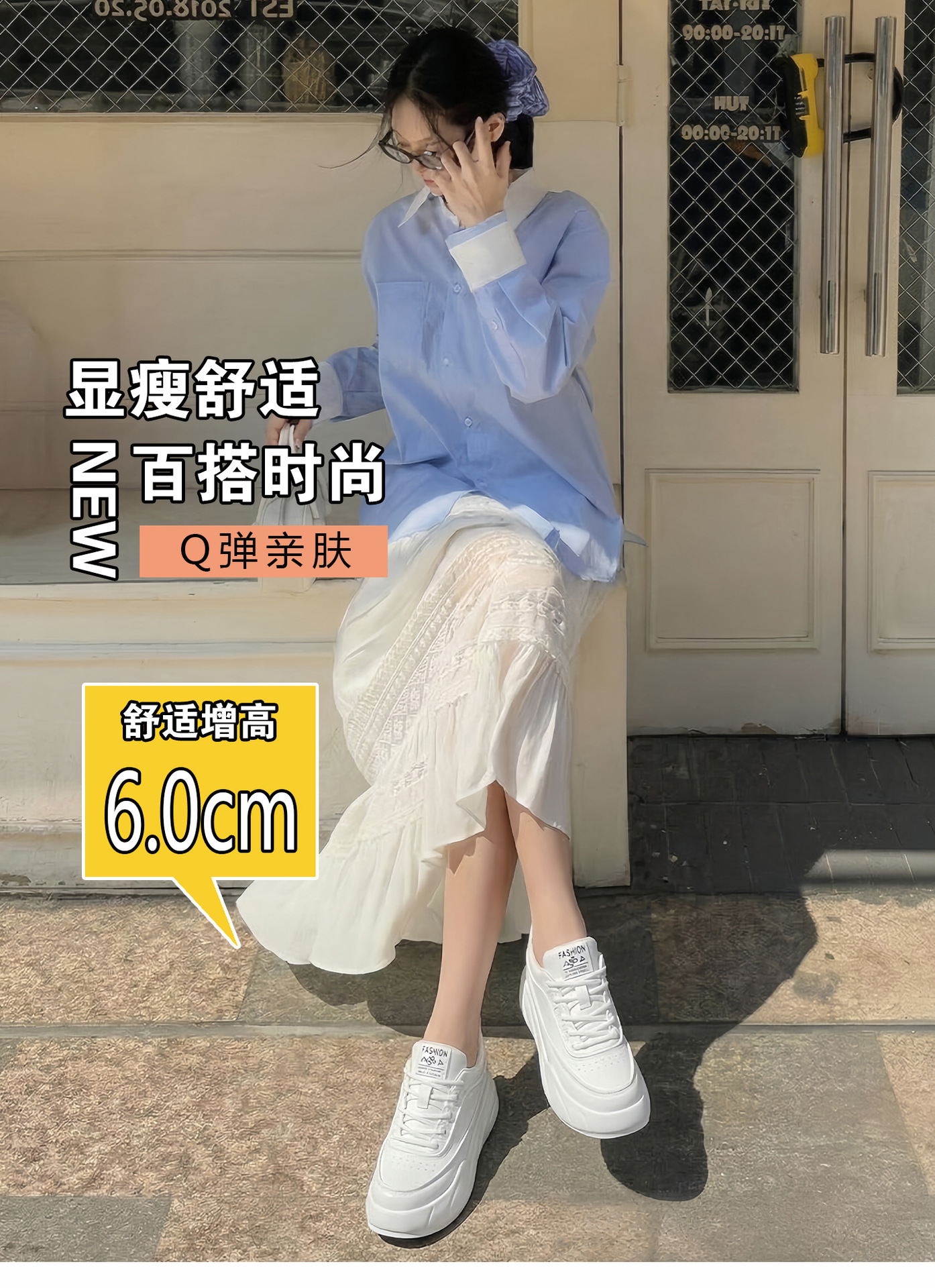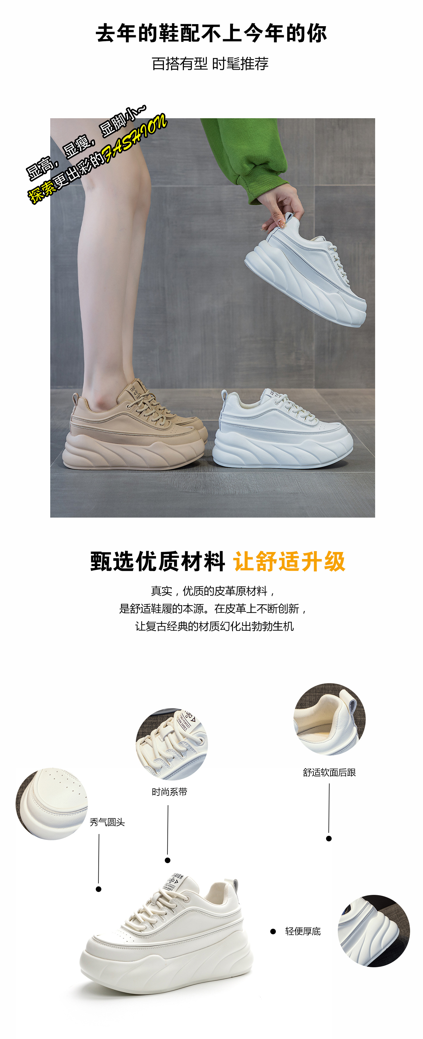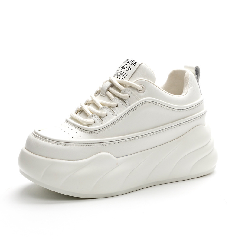 2025년 가을 신상 키높이 화이트 슈즈 두꺼운 밑창 한국 스타일 웨지힐 학생화 캐주얼 아빠 신발 패션 여성화스토어 가기