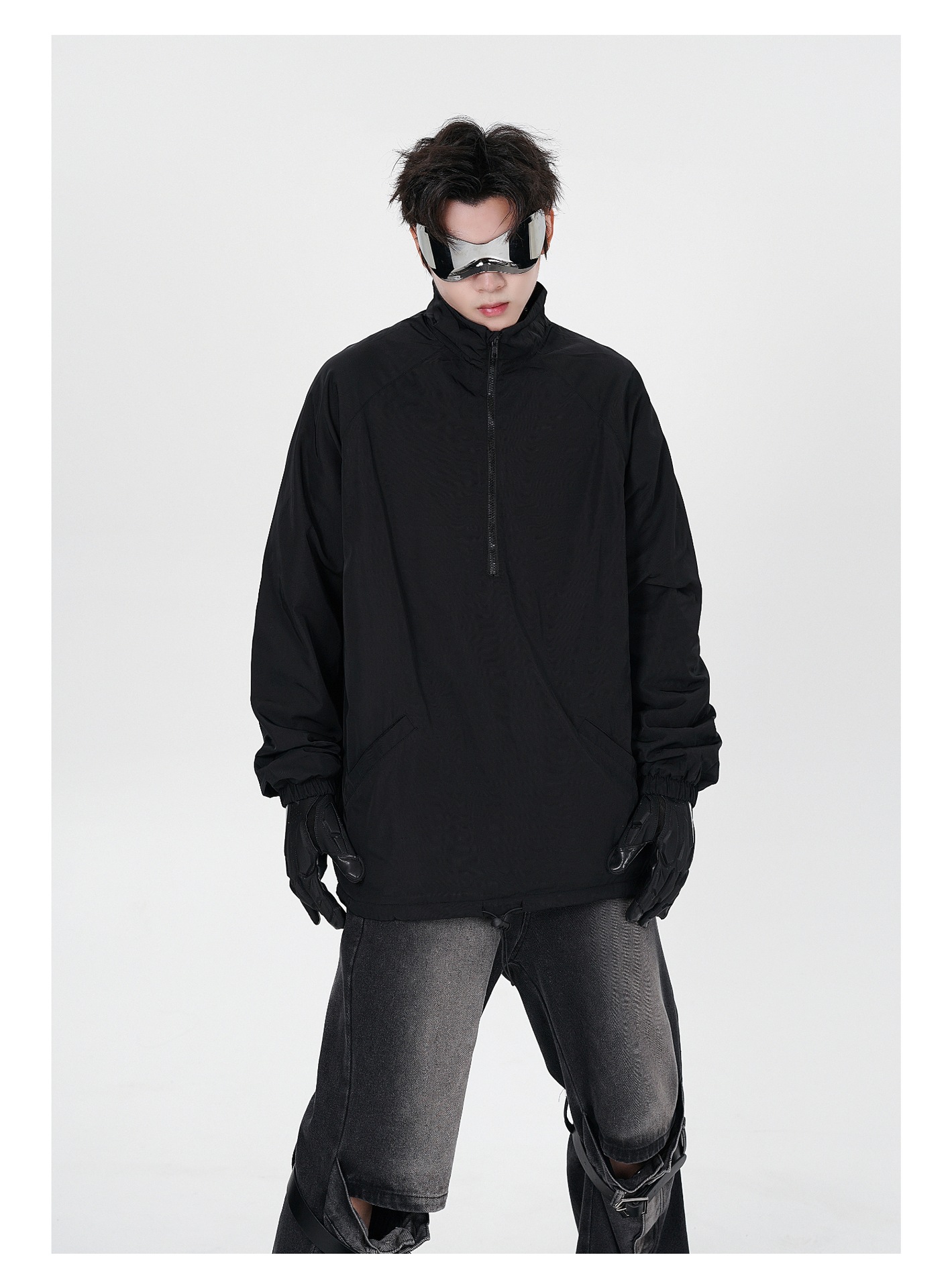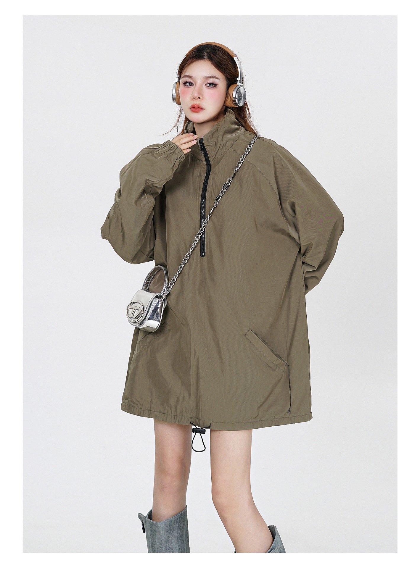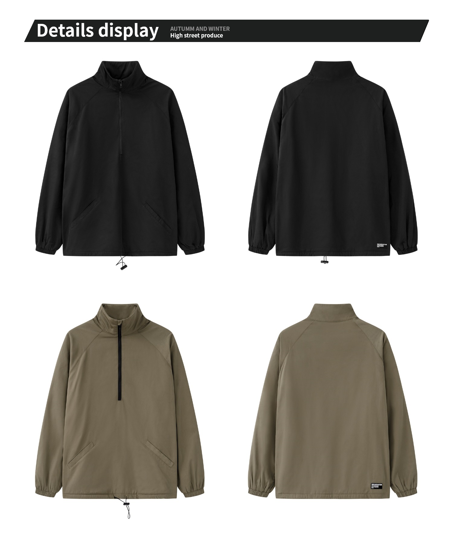 타이드 카드 로그 | 가을/겨울 하이 스트리트 하프 지퍼 스탠드 칼라 재킷 충전 기모 캐주얼 느슨한 코트 남성스토어 가기