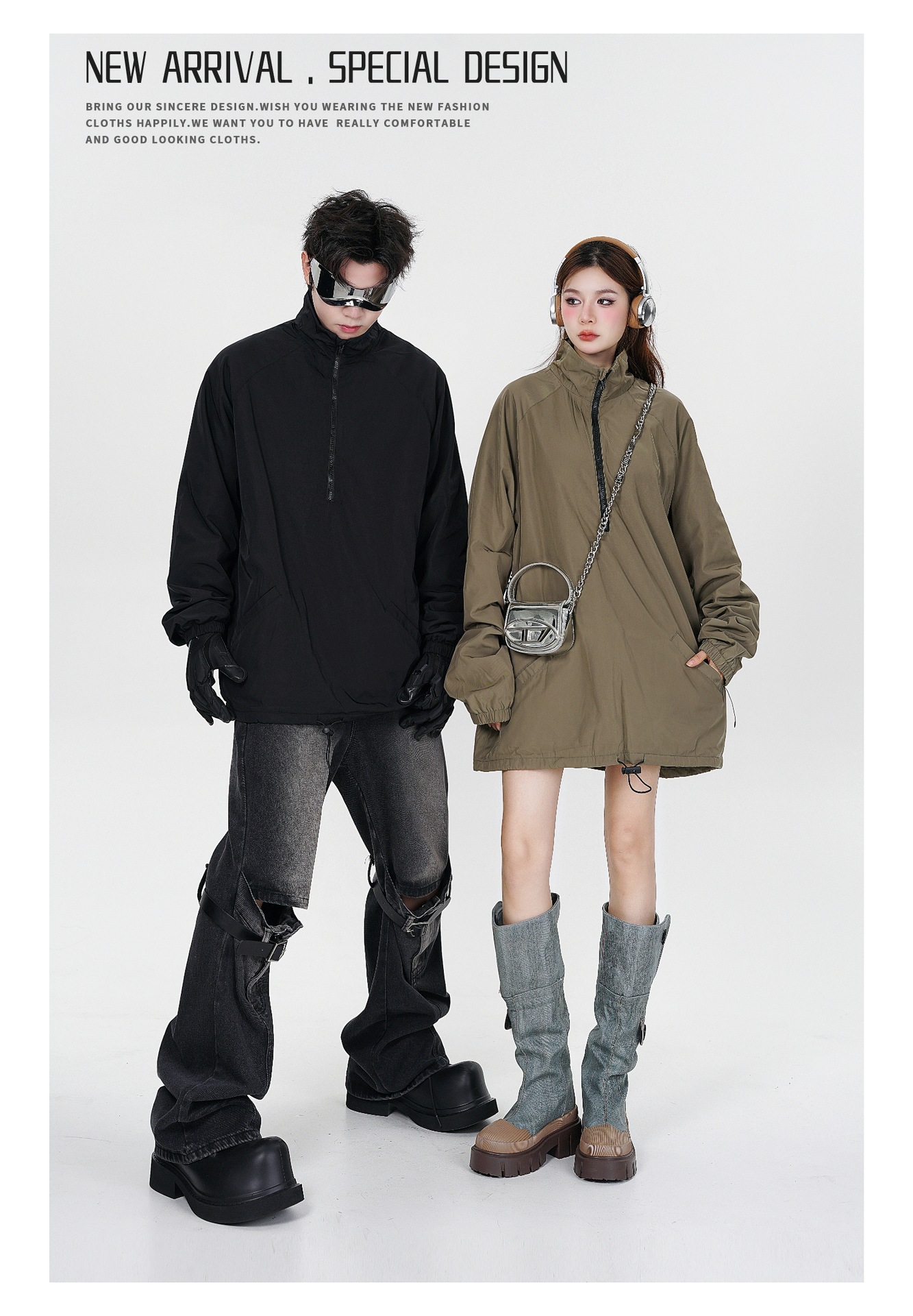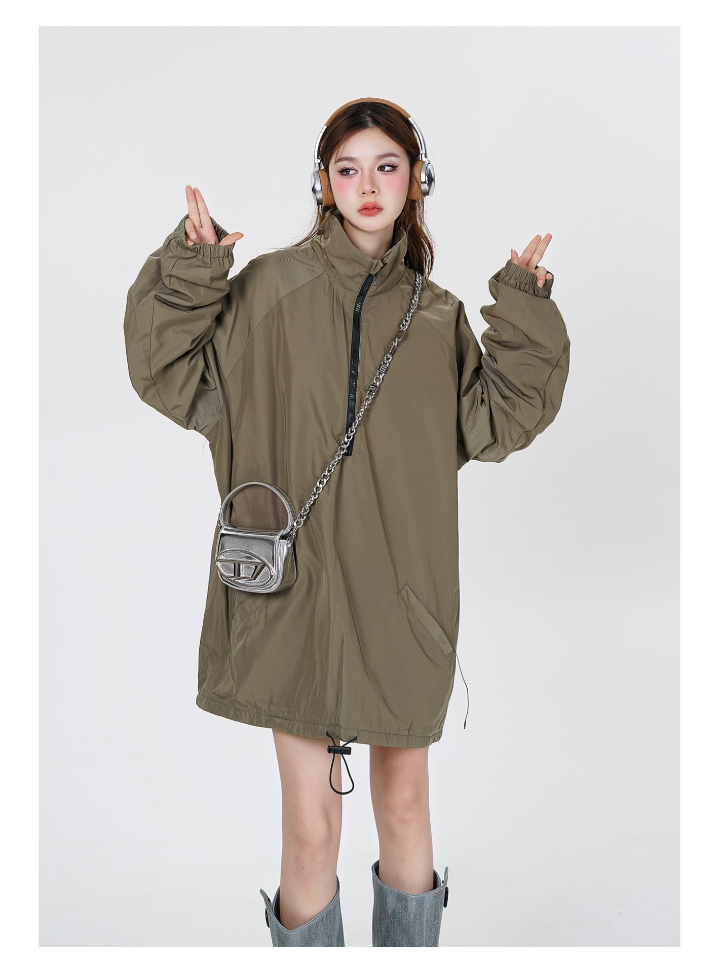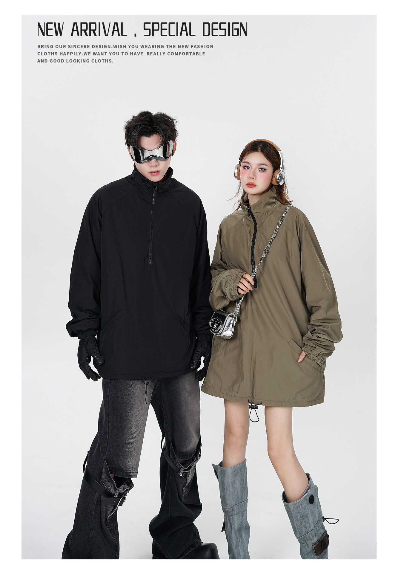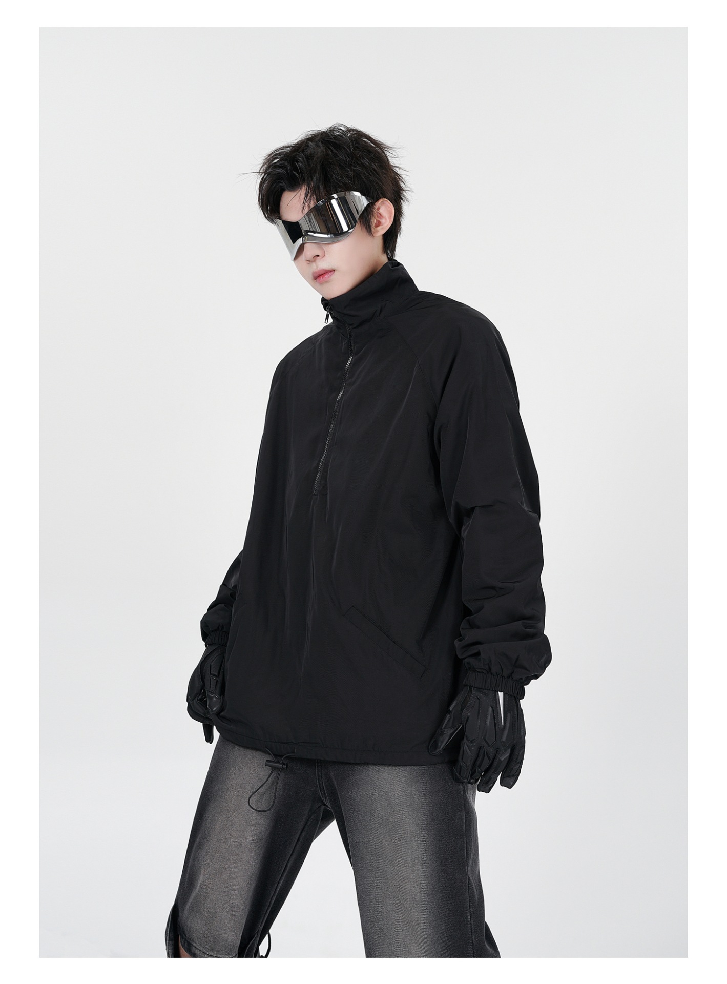 타이드 카드 로그 | 가을/겨울 하이 스트리트 하프 지퍼 스탠드 칼라 재킷 충전 기모 캐주얼 느슨한 코트 남성스토어 가기