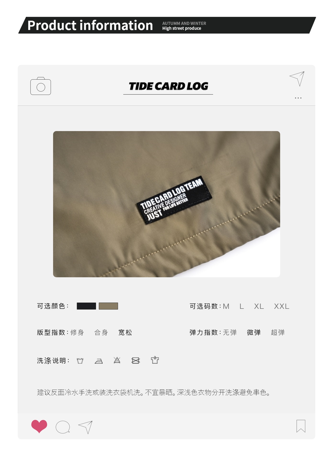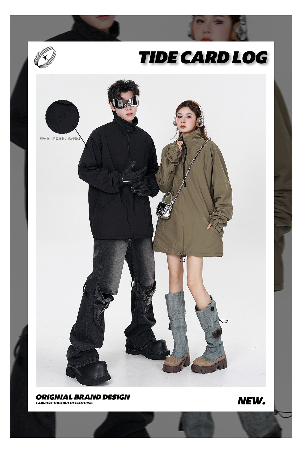 타이드 카드 로그 | 가을/겨울 하이 스트리트 하프 지퍼 스탠드 칼라 재킷 충전 기모 캐주얼 느슨한 코트 남성