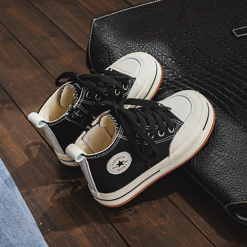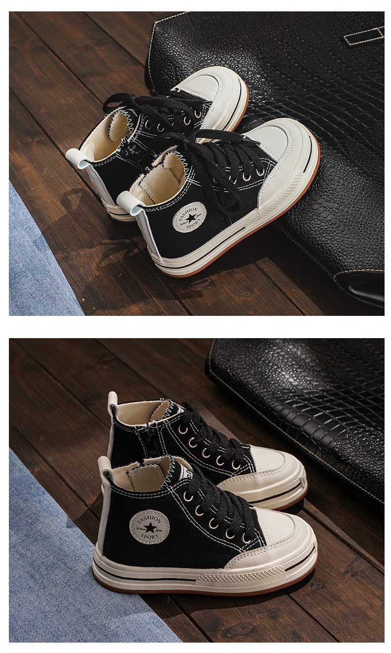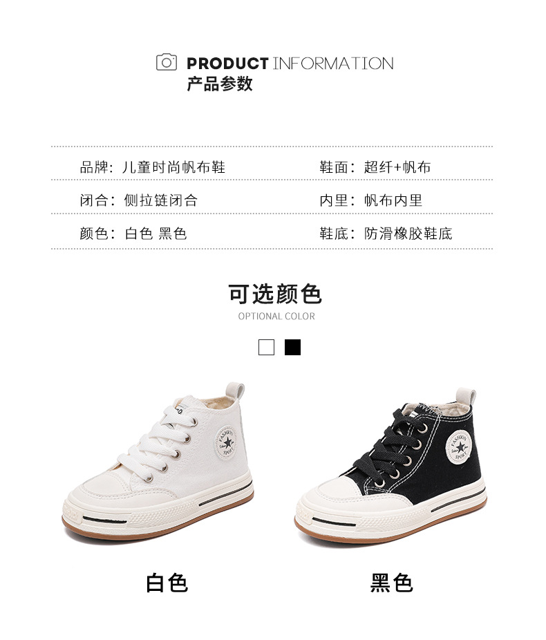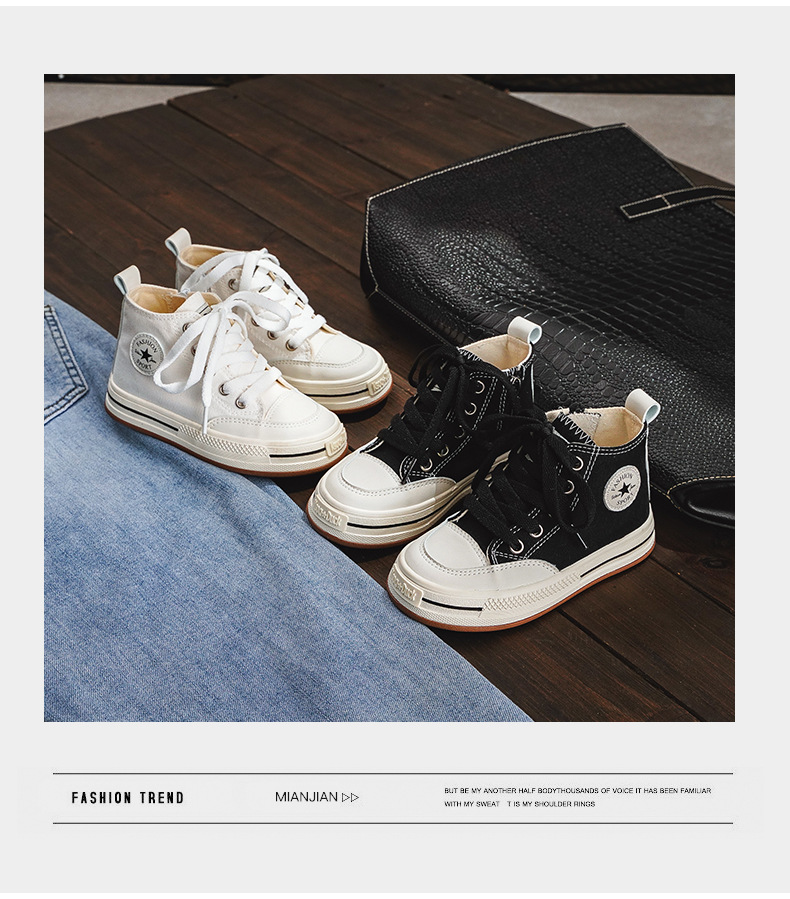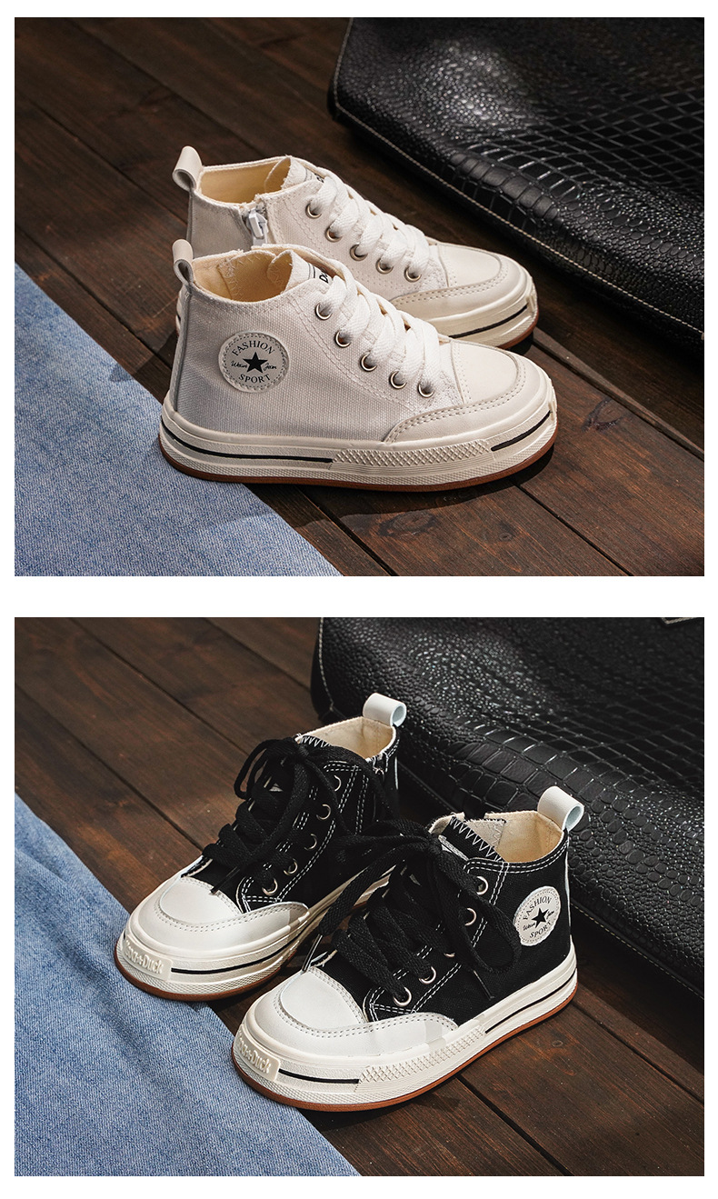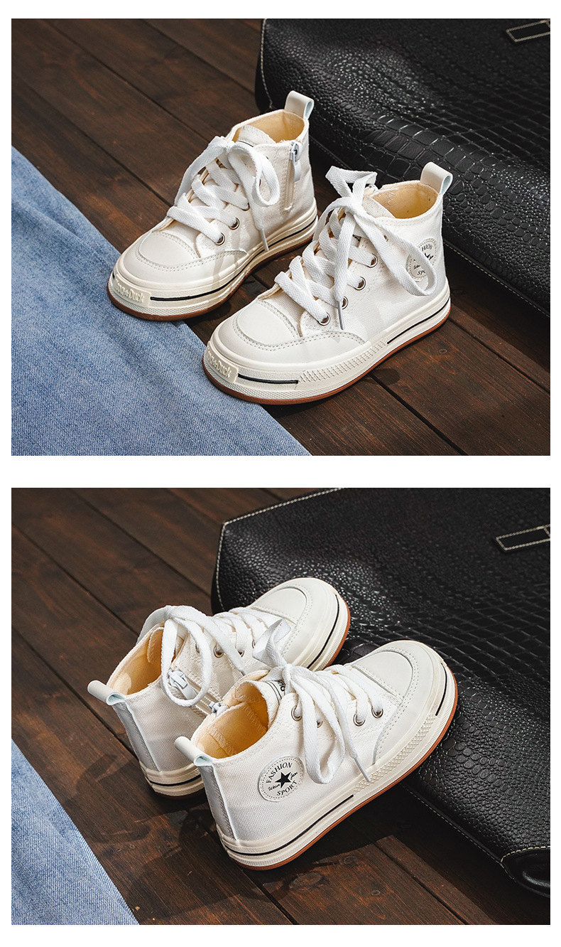 어린이 하이탑 캔버스 신발 여아 신발 2023 새로운 봄과 가을 유행 통기성 작은 흰색 신발 소년 어린이 보드 신발