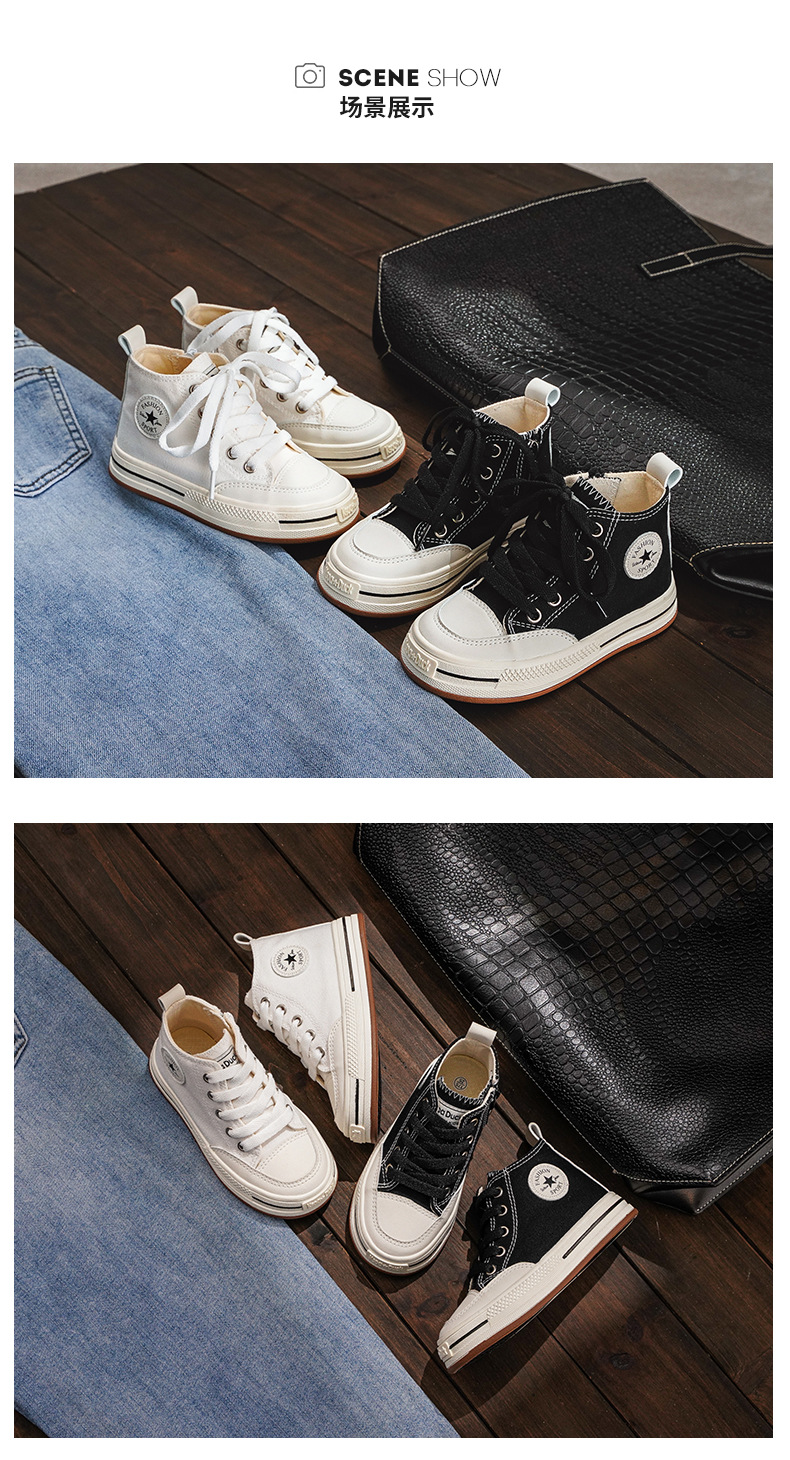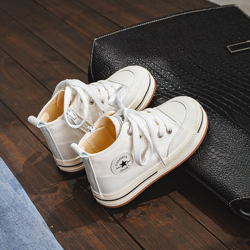 어린이 하이탑 캔버스 신발 여아 신발 2023 새로운 봄과 가을 유행 통기성 작은 흰색 신발 소년 어린이 보드 신발스토어 가기