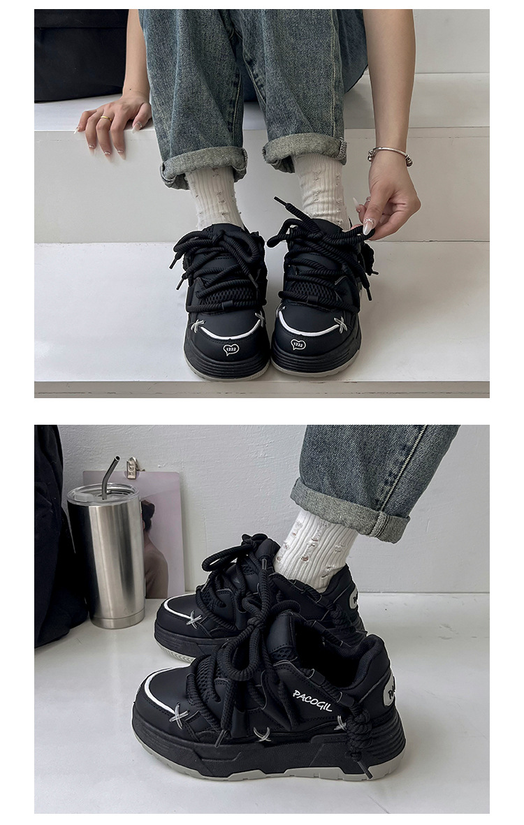 Guochao in 스타일 대학 틈새 트렌드 두꺼운 밑창 작은 검은 신발 남자의 복고풍 증가 연인 아버지 운동화 플러스 사이즈스토어 가기