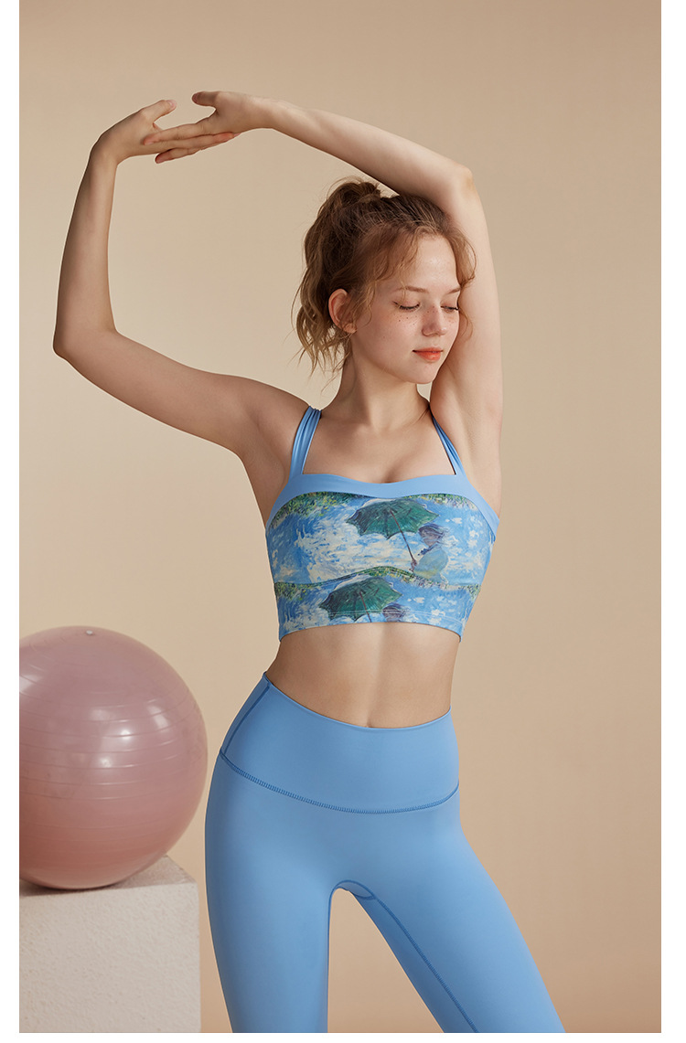새로운 유화 부서 체육관 스포츠 실행 뷰티 백 브라 탑 피트니스 모임 세트 충격 방지 요가 조끼