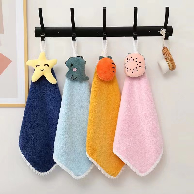 어린이 만화 손 수건 귀여운 매달려 수건 부드러운 흡수성 산호 벨벳 사각 수건 유치원 선물 상자스토어 가기