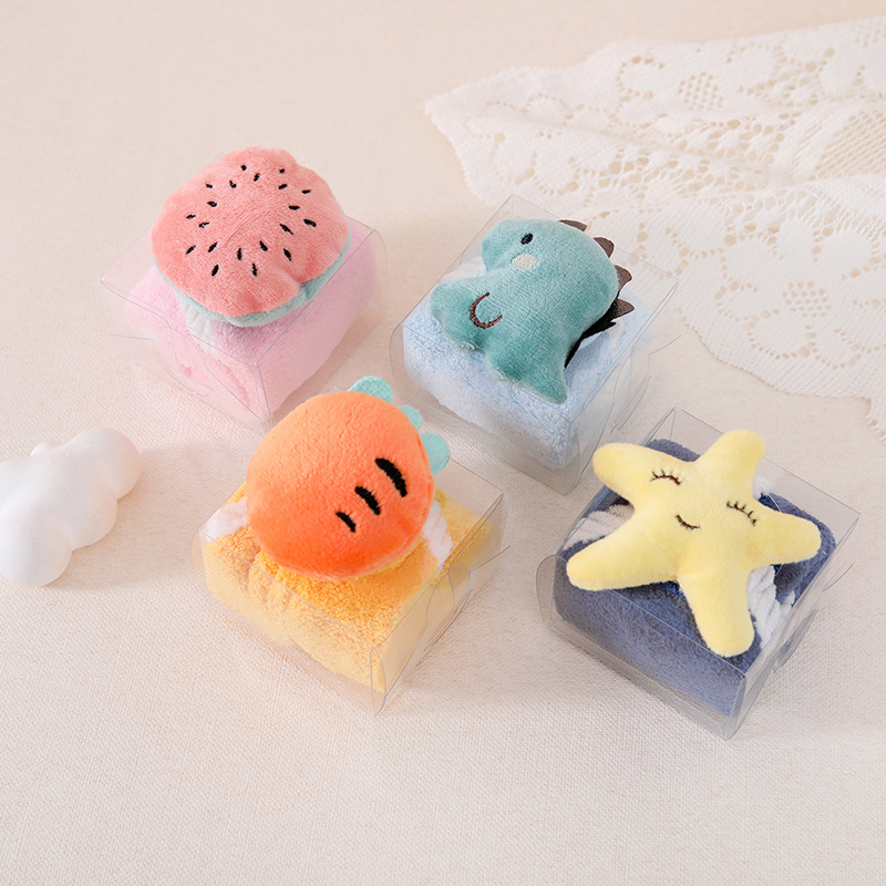 어린이 만화 손 수건 귀여운 매달려 수건 부드러운 흡수성 산호 벨벳 사각 수건 유치원 선물 상자
