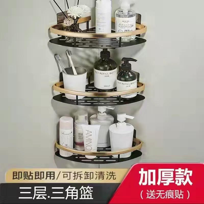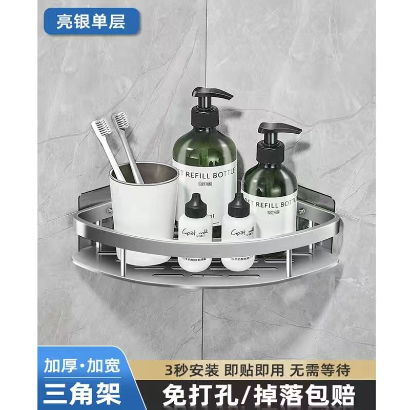 펀치없는 공간 알루미늄 욕실 랙 화장실 화장실 욕실 보관 랙 벽 장착 화장실 코너스토어 가기
