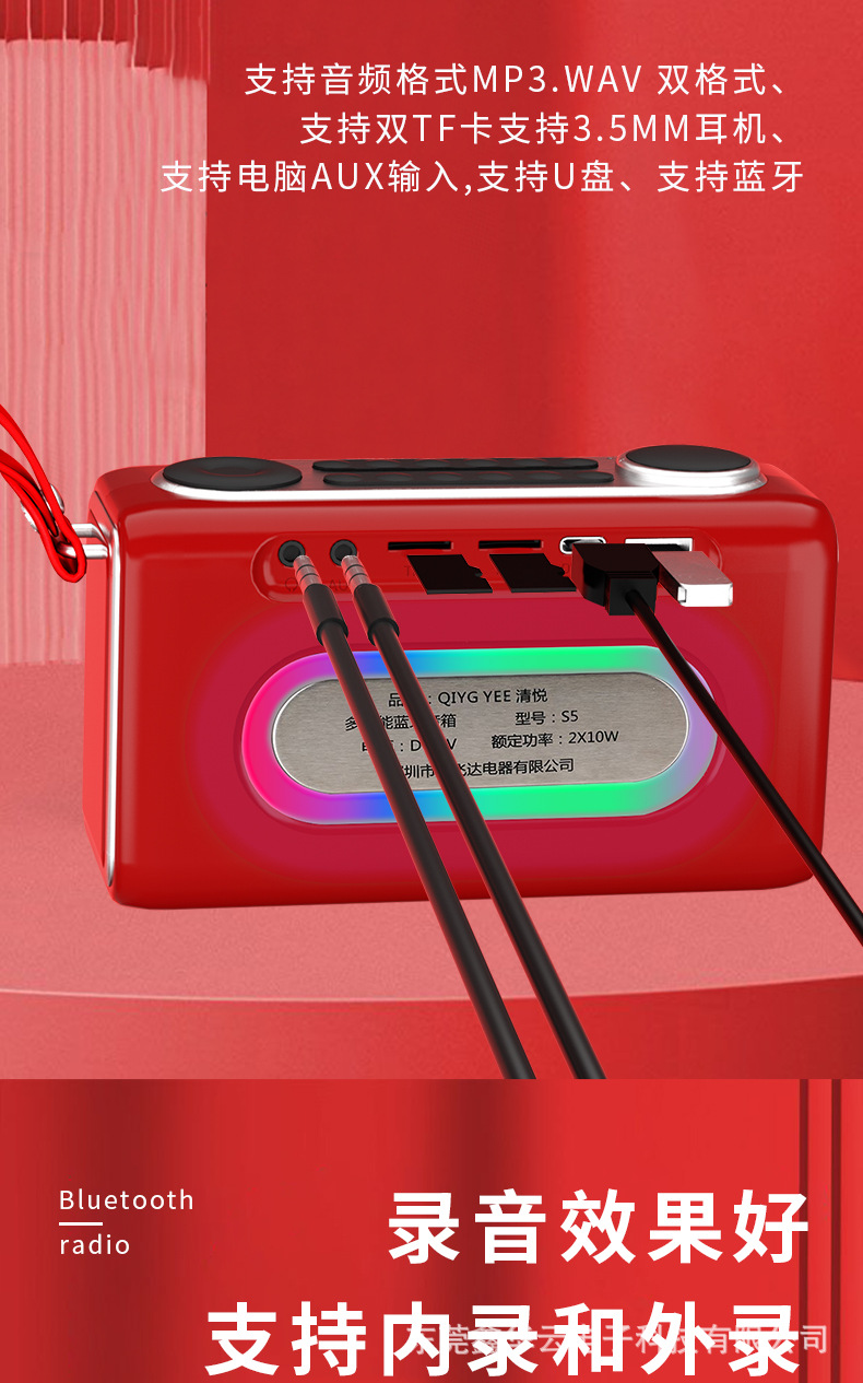 Qingyue S5 고출력 서브우퍼 야외 휴대용 블루투스 스피커 다기능 음악 플레이어 카드 라디오