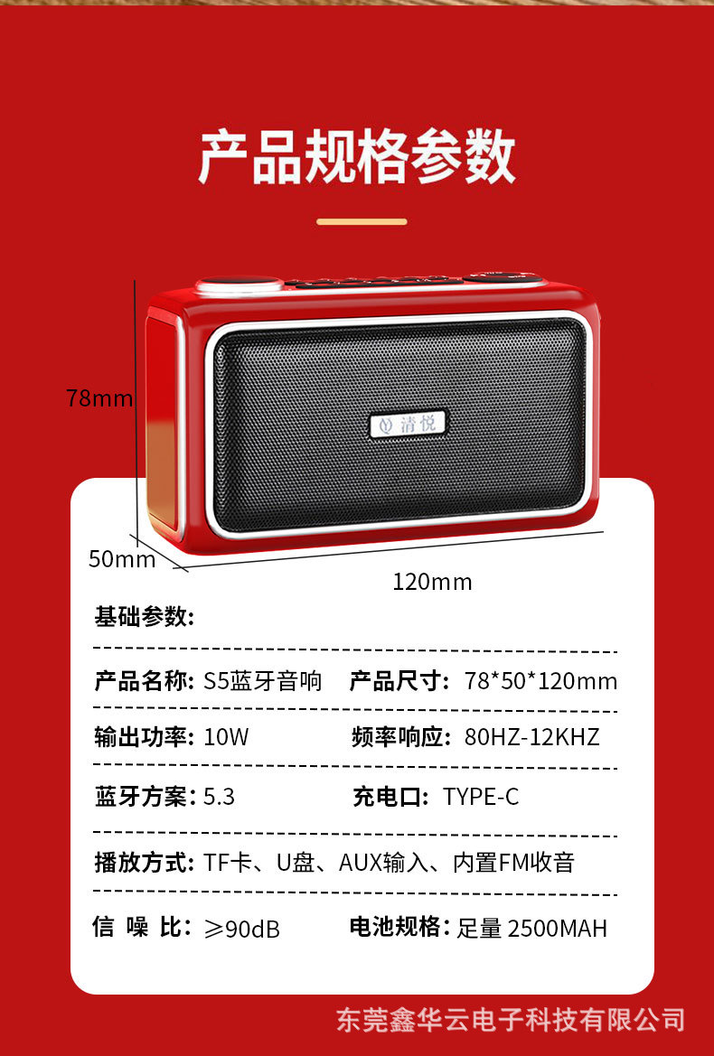 Qingyue S5 고출력 서브우퍼 야외 휴대용 블루투스 스피커 다기능 음악 플레이어 카드 라디오스토어 가기