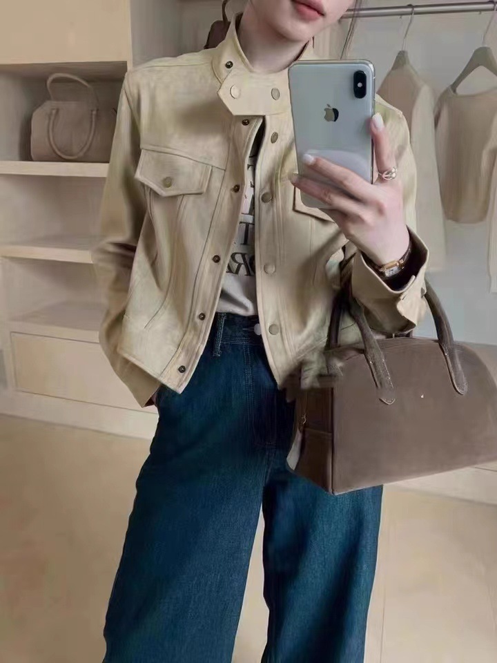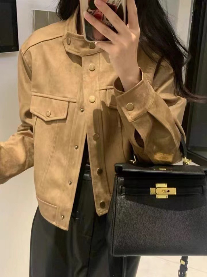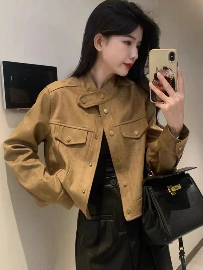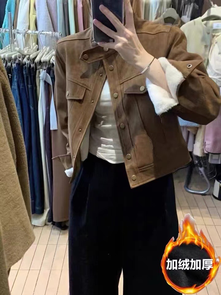 스웨이드 가을 겨울 한국 스타일 여성용 루즈핏 슬리밍 숏 긴팔 자켓 루즈핏 탑스토어 가기