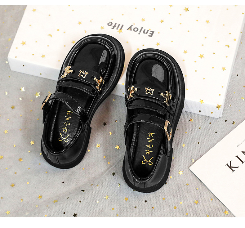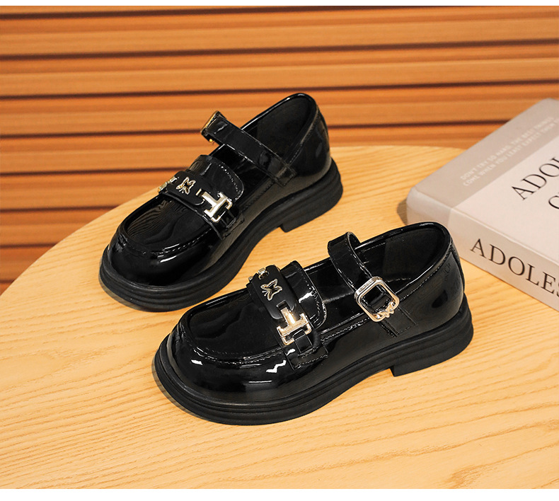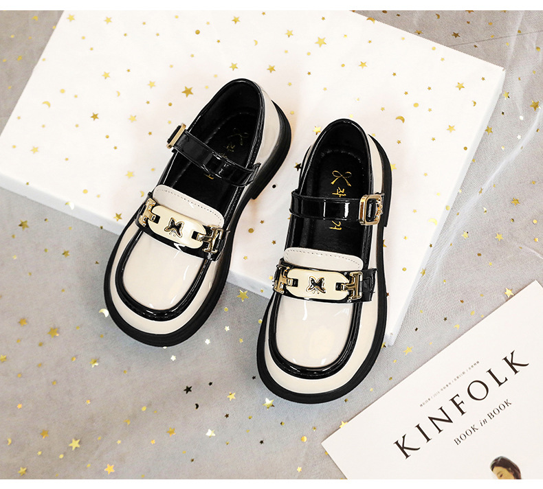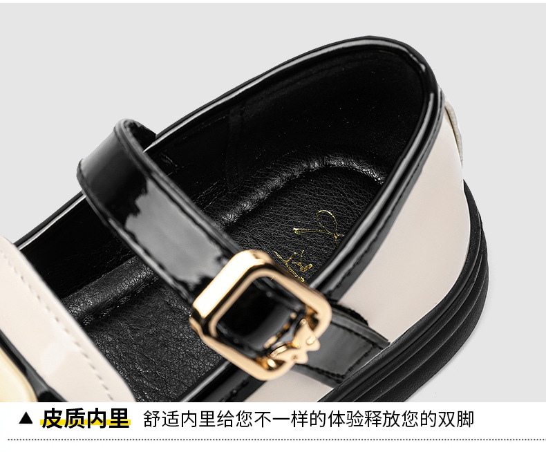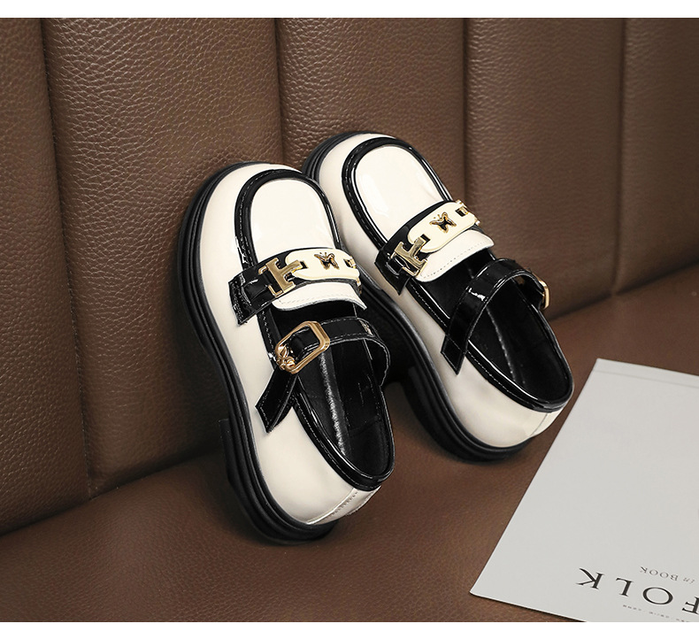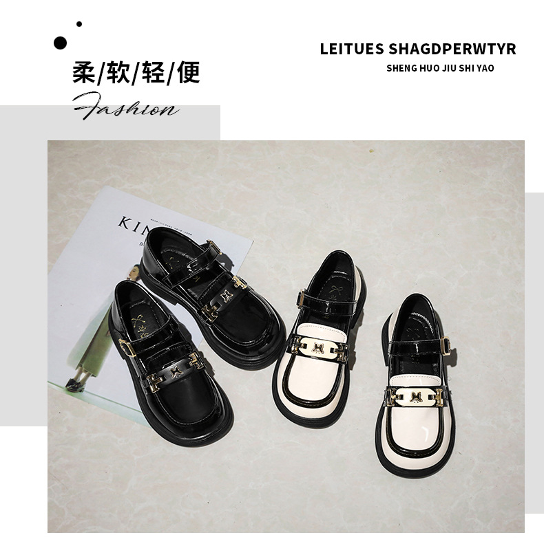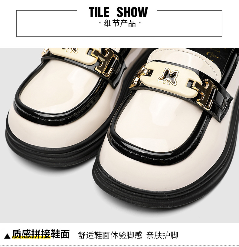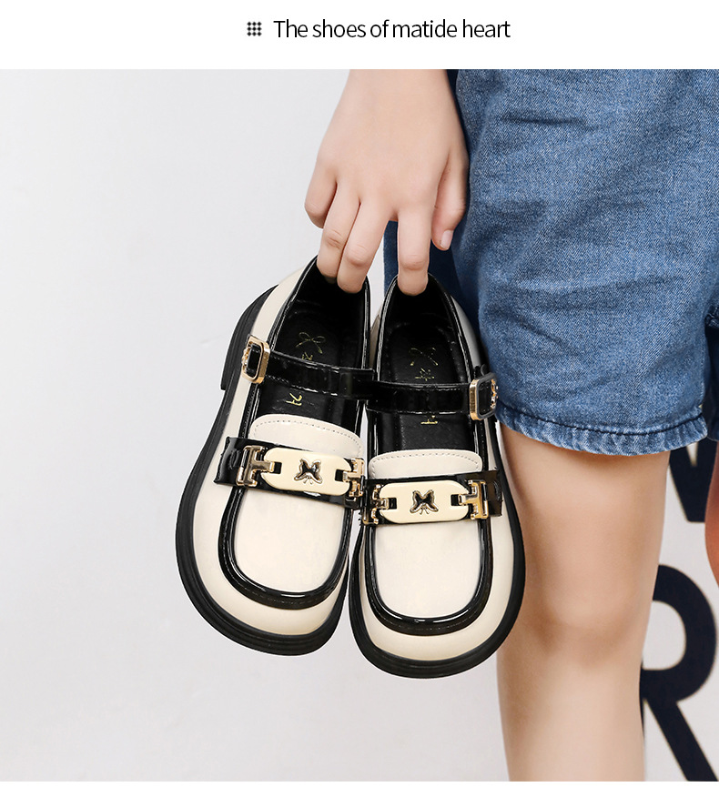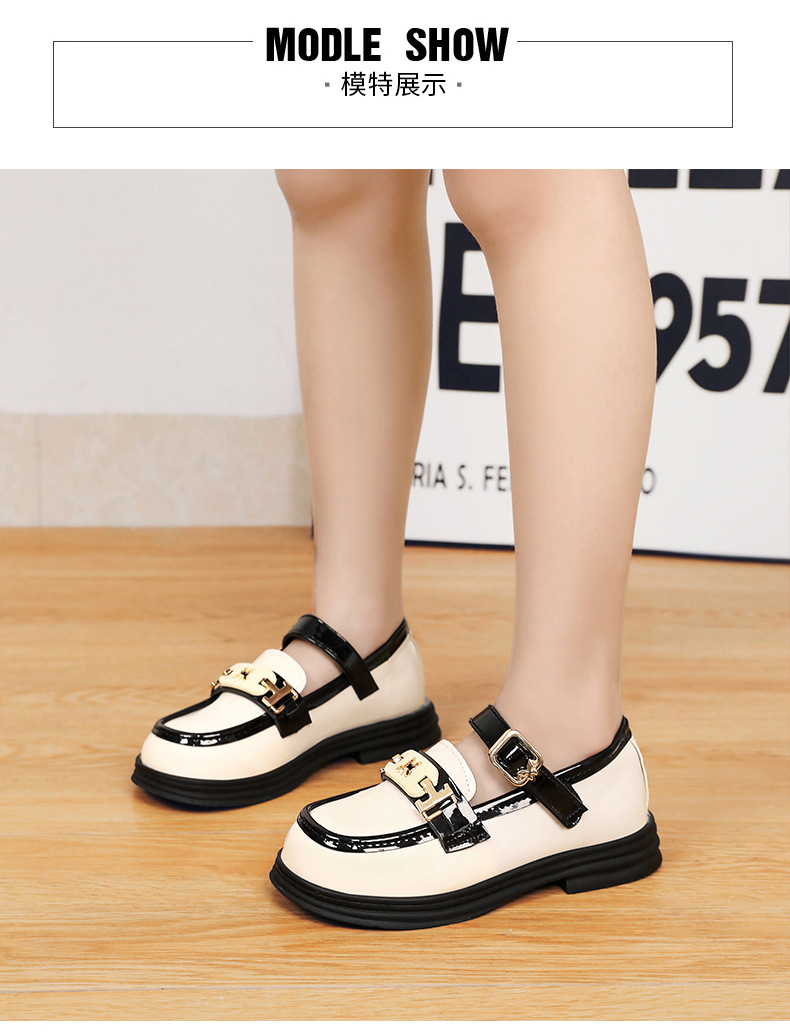 작은 노란 오리 소녀 영국 스타일 가죽 신발 2023 봄과 가을 새로운 캐주얼 부드러운 밑창 학교 공연 두꺼운 밑창 어린이 싱글 레이어 신발스토어 가기