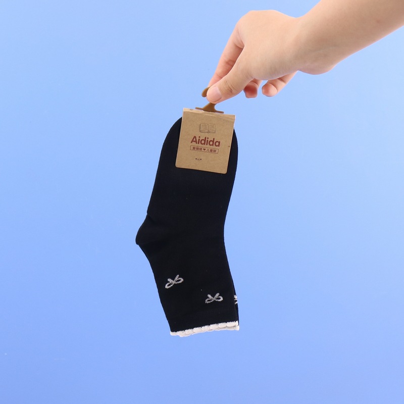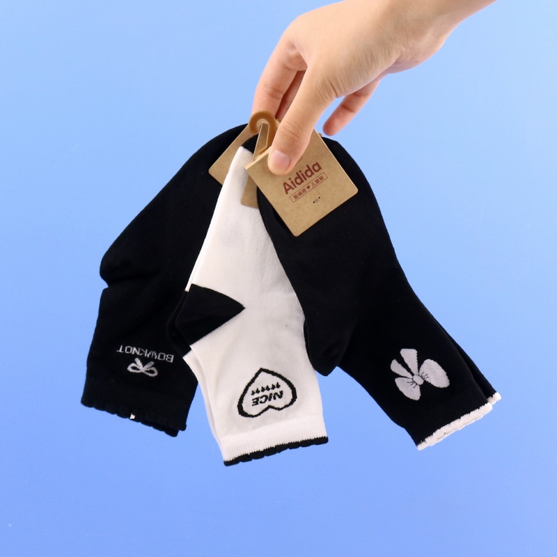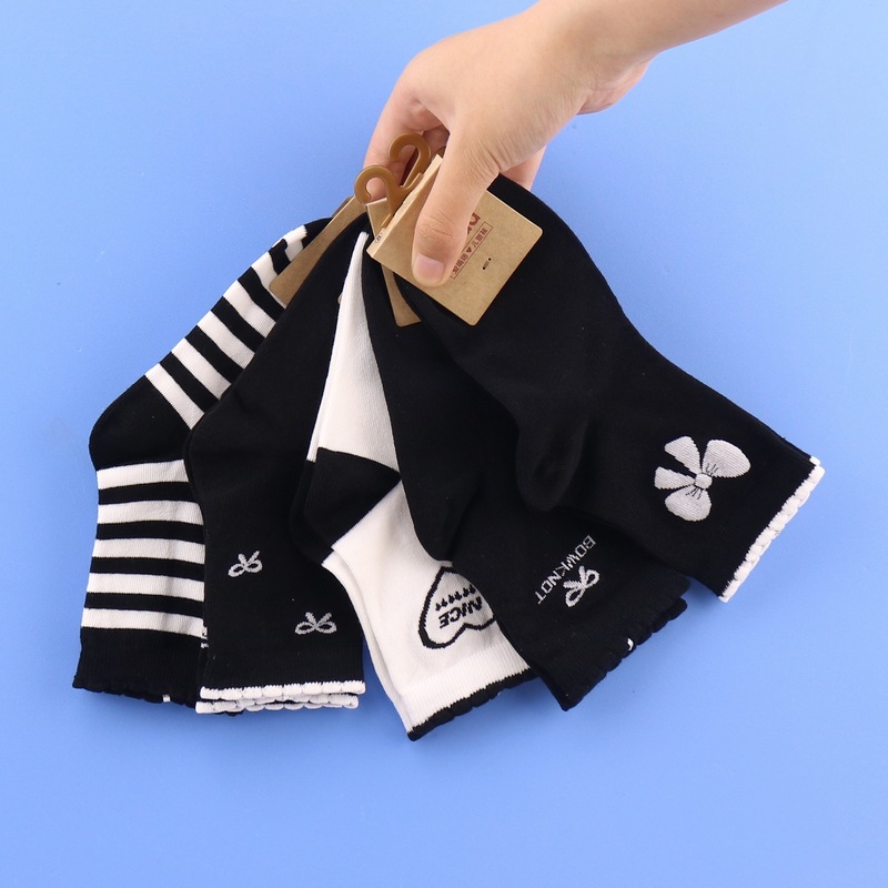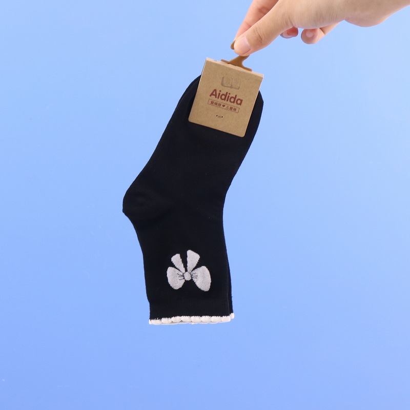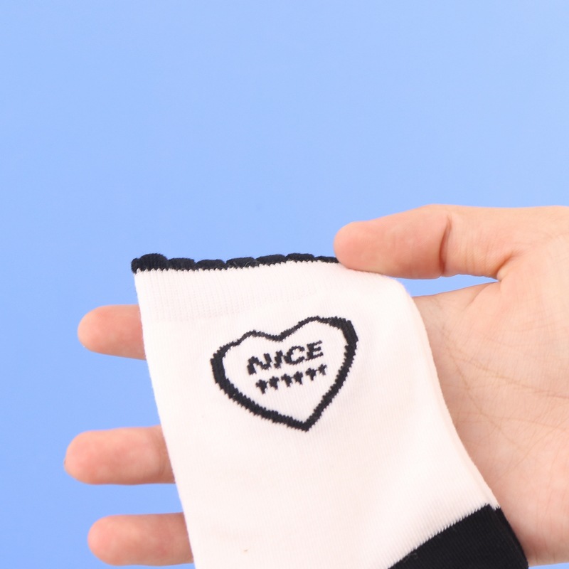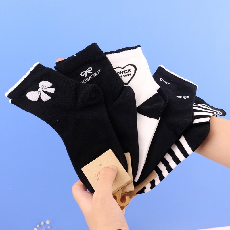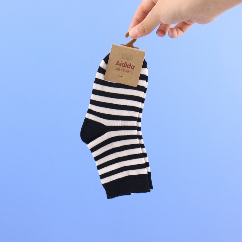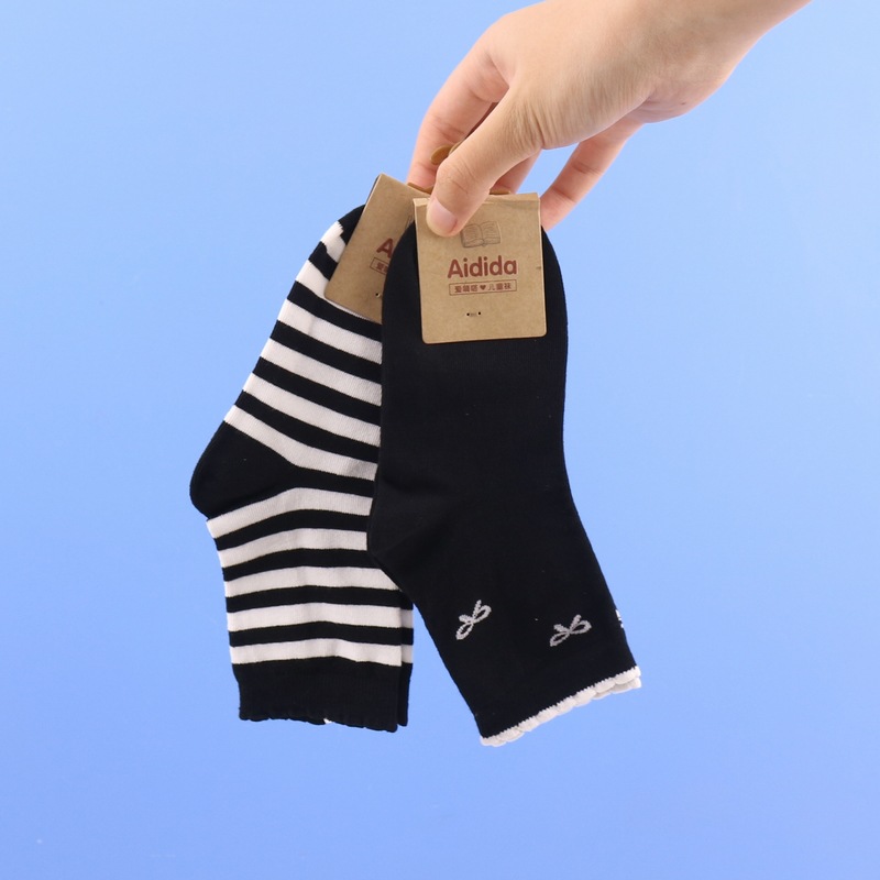 Love Tick-tock 어린이 양말 가을 새로운 흑백 줄무늬 소녀 튜브 레이스 양말 귀여운 공주 양말스토어 가기