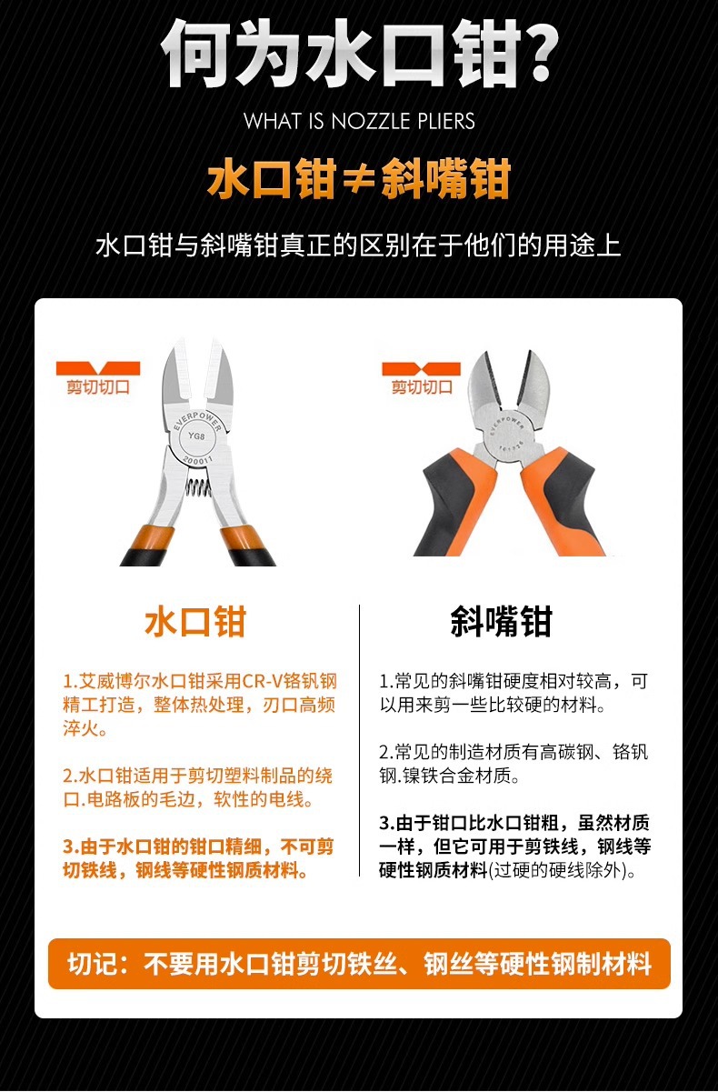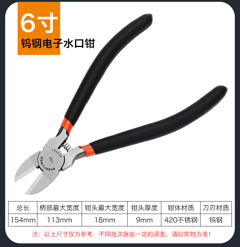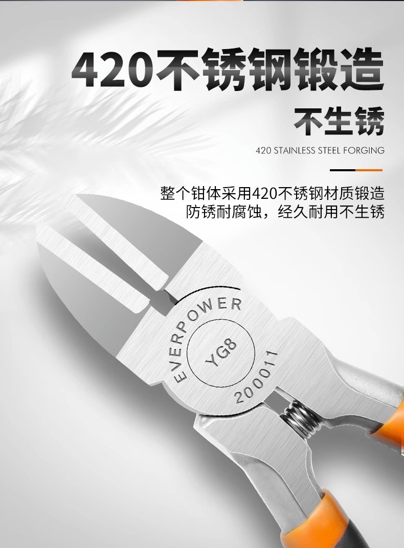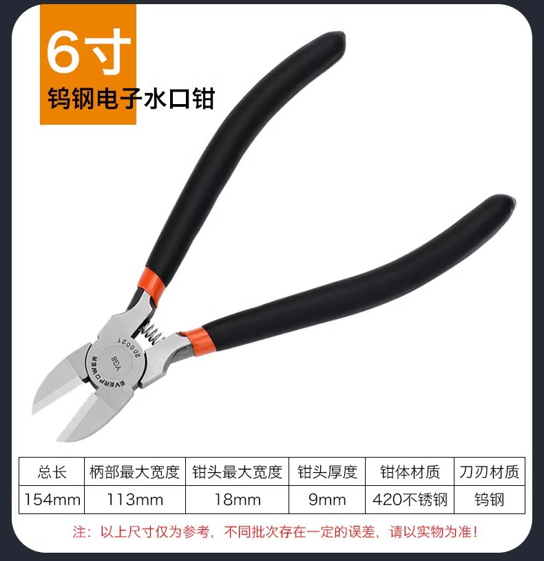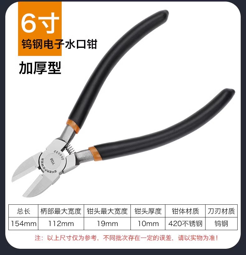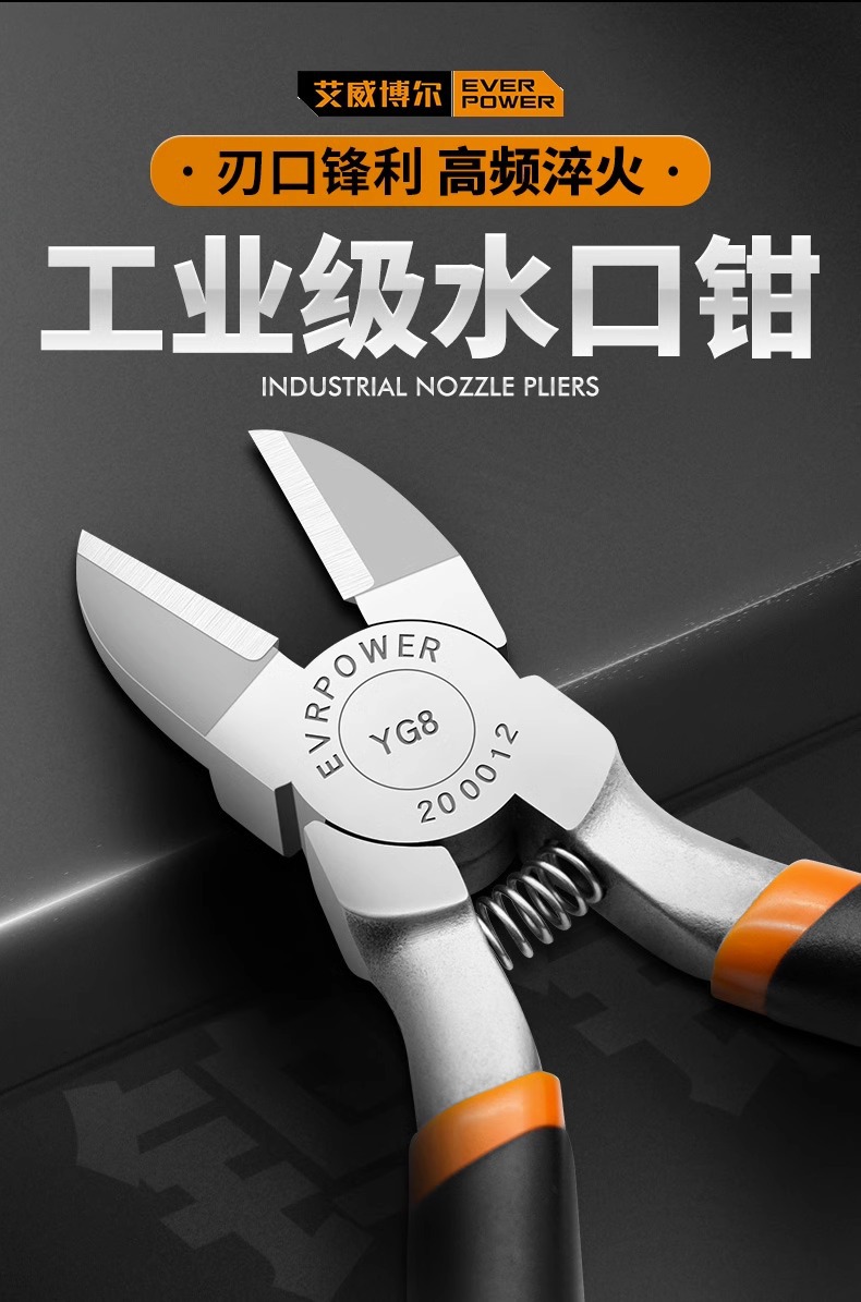 Aweibauer 텅스텐 스틸 특수 등급 스테인레스 스틸 전자 워터 너클 플라이어 커팅 라인 합금 스틸 산업용 등급 수동 비스듬한 플라이어
