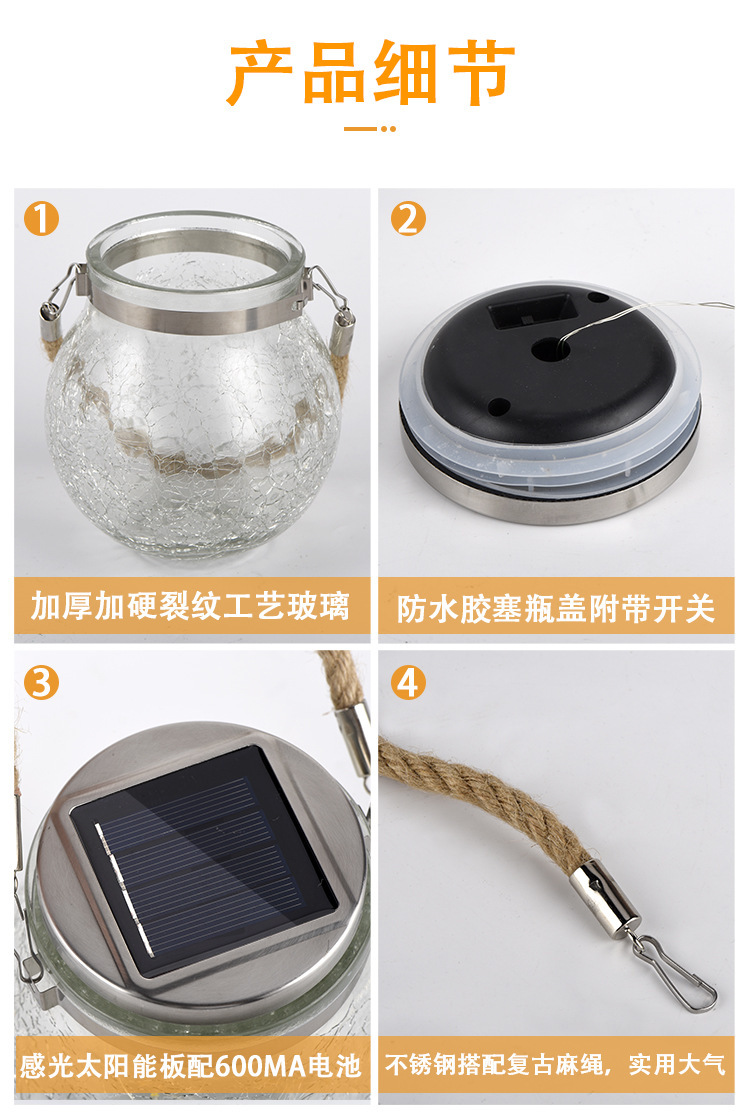 태양 균열 빛 야외 방수 안뜰 샹들리에 정원 잔디 발코니 장식 유리 항아리 빛 교수형 트리 라이트