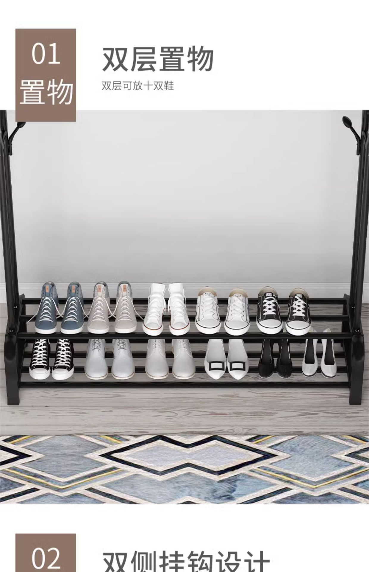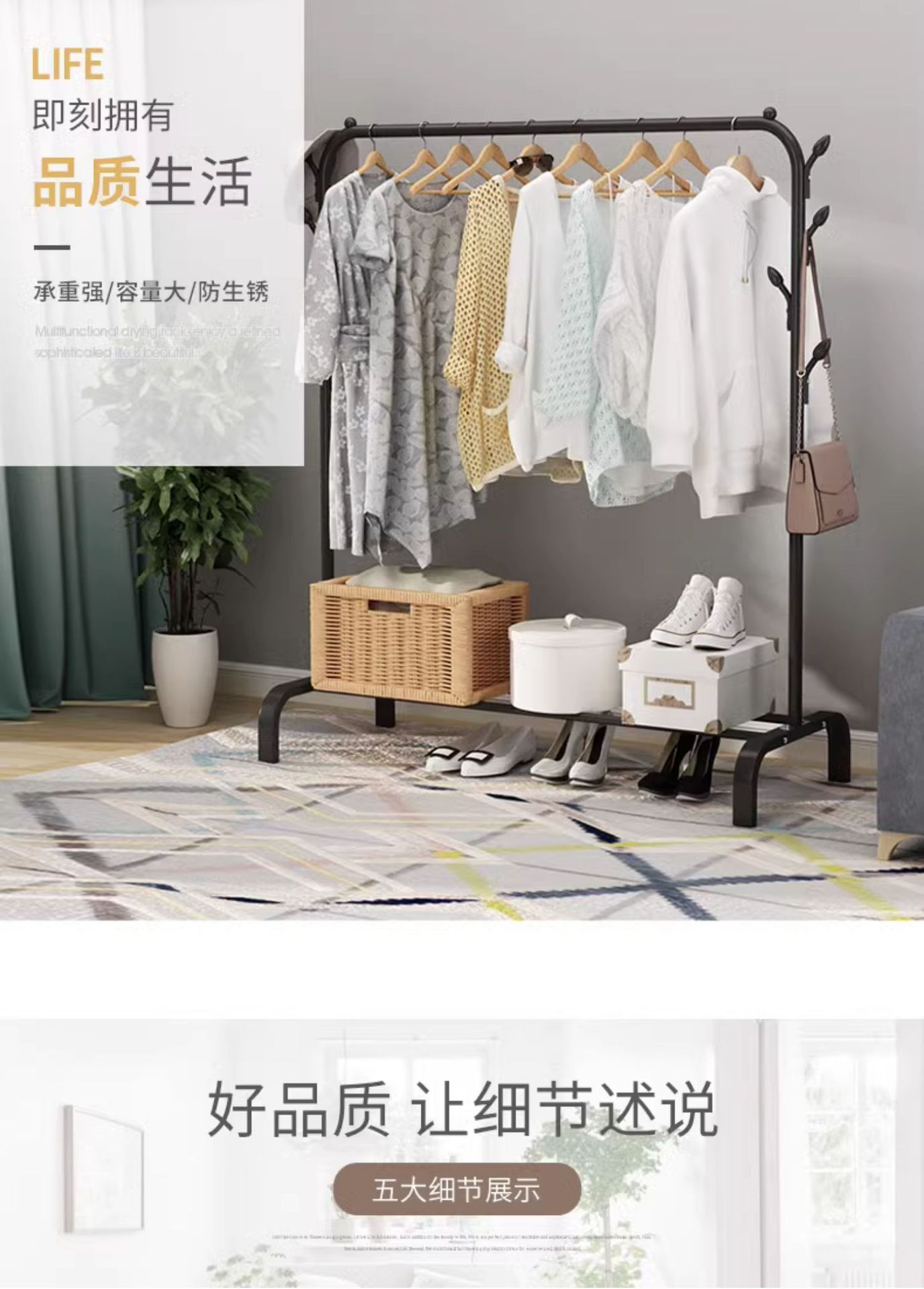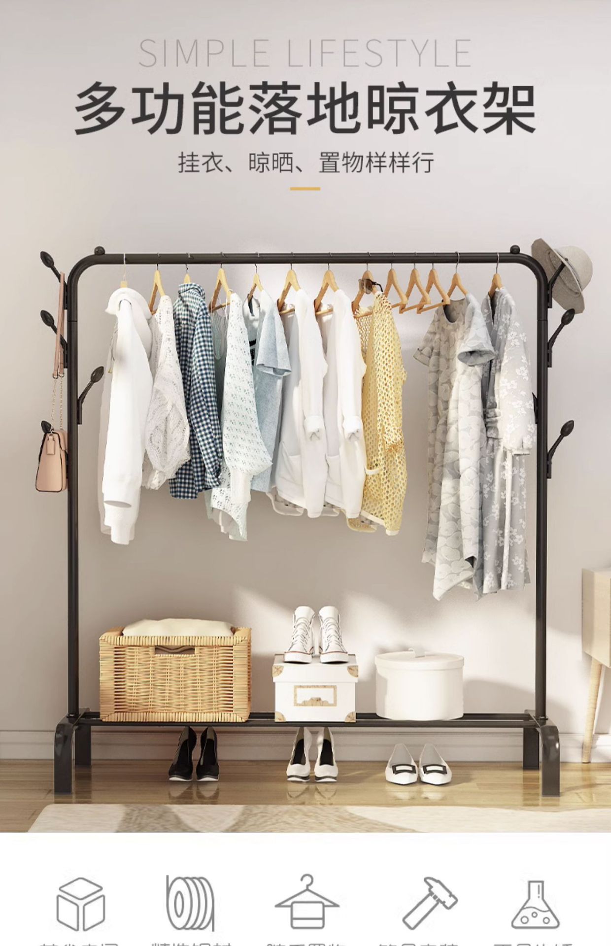 옷걸이 바닥 수직 침실 코트 옷걸이 가정용 거실 사이버 인기있는 빛 럭셔리 건조 랙 더블로드 건조 랙스토어 가기