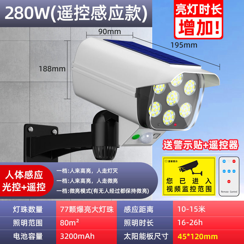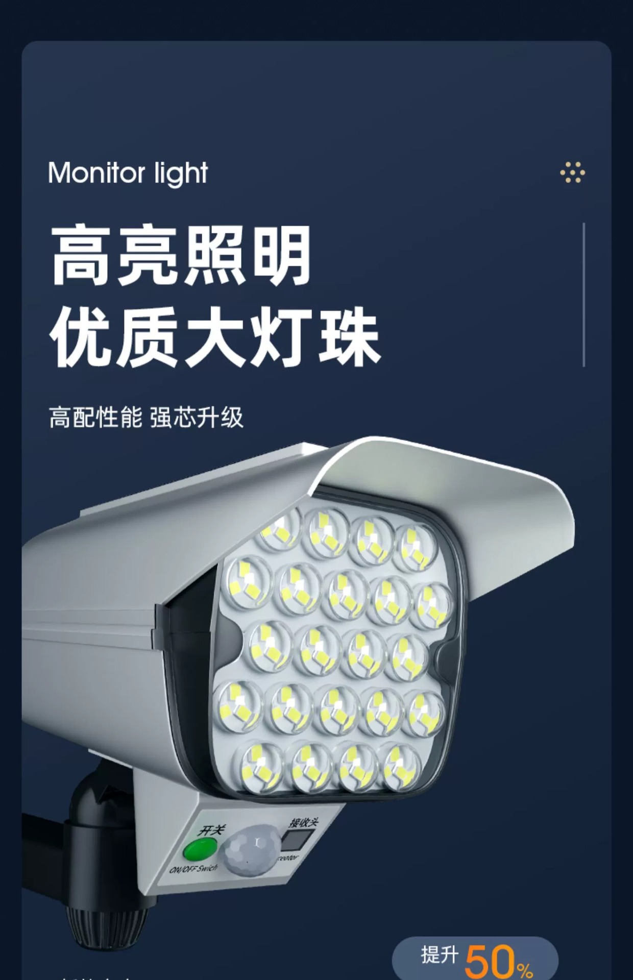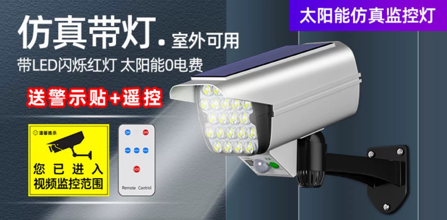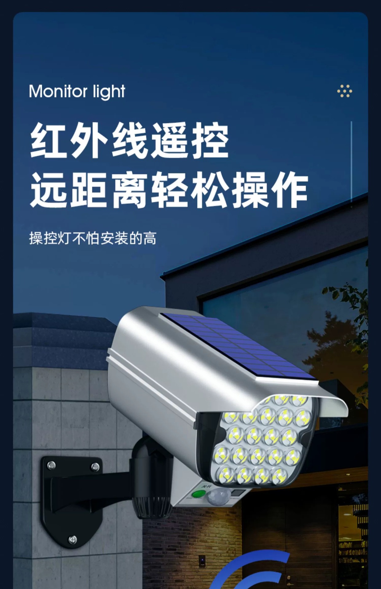 태양광 모조 감시등 LED 인체 감지 벽등 리모컨 무선 설치 불필요 가짜 카메라 도난 방지 가로등