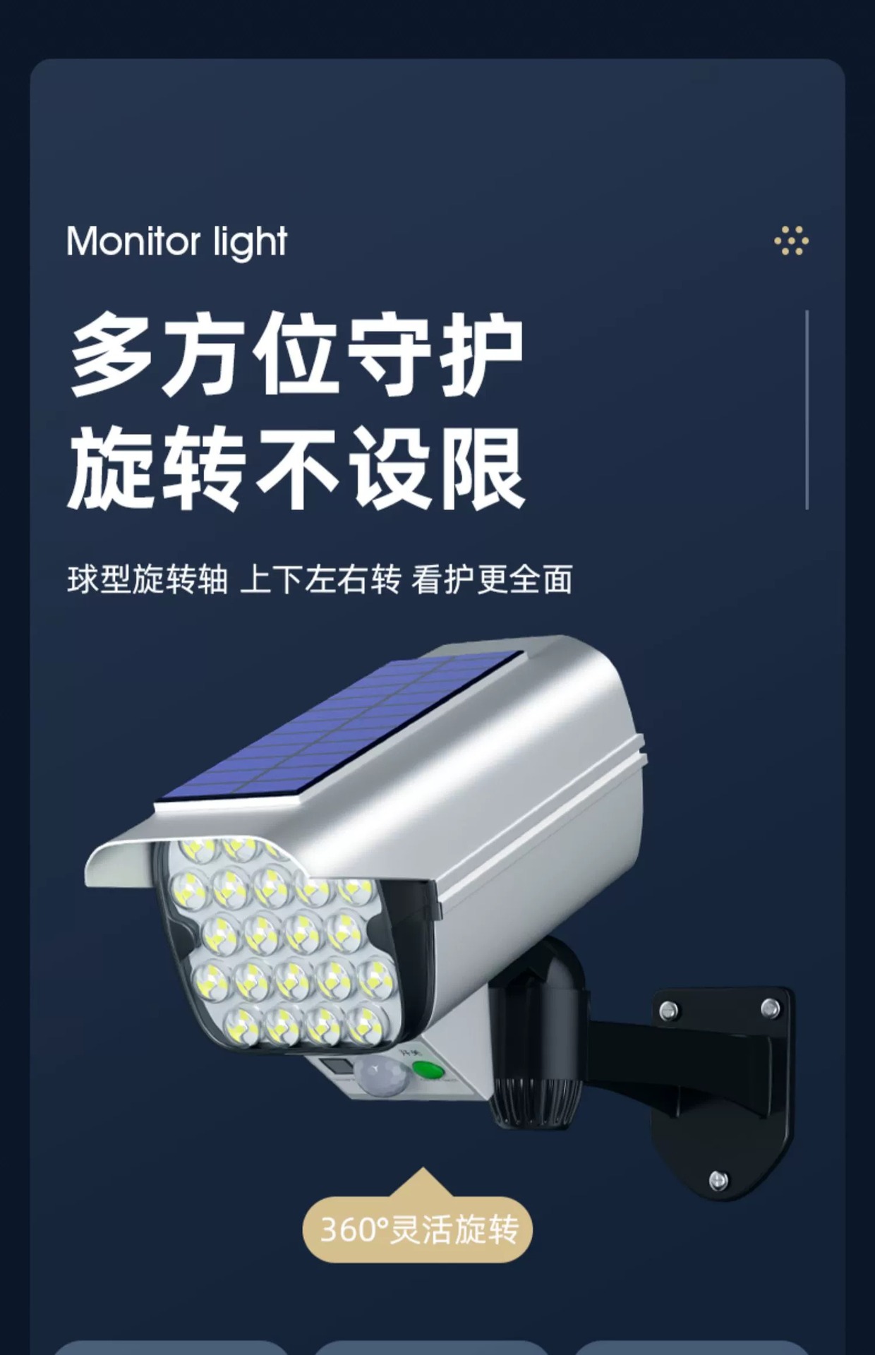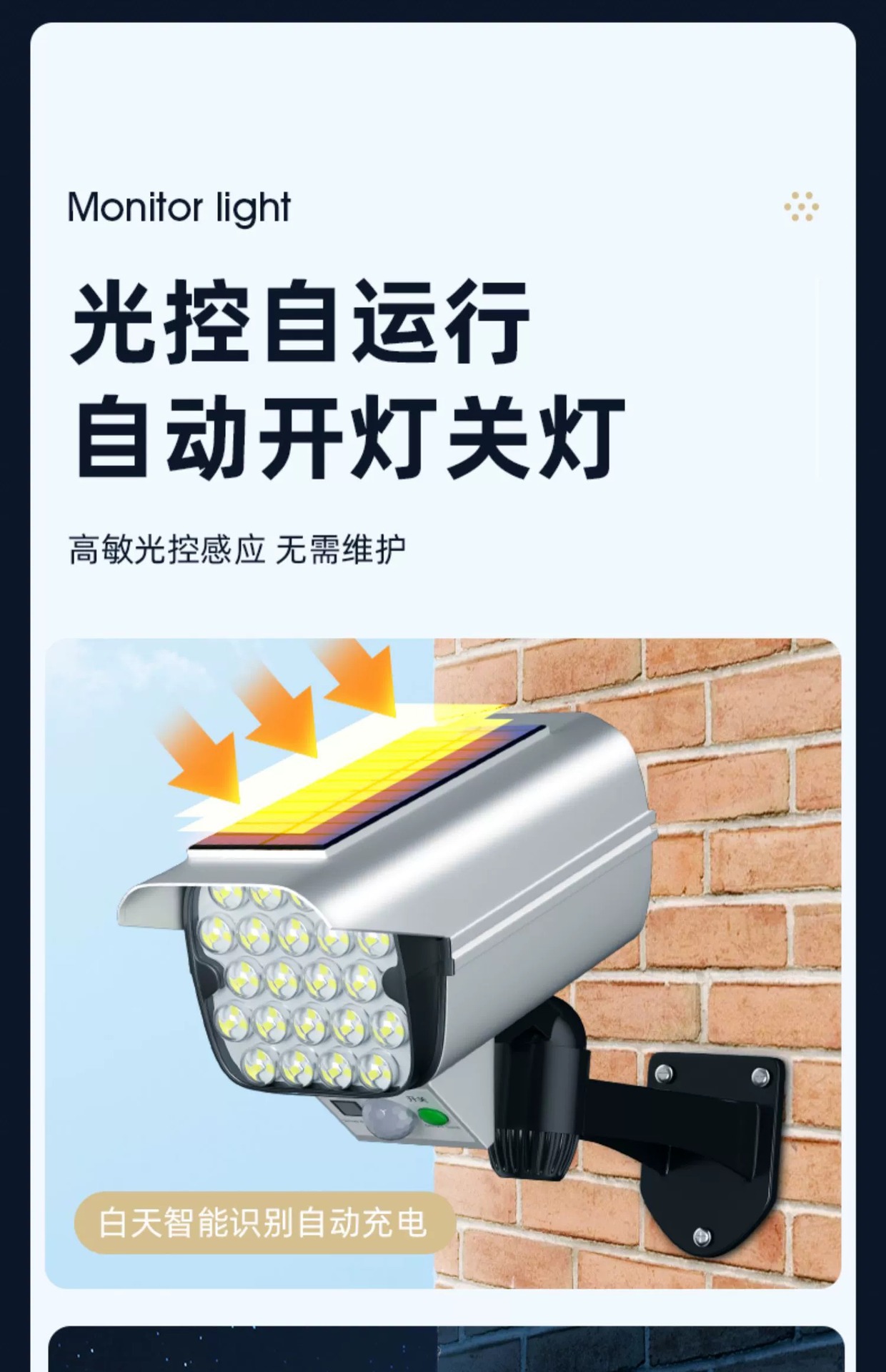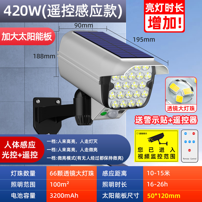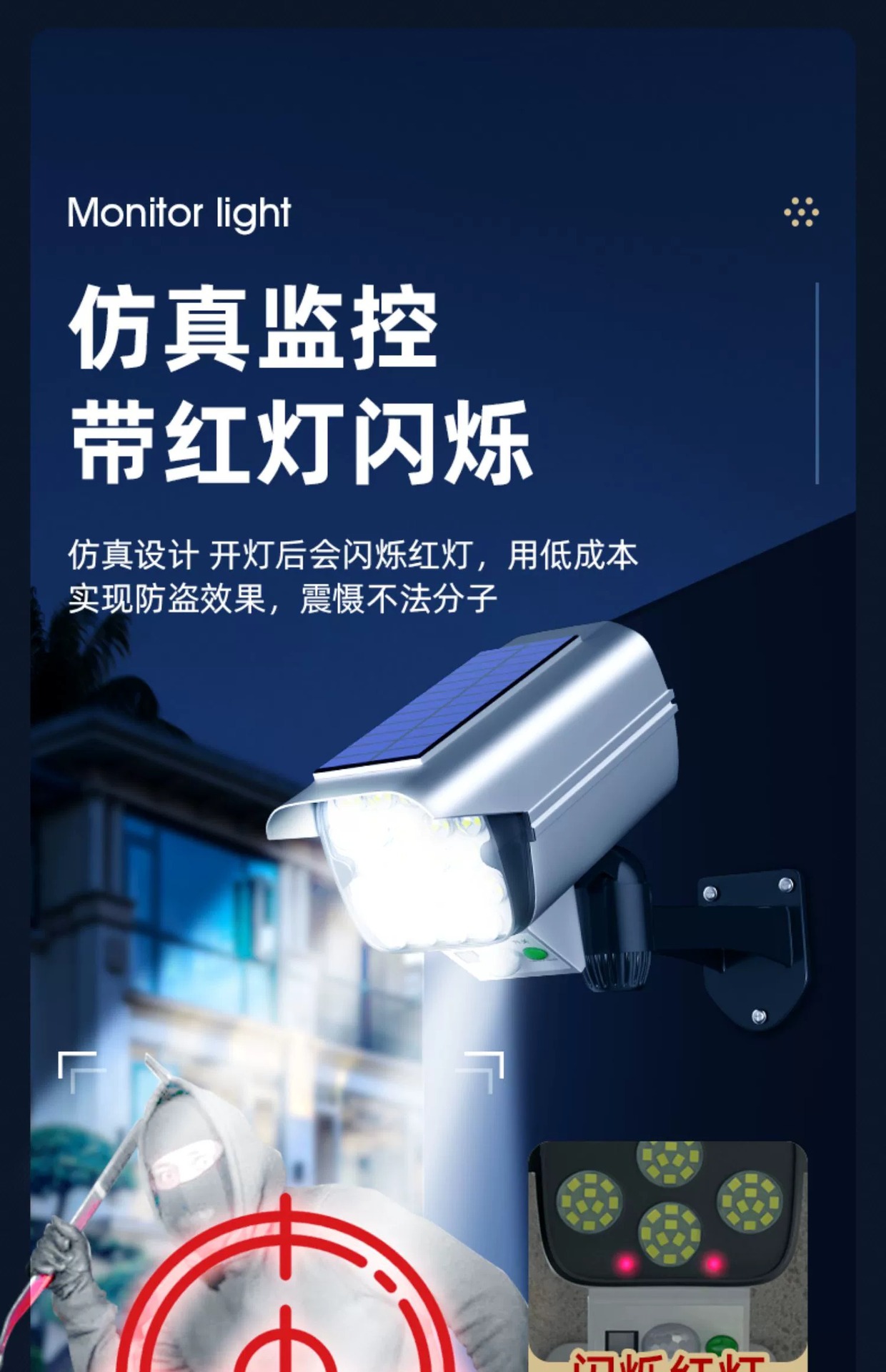 태양광 모조 감시등 LED 인체 감지 벽등 리모컨 무선 설치 불필요 가짜 카메라 도난 방지 가로등