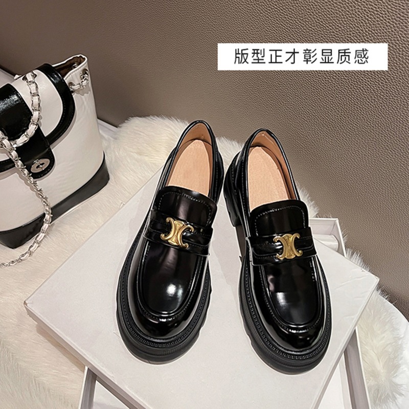 두꺼운 밑창 로퍼 여성용 2025 봄 가을 신상품 트라이엄프 아치 영국 스타일 가죽 신발 두꺼운 굽 슬립온 단화 스니커즈