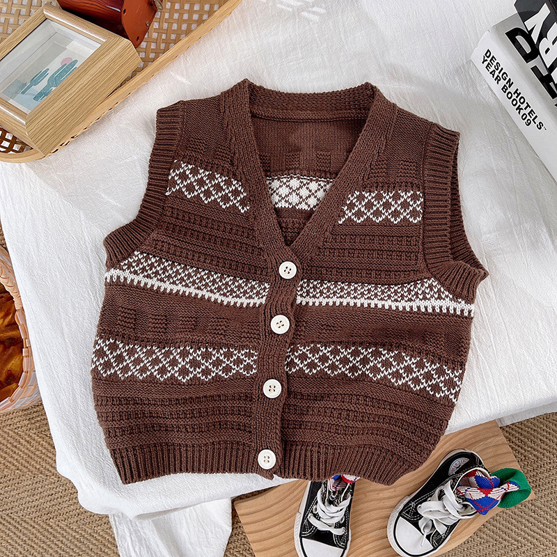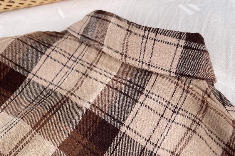어린이 가을 세트 빈티지 가디건 스웨터 Maillard 스타일 격자 무늬 셔츠 단색 캐주얼 바지 3 종 세트스토어 가기