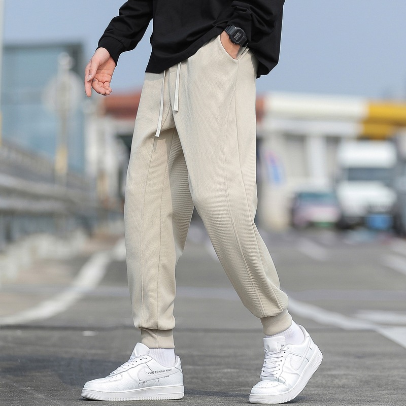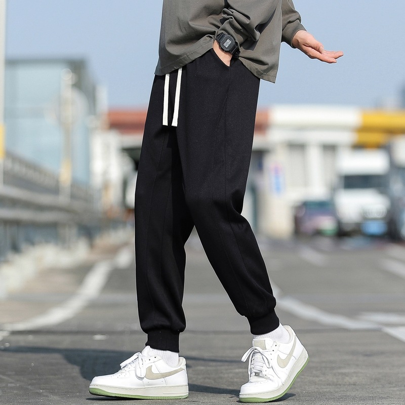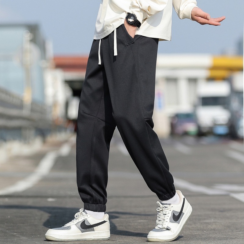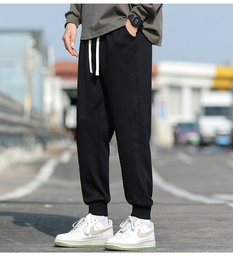 남자 바지 봄과 가을 짧은 8 점 바지 홍콩 패션 느슨한 다리 소년의 2024 새로운 스포츠 캐주얼 바지