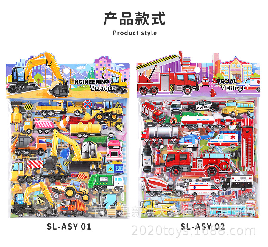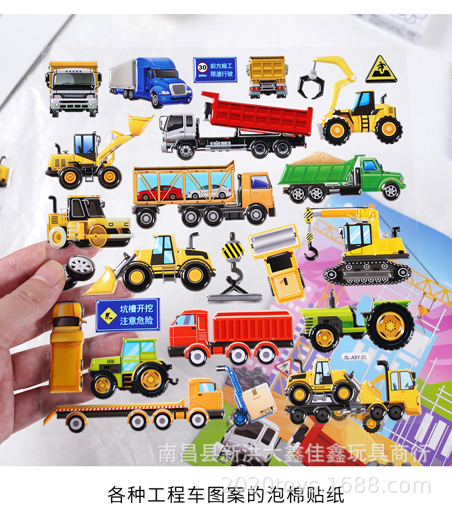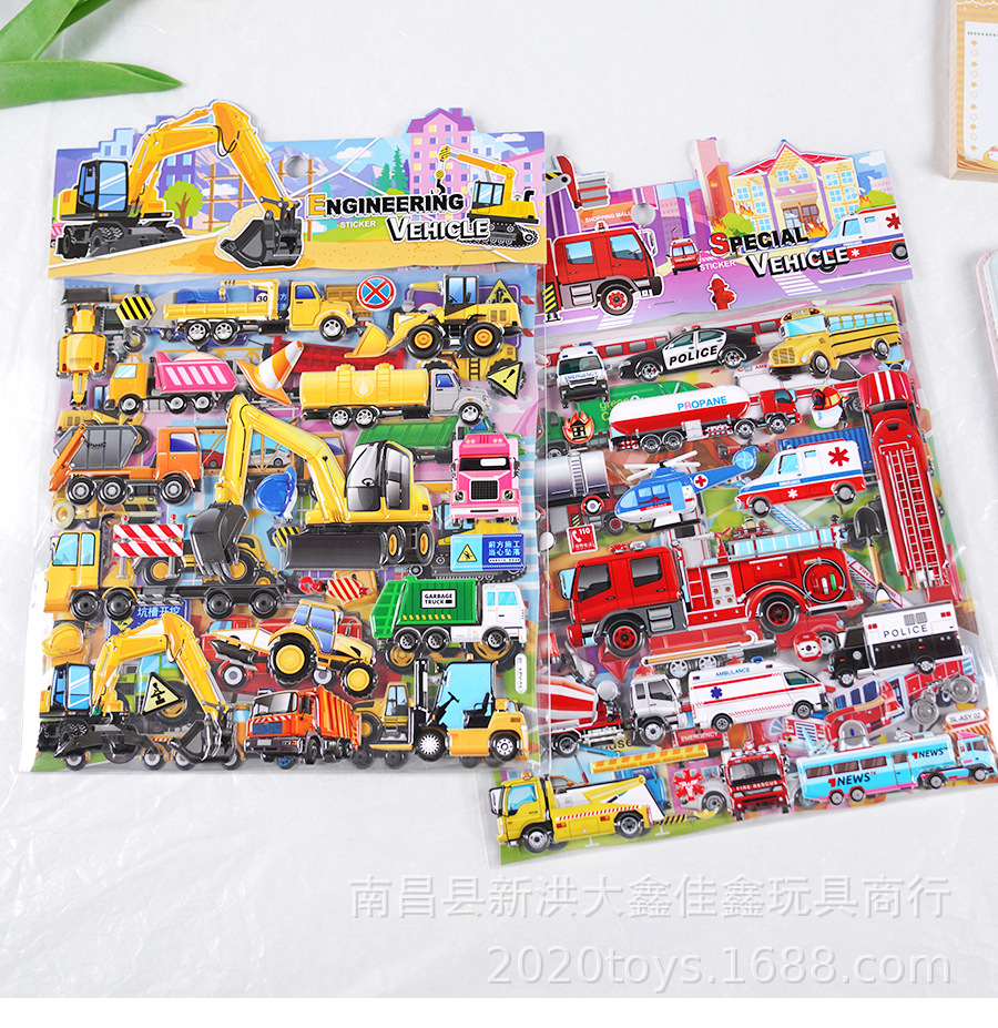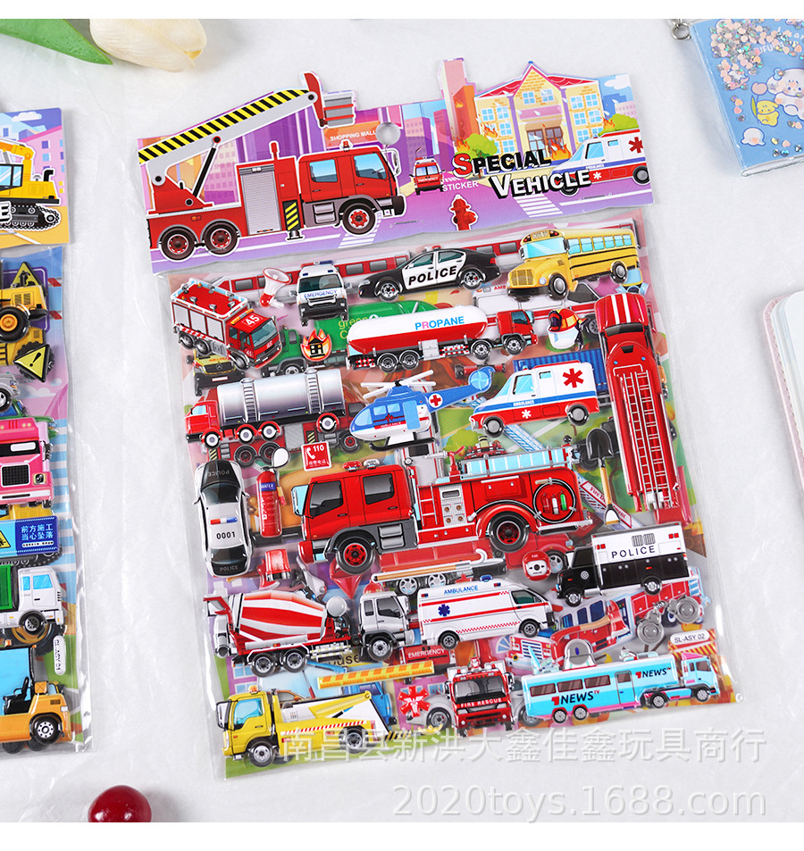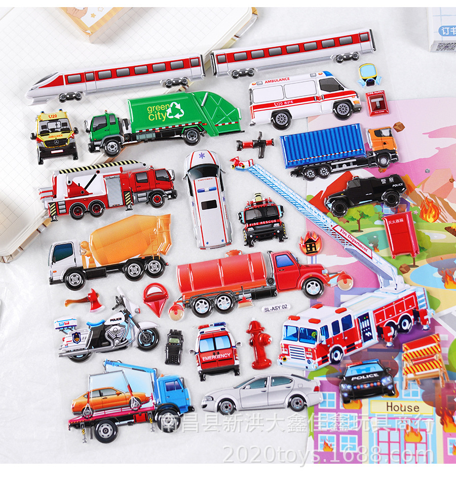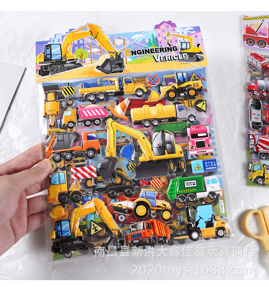 굴착기 소방차 엔지니어링 차량 자동차 스테레오 스티커 어린이 아기 소년 더블 레이어 스티커 스티커스토어 가기