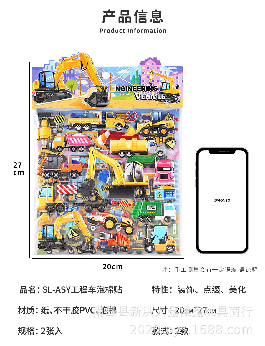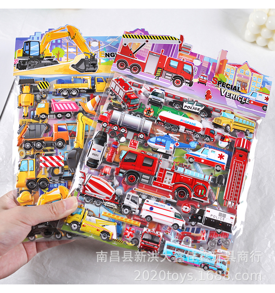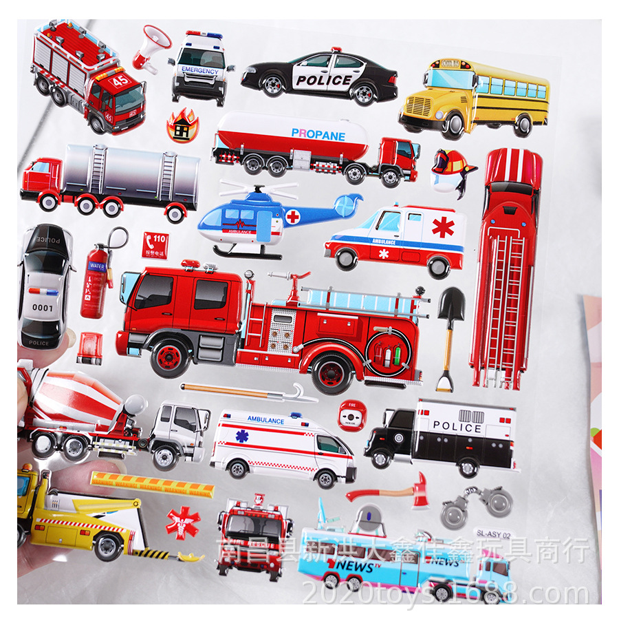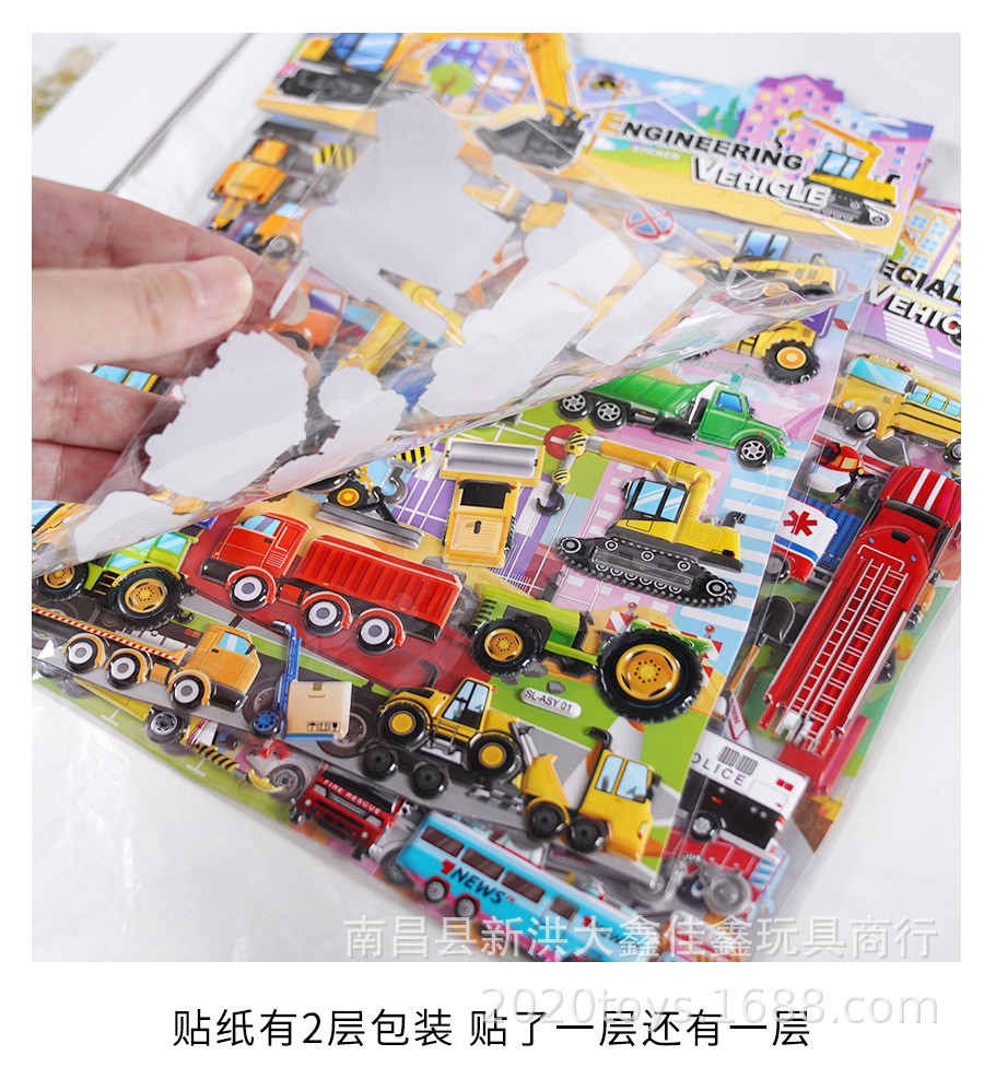 굴착기 소방차 엔지니어링 차량 자동차 스테레오 스티커 어린이 아기 소년 더블 레이어 스티커 스티커