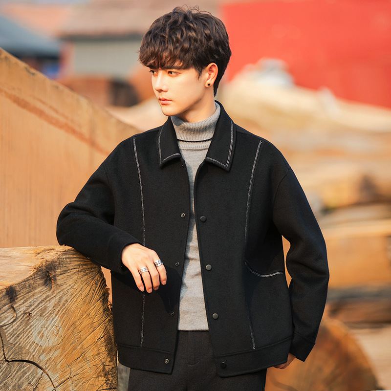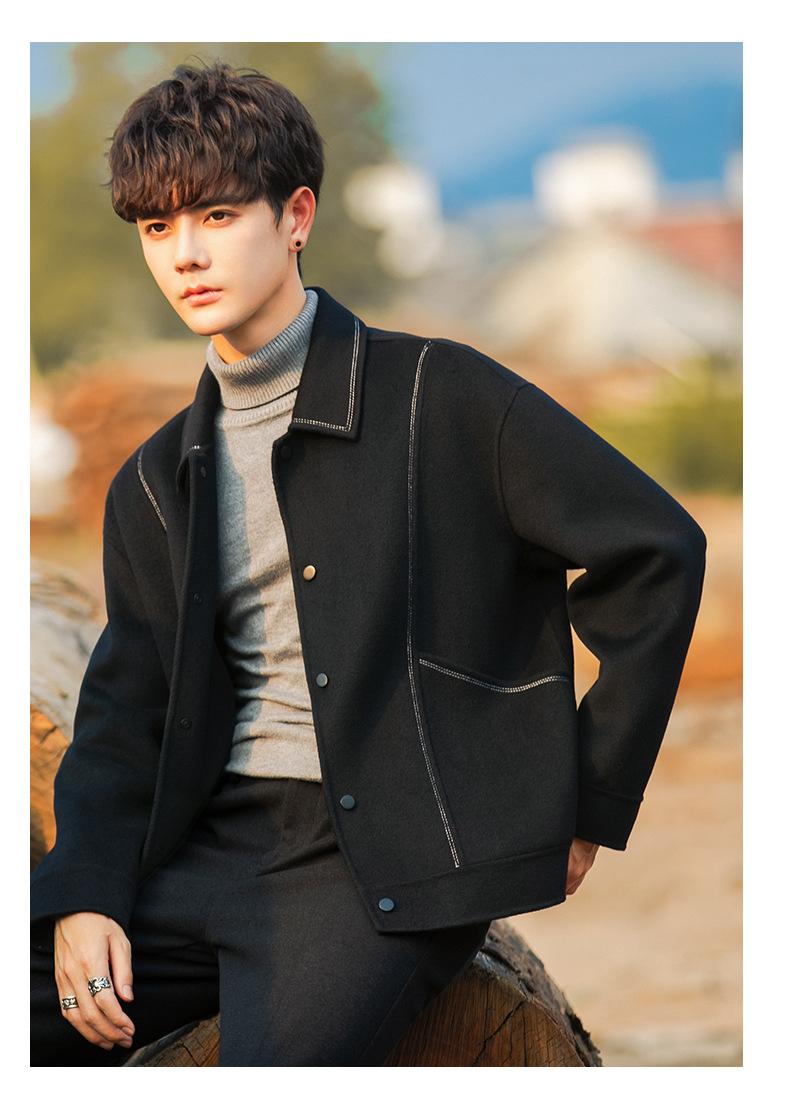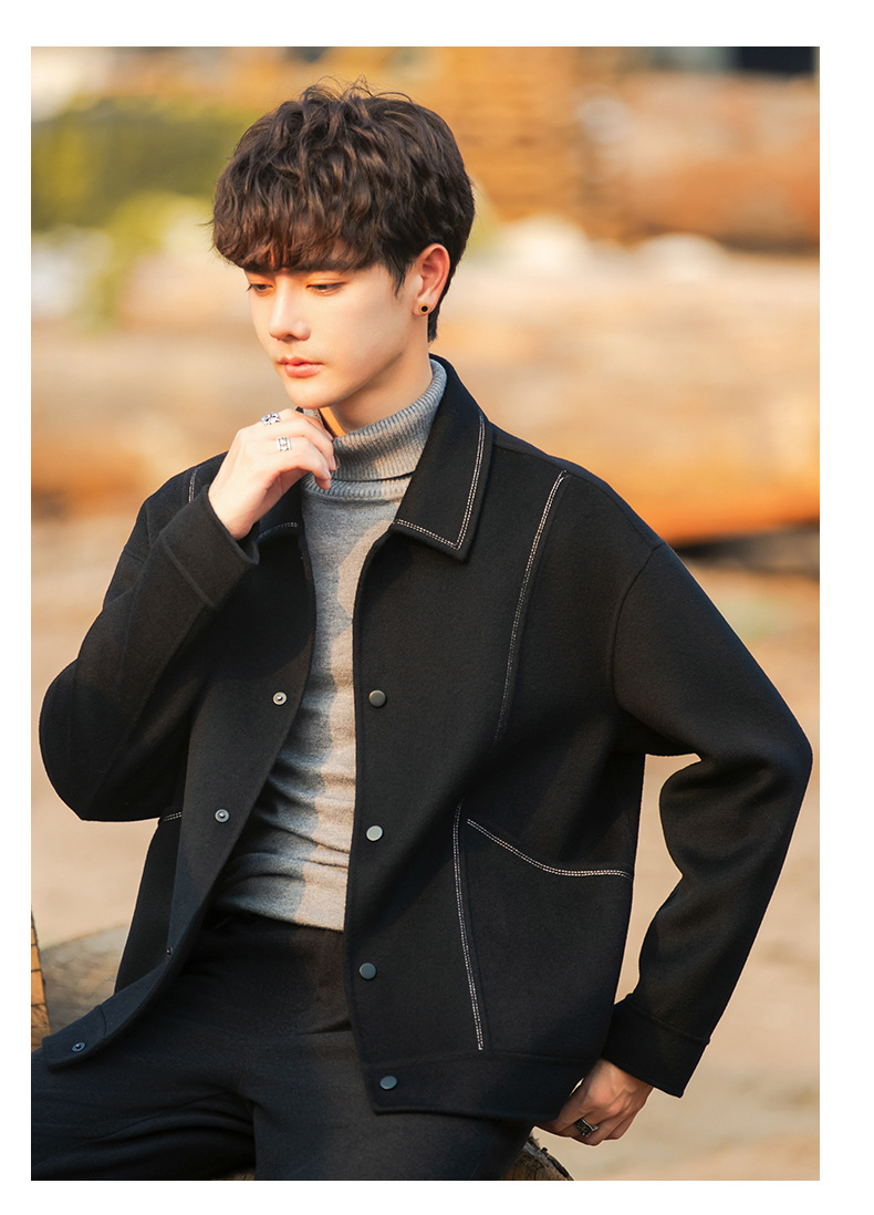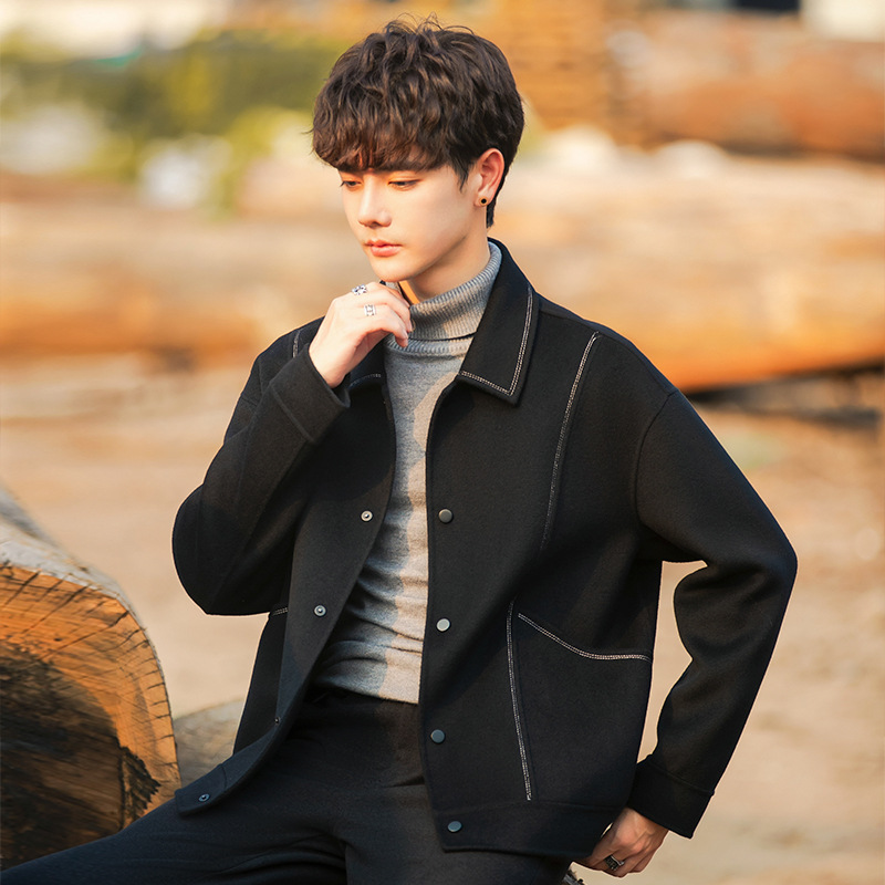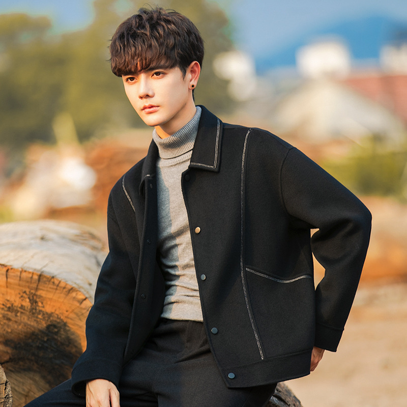 96015 양면 울 남성 코트 가을과 겨울 새 모직 코트 짧은 두꺼운 캐시미어 재킷 하이 엔드 센스스토어 가기