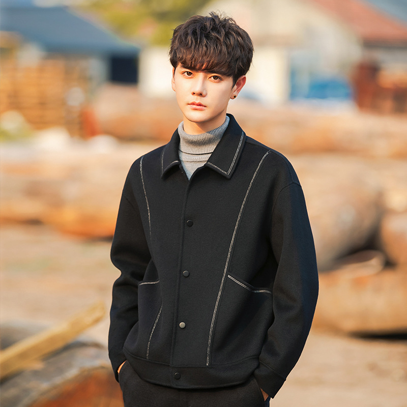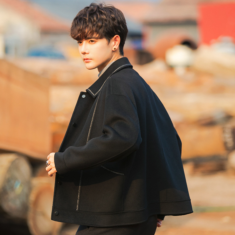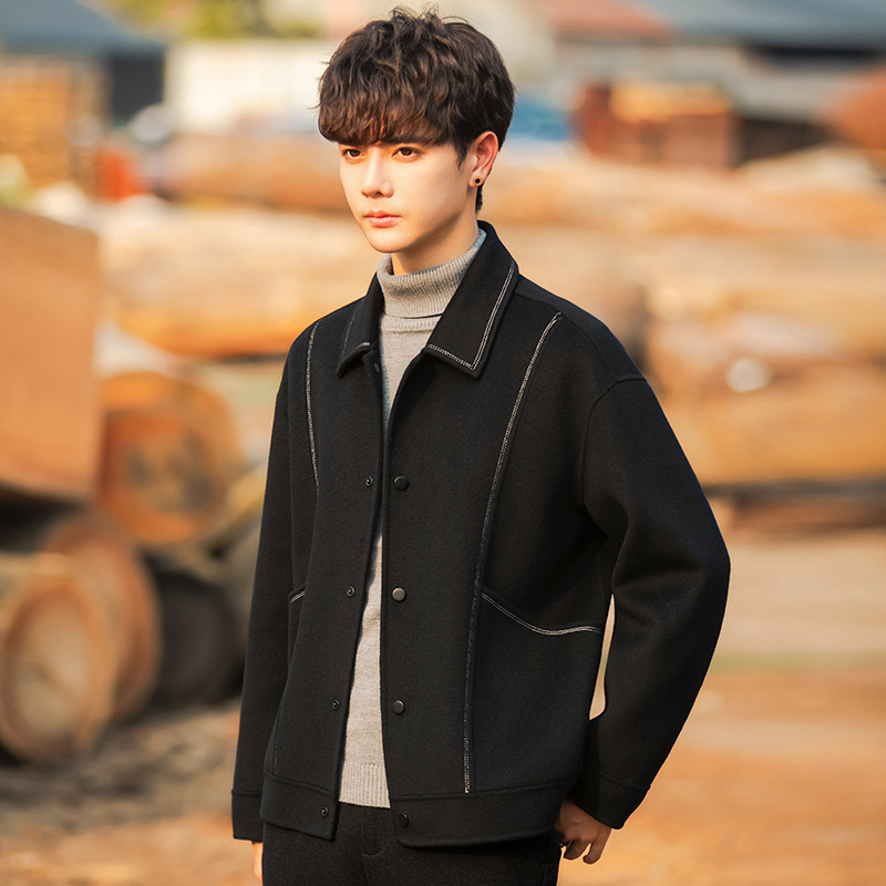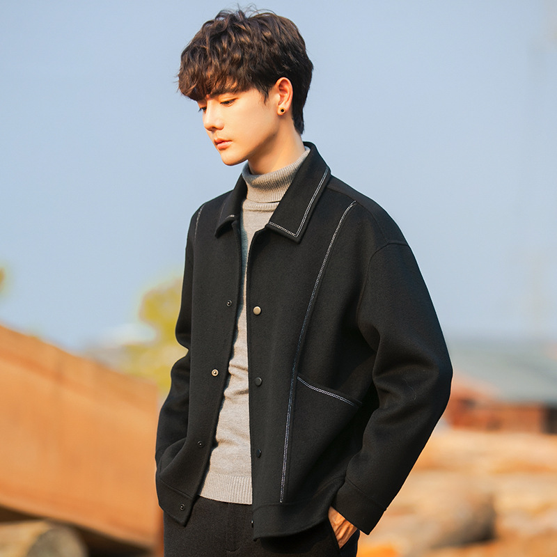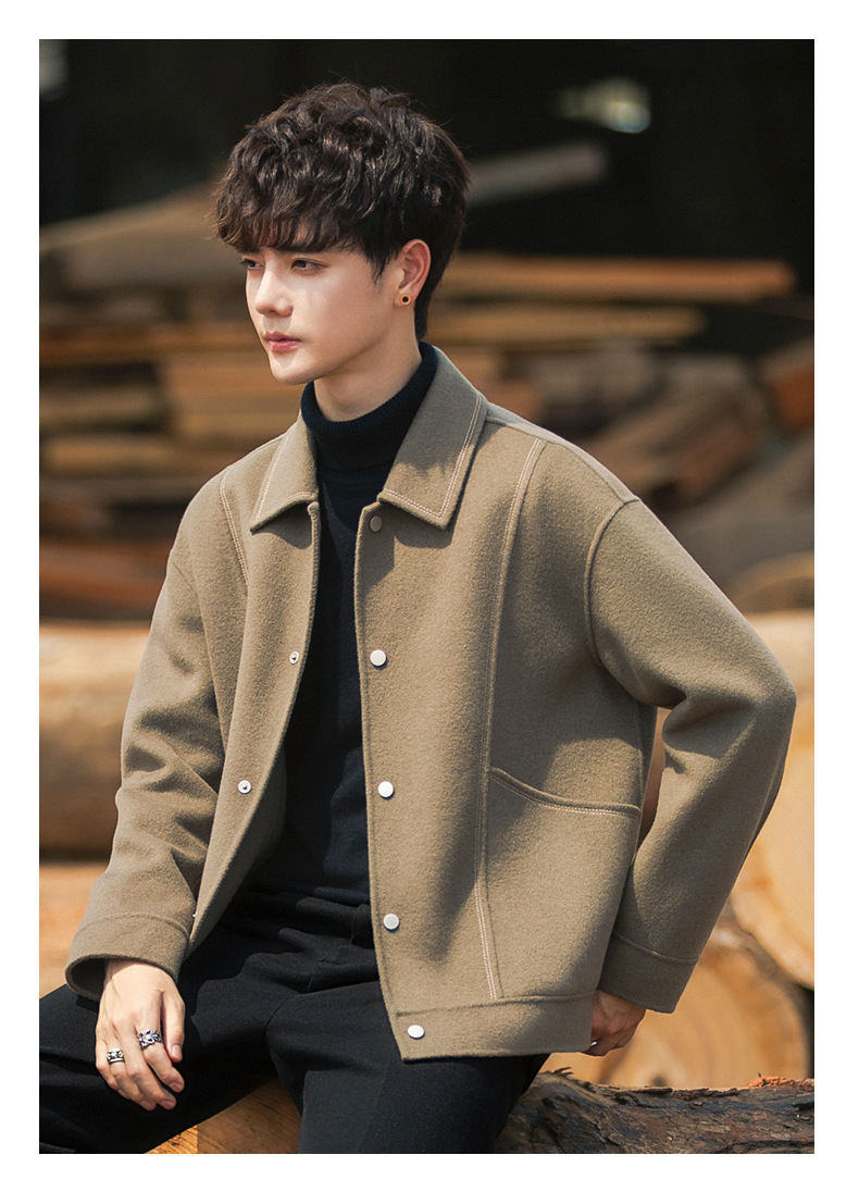 96015 양면 울 남성 코트 가을과 겨울 새 모직 코트 짧은 두꺼운 캐시미어 재킷 하이 엔드 센스스토어 가기