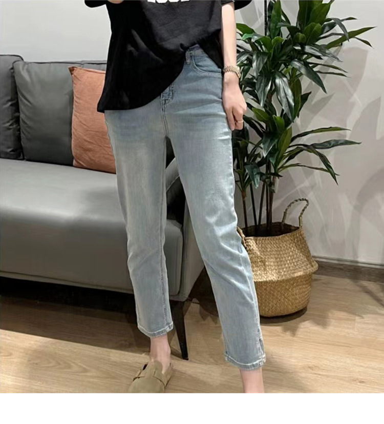 플러스 사이즈 통통녀 청바지 여자의 봄과 가을 2023 얇은 바지 작은 남자 Harlan 슬림 연기 바지