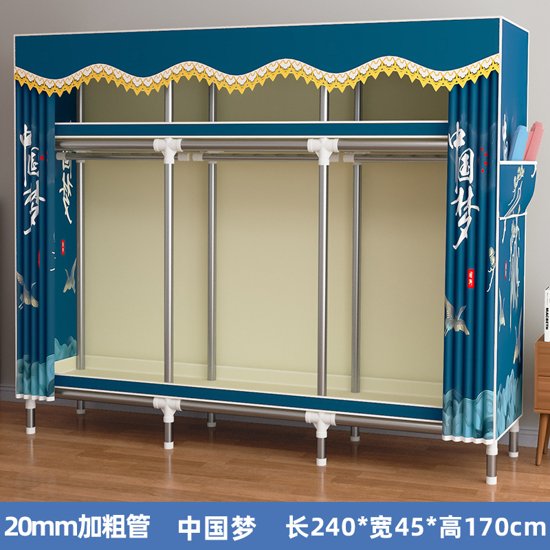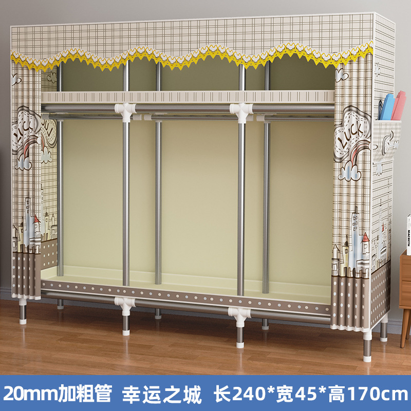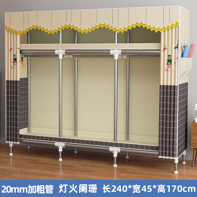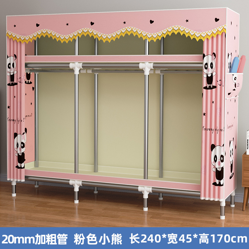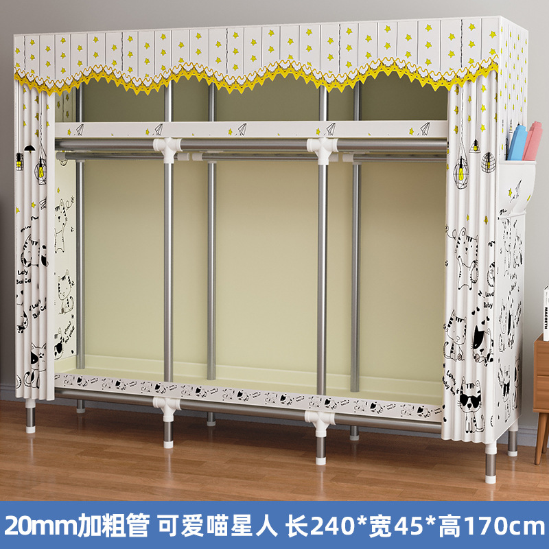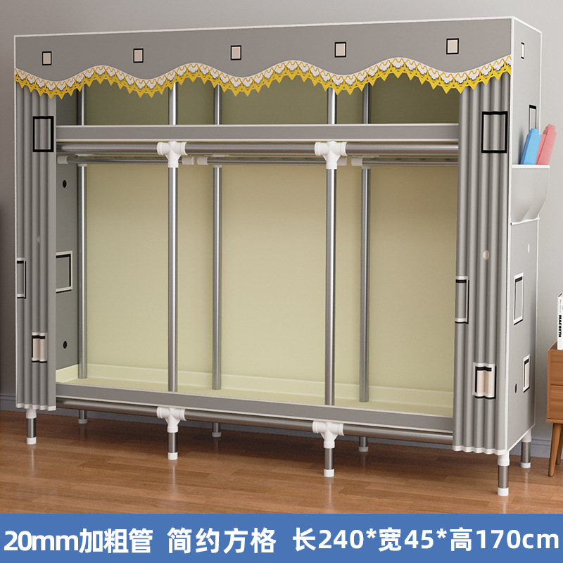 간단한 옷장 렌탈룸 기숙사 간단한 가정용 천 옷장 스틸 프레임 굵은 스틸 파이프 조립 옷장 교수형 옷장 C3