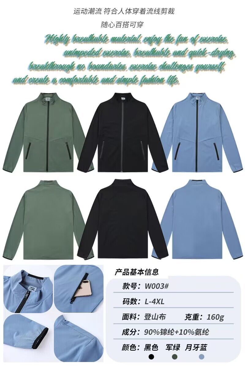 루루 캐주얼 재킷 남성용 봄과 가을 얇은 속건 칼라 야외 스포츠 캐주얼 모든 매치 재킷 통기성 트렌디