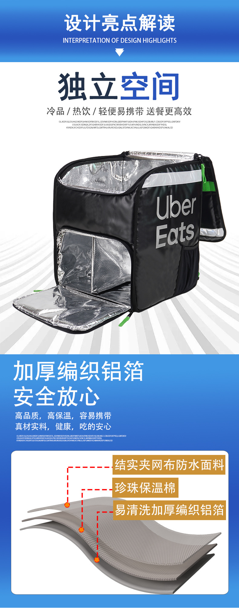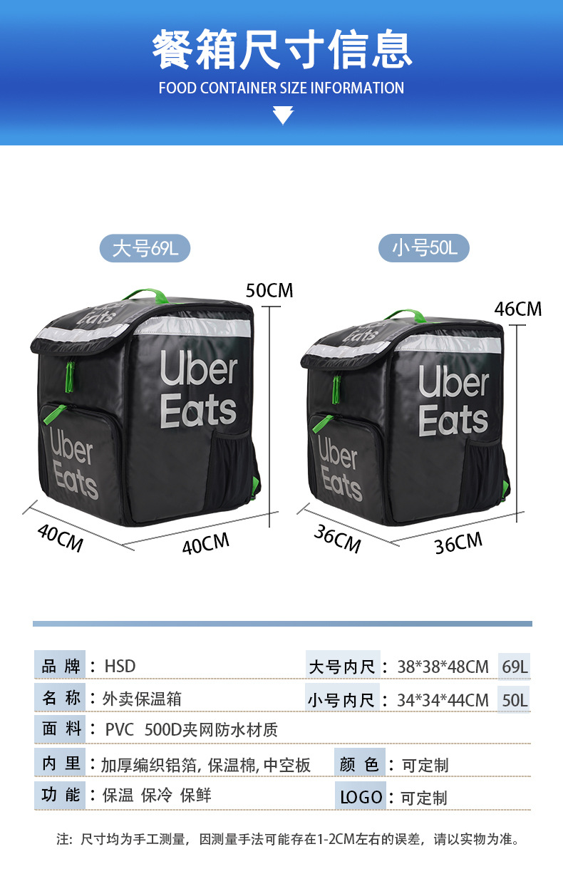 폭발 블랙 방수 Uber 테이크 아웃 박스 단열 배송 박스 라이더 배포 쿨러 숄더 절연 백스토어 가기