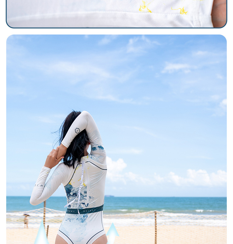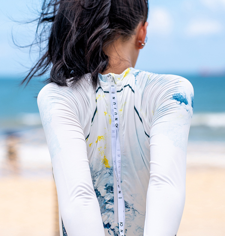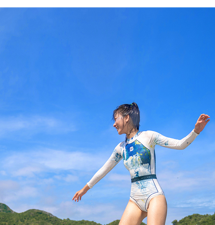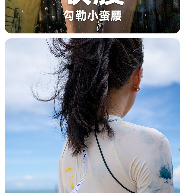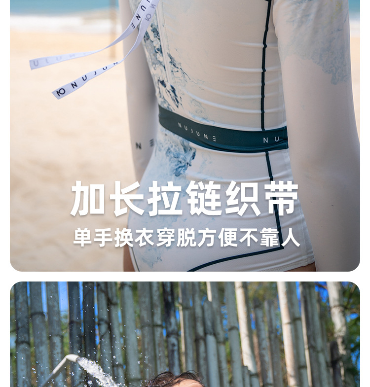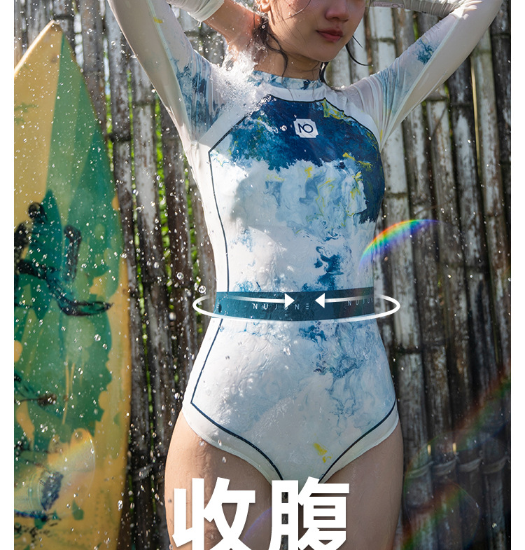 NUJUNE 원피스 수영복 여성용 슬림핏 긴팔 자외선 차단 의류 삼각형 섹시 수영복 고급 속건 서프수트
