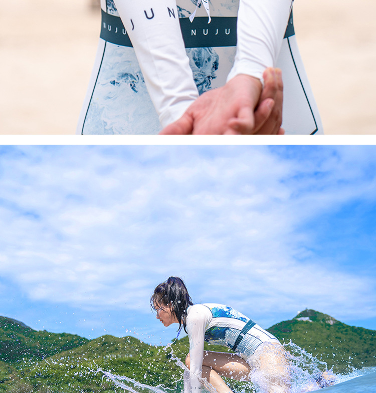 NUJUNE 원피스 수영복 여성용 슬림핏 긴팔 자외선 차단 의류 삼각형 섹시 수영복 고급 속건 서프수트스토어 가기