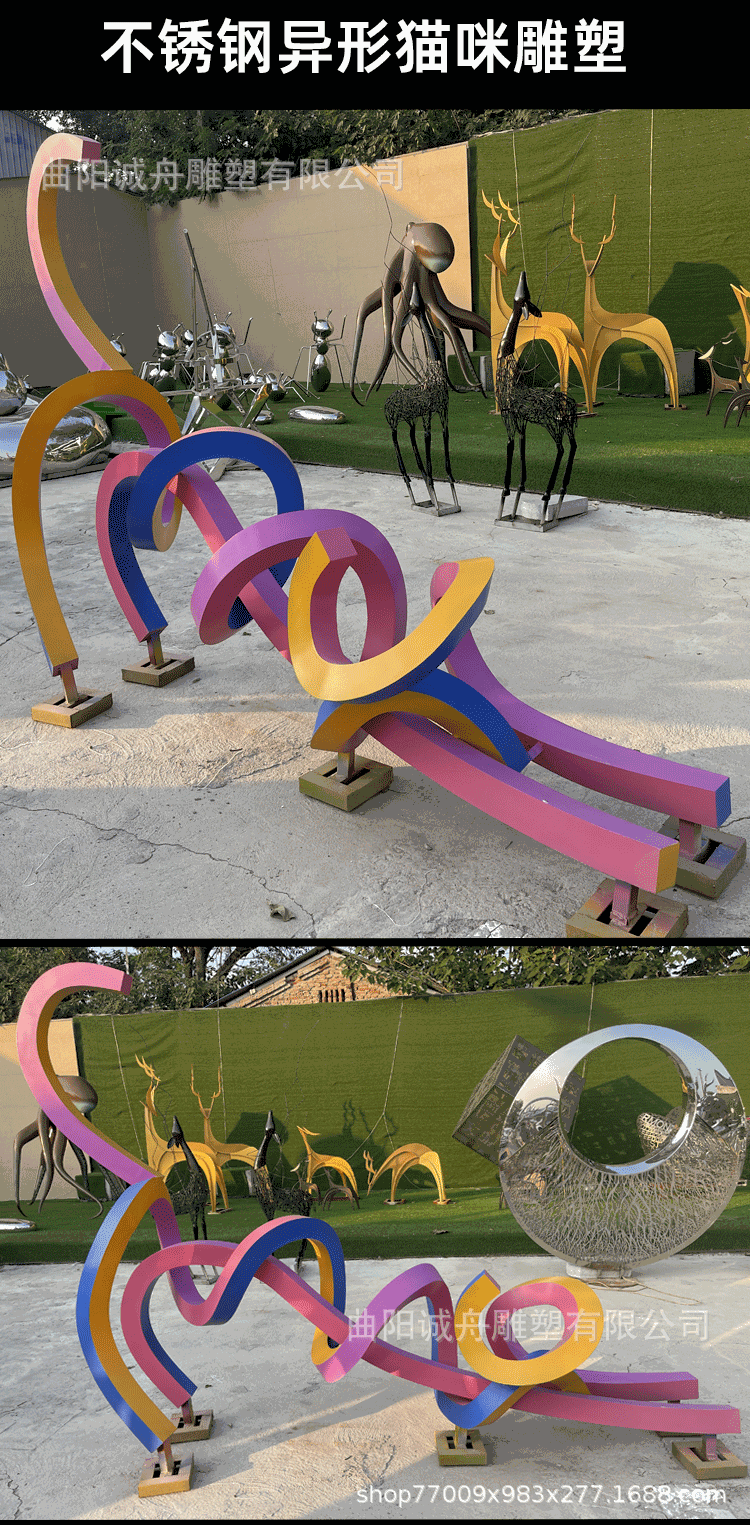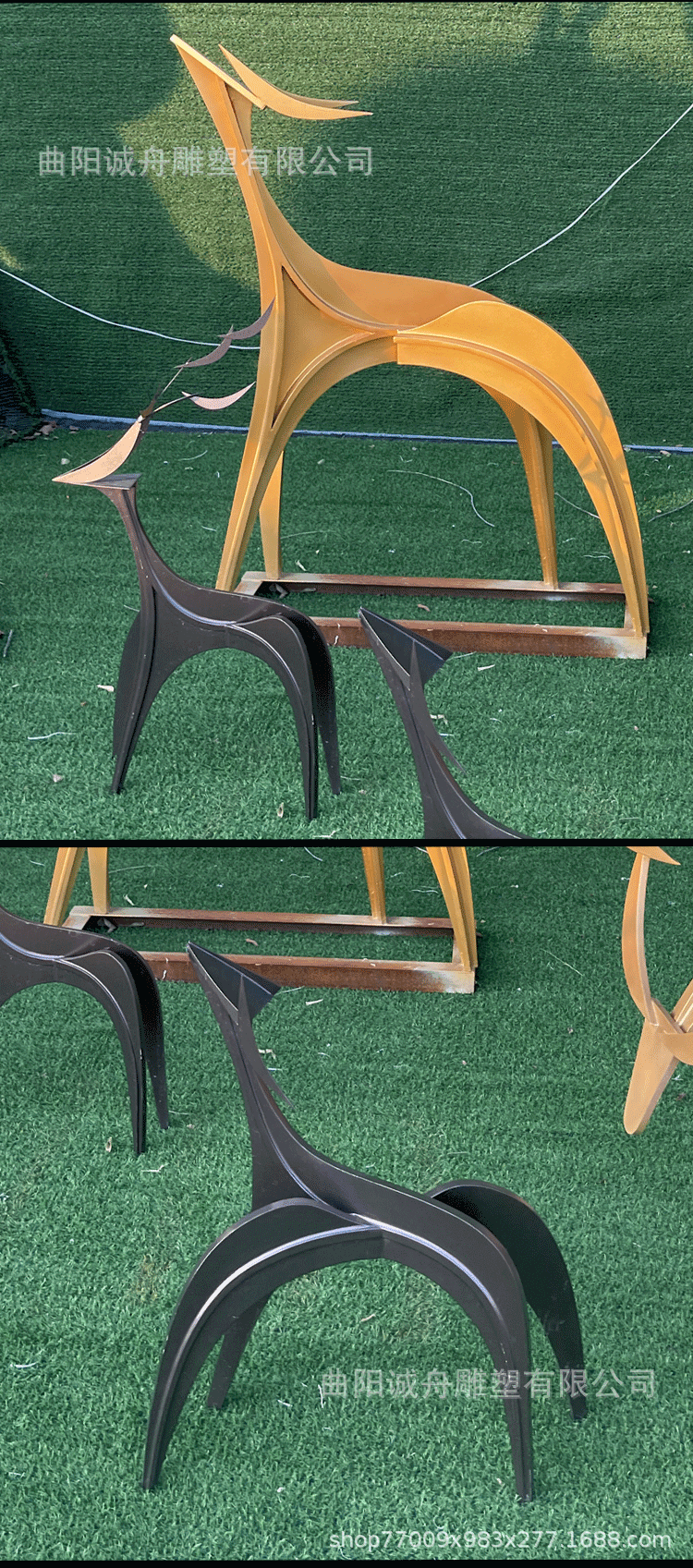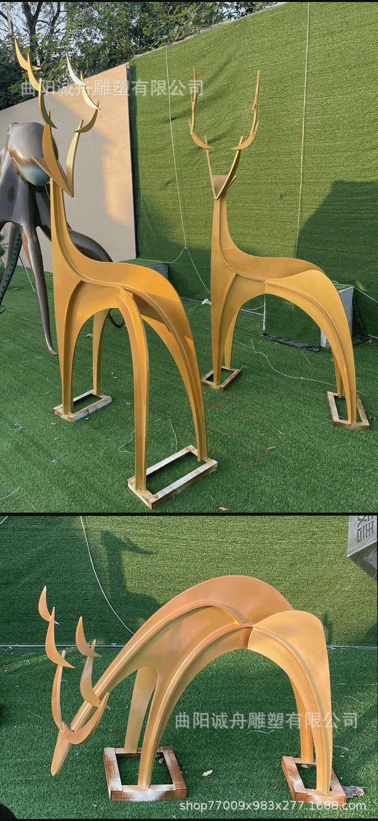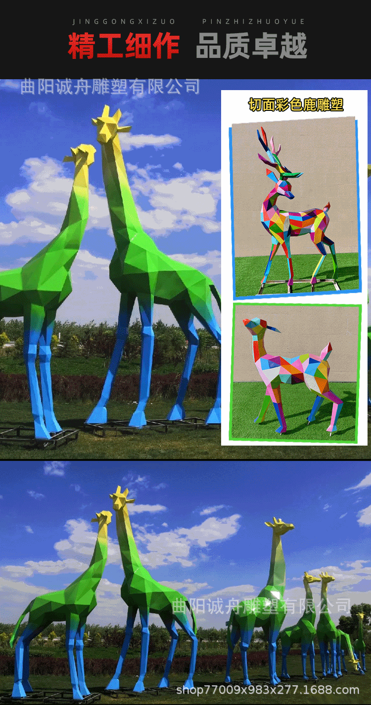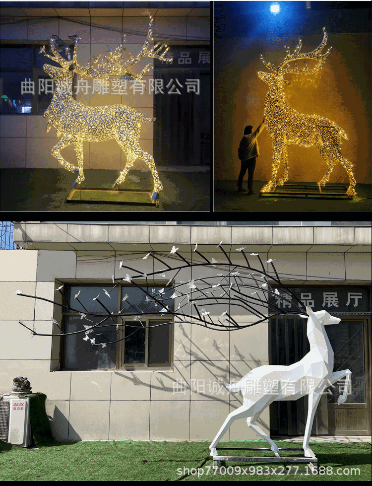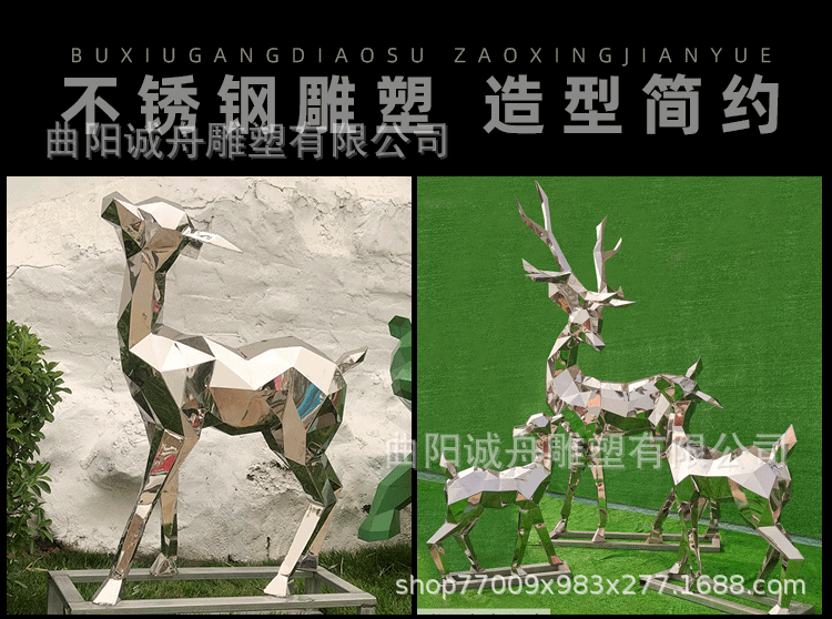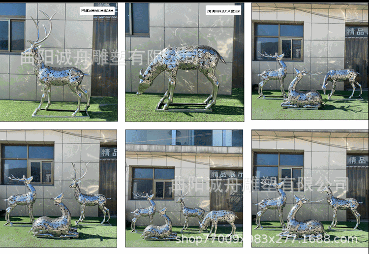 야외 대형 스테인레스 스틸 조각 컷 표면 기린 창조적 인 공원 바닥 장식 시뮬레이션 동물 커플 사슴스토어 가기