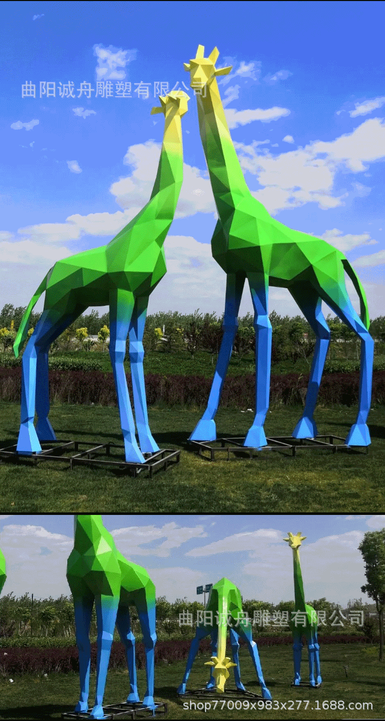 야외 대형 스테인레스 스틸 조각 컷 표면 기린 창조적 인 공원 바닥 장식 시뮬레이션 동물 커플 사슴