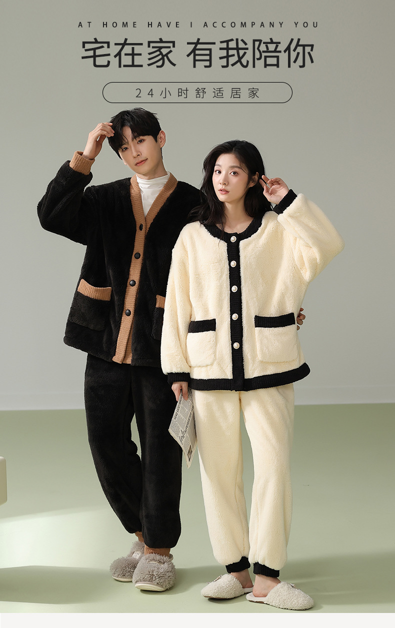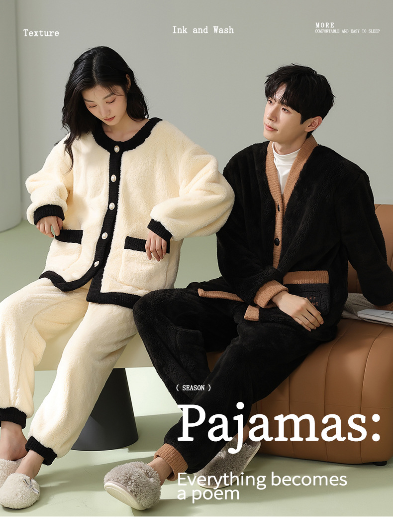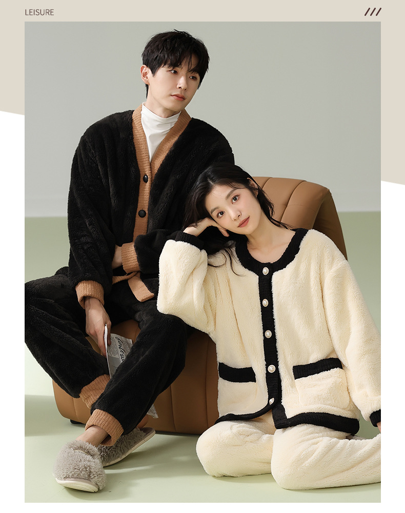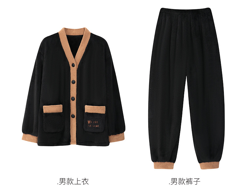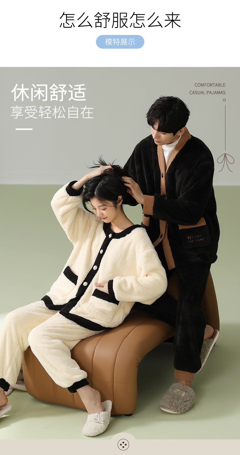 Caini 사랑 산호 양털 커플 잠옷 여자의 겨울 카디건 단추 플란넬 남자의 간단한 단색 가정 옷 세트스토어 가기