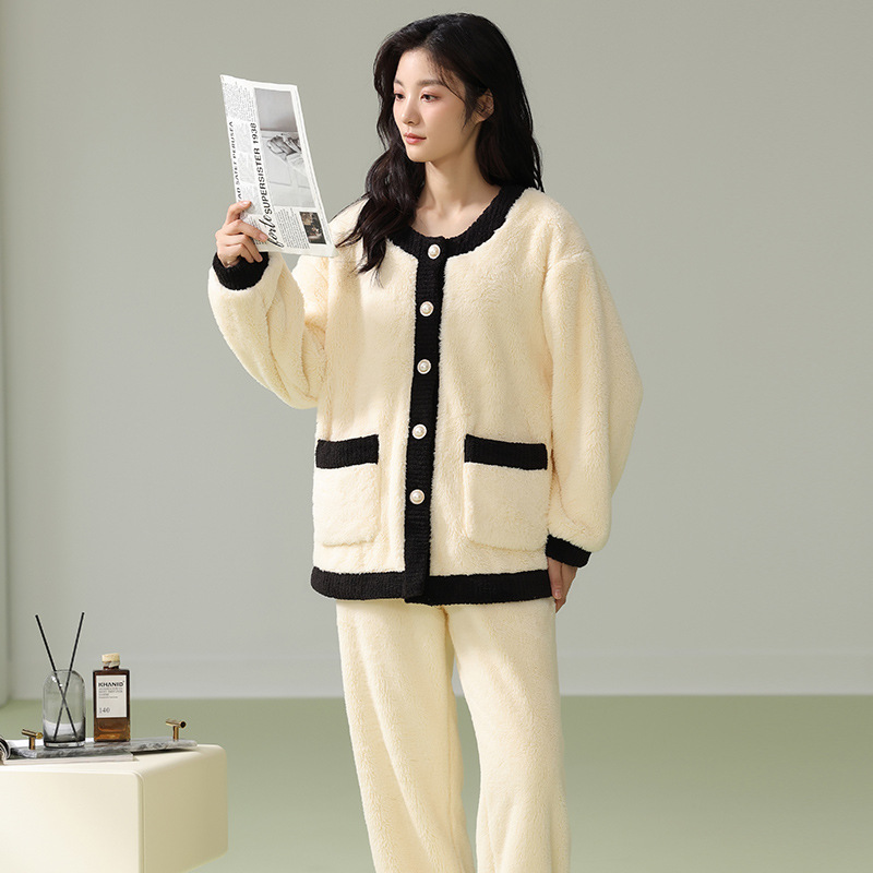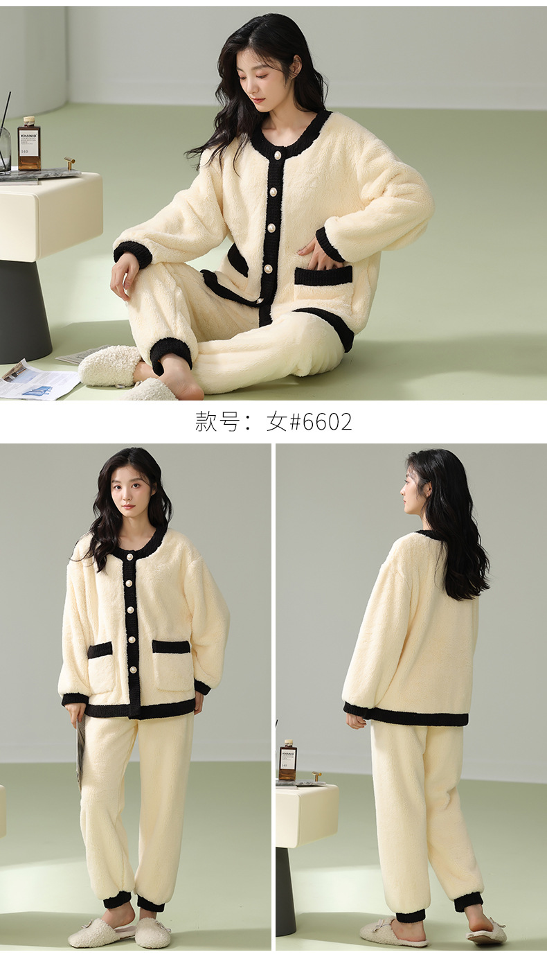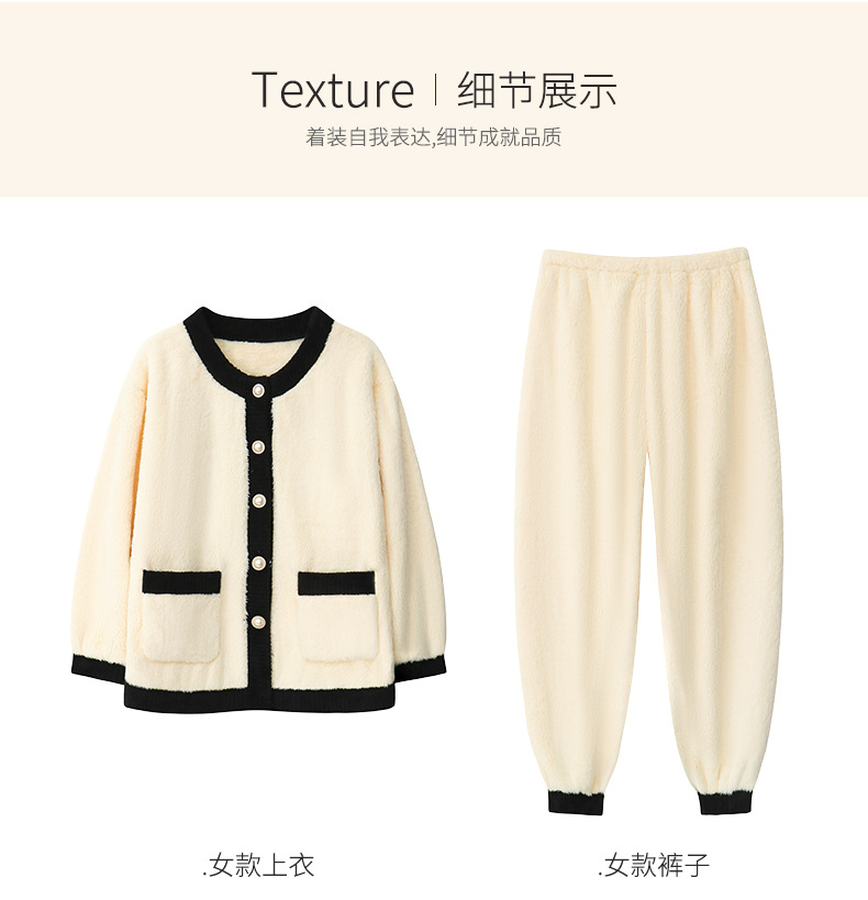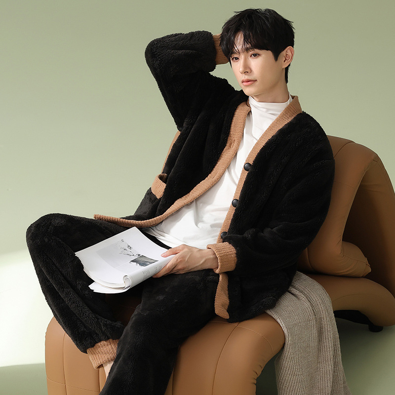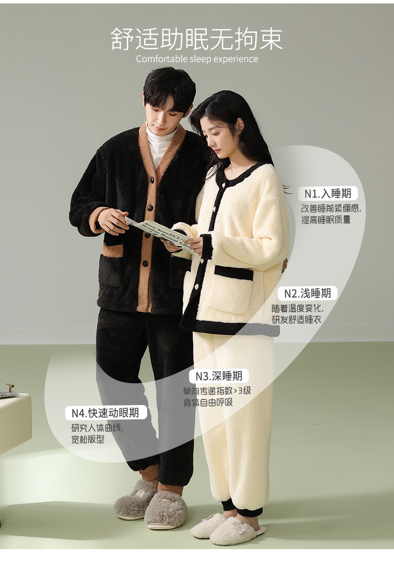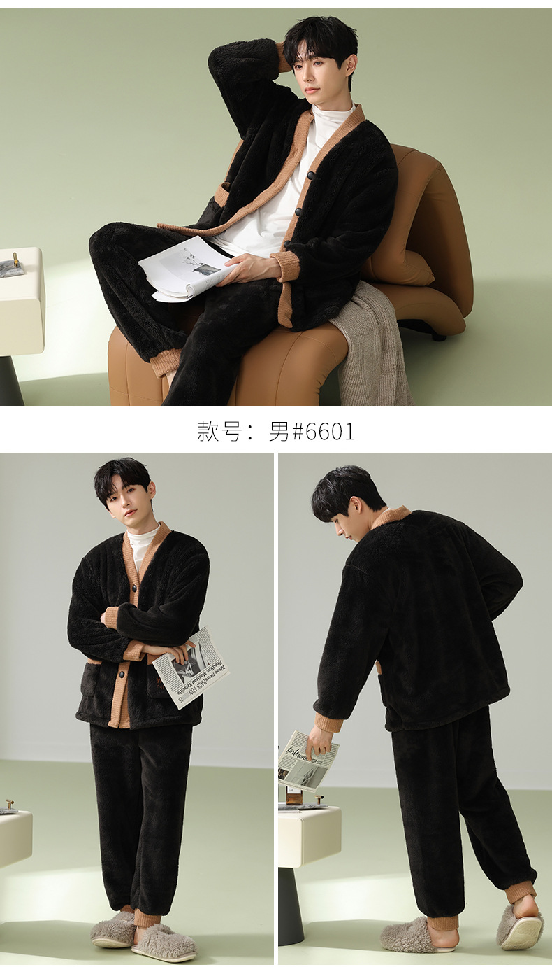 Caini 사랑 산호 양털 커플 잠옷 여자의 겨울 카디건 단추 플란넬 남자의 간단한 단색 가정 옷 세트스토어 가기