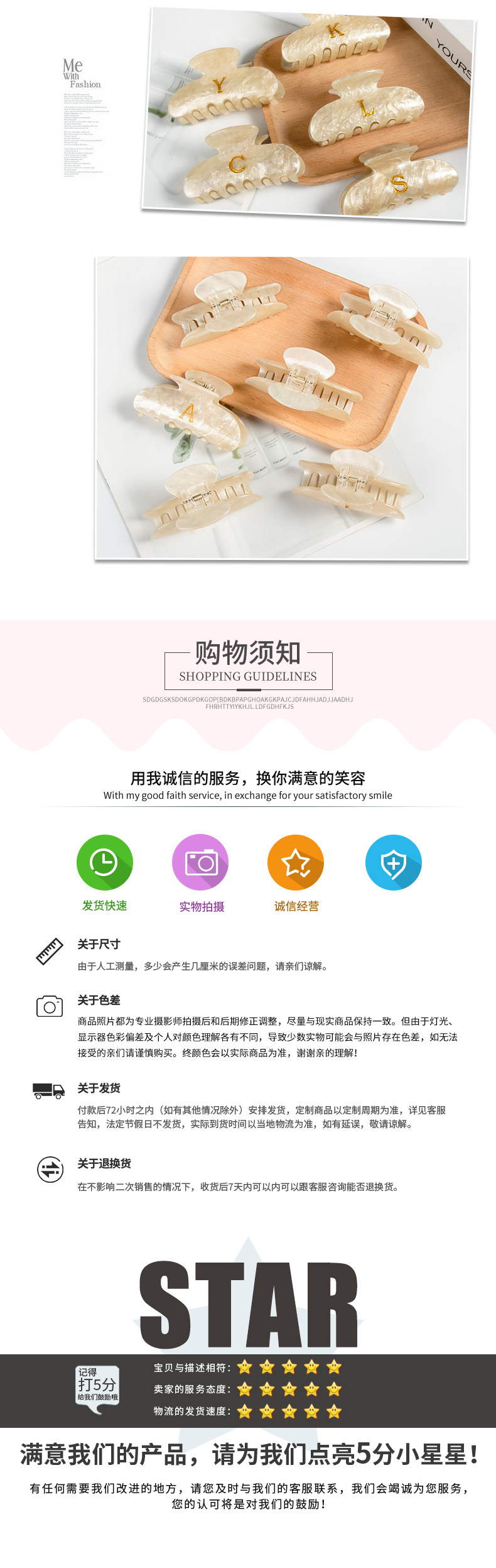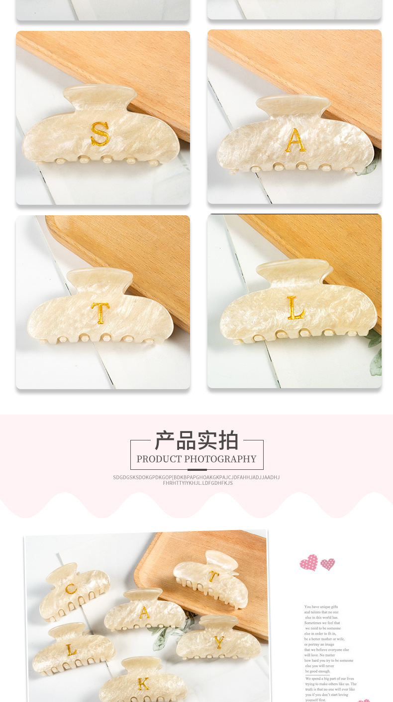 황금 영어 알파벳 머리 장식 골드 파우더 8.6cm 아크릴 그리퍼 9월 신제품 머리핀 알파벳 크리에이티브 머리핀
