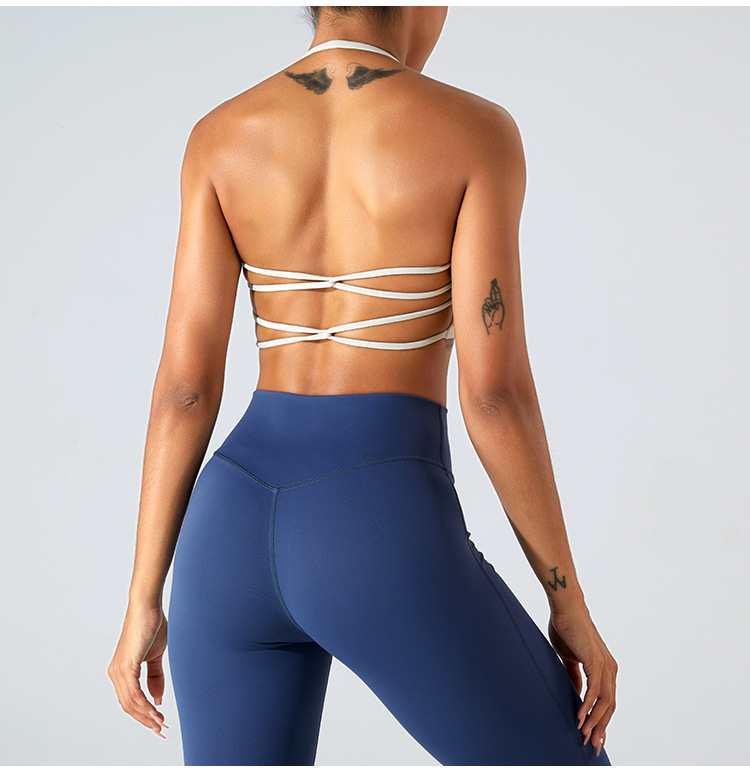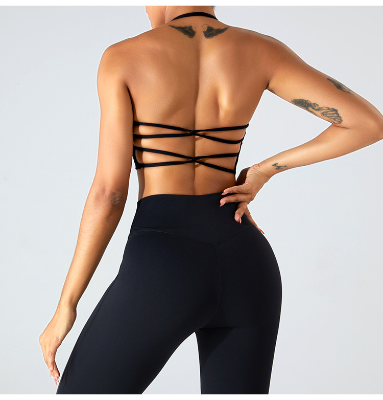 유럽과 미국의 새로운 섹시한 교수형 목 스포츠 속옷 여성용 크로스 백 요가 조끼 스포츠 탑 피트니스 의류
