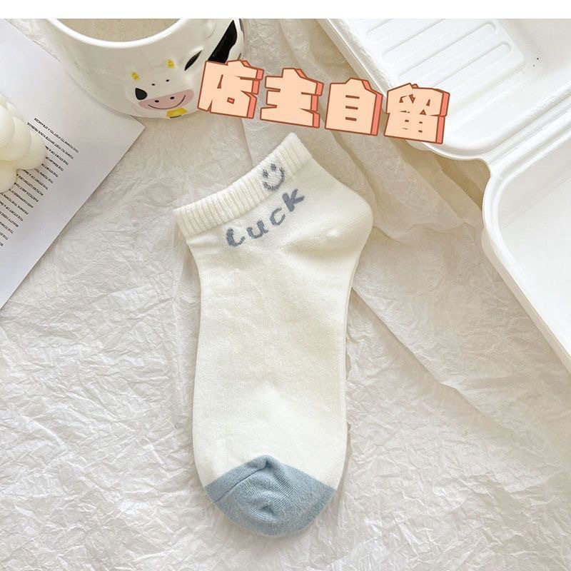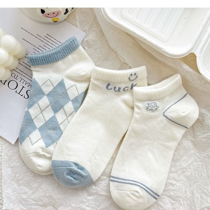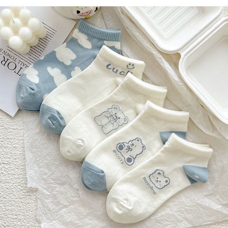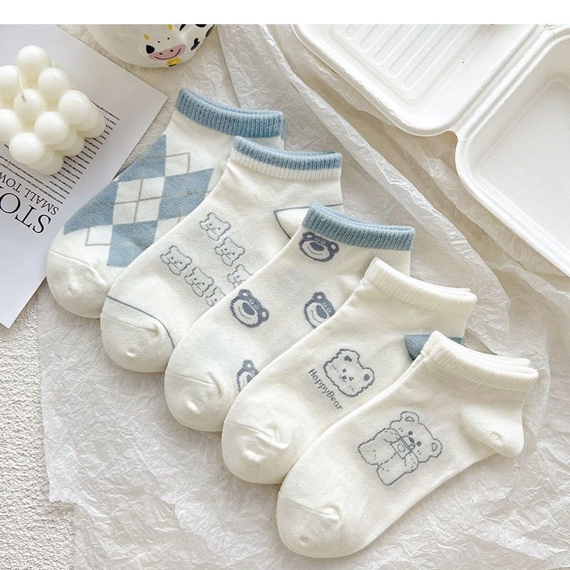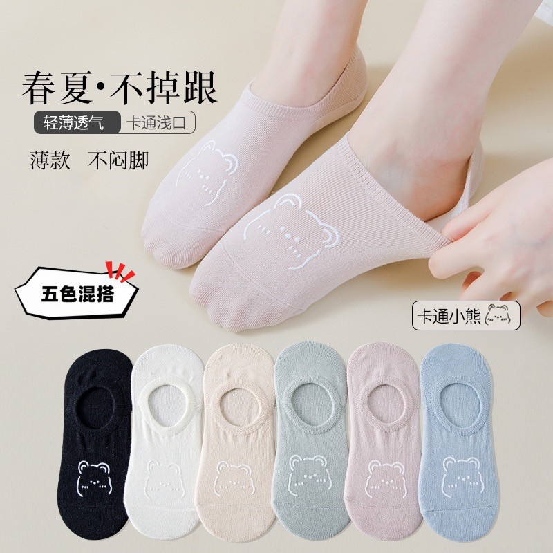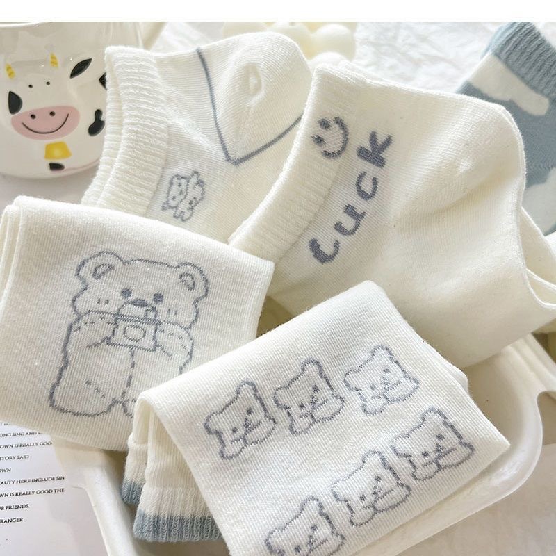 봄과 여름 트렌디 한 블루 베어 양말 여성용 짧은 튜브 인 트렌디 한 귀여운 곰 만화 얕은 입 낮은 탑 여성 양말