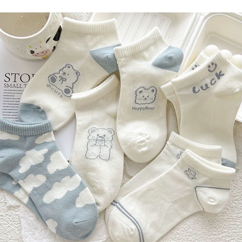 봄과 여름 트렌디 한 블루 베어 양말 여성용 짧은 튜브 인 트렌디 한 귀여운 곰 만화 얕은 입 낮은 탑 여성 양말스토어 가기