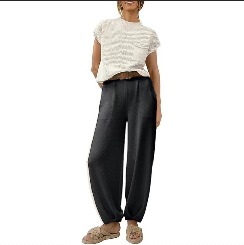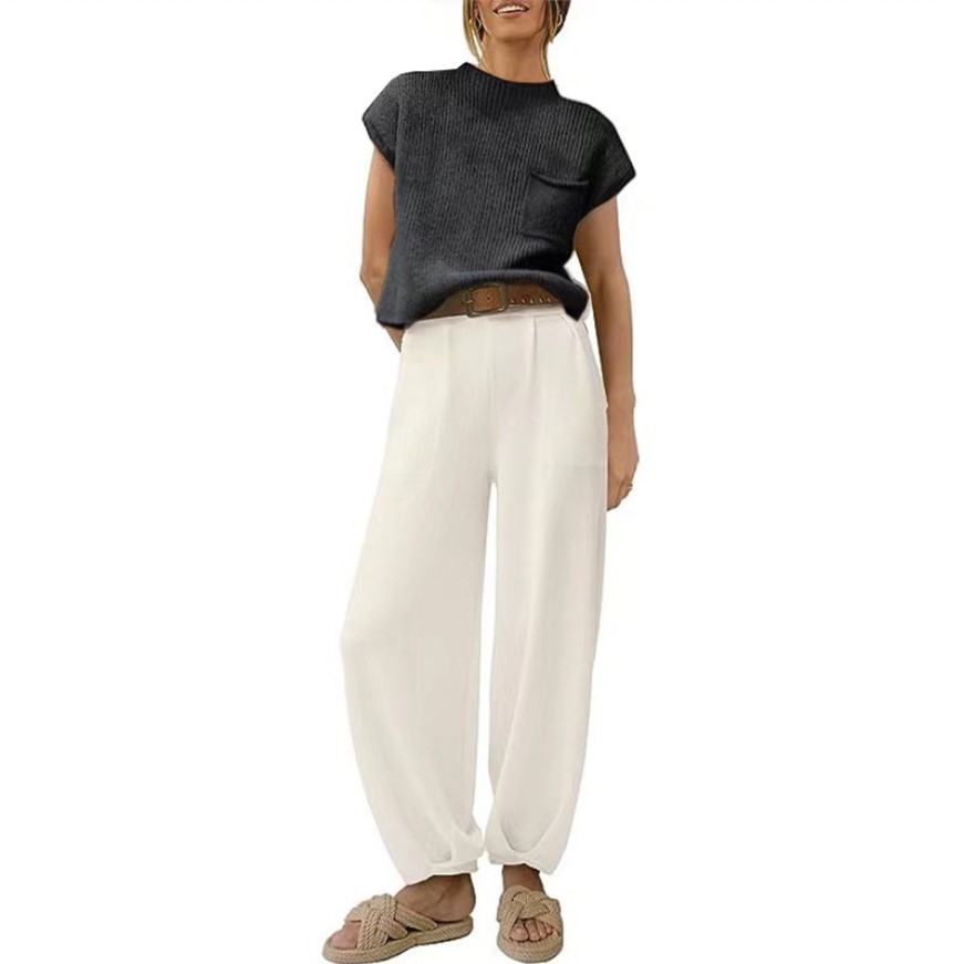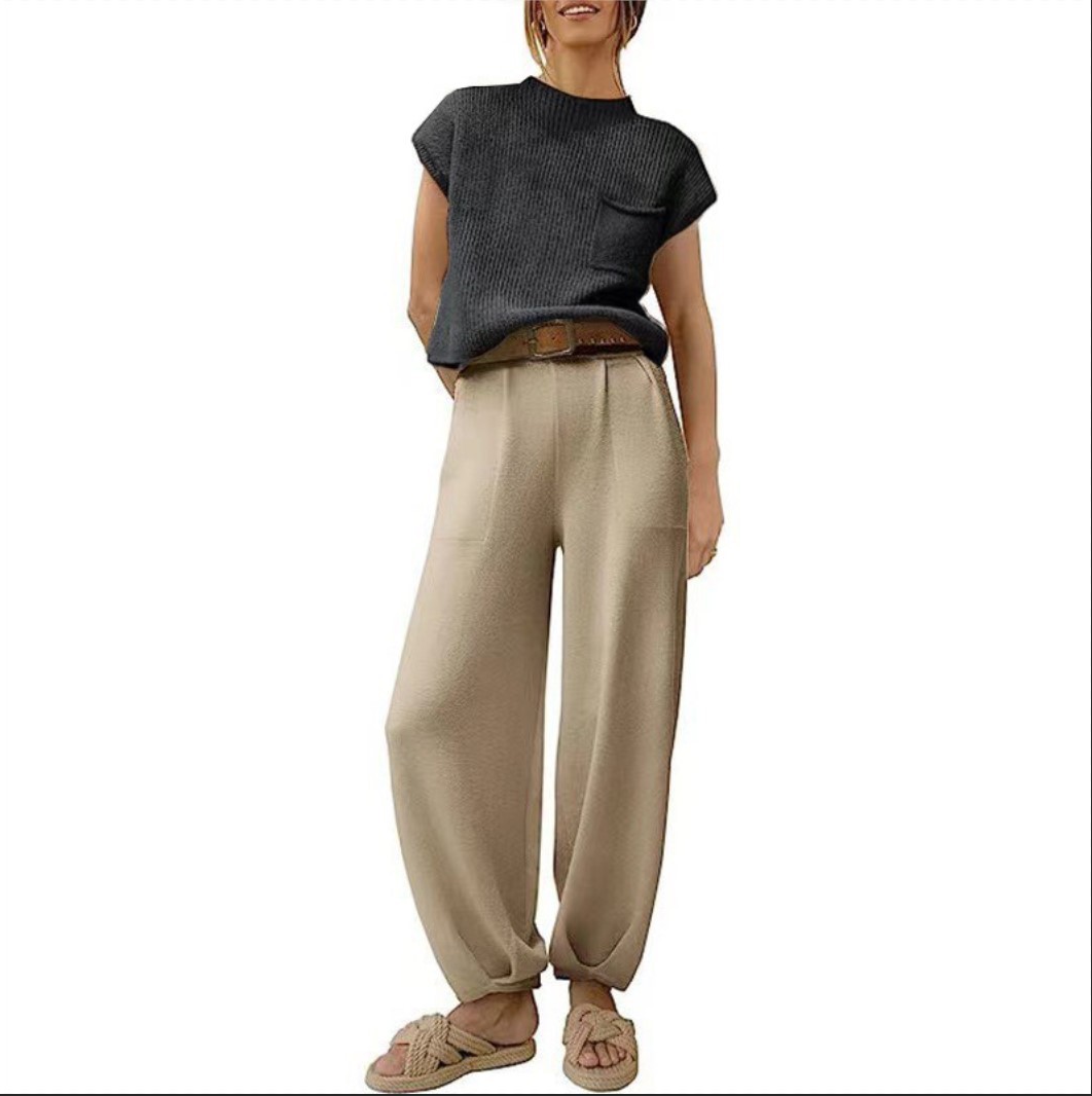 유럽과 미국의 대외 무역 새로운 여성 세트 2023 아마존 국경 단색 새로운 포켓 디자인 발가락 투피스 세트