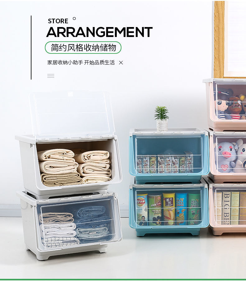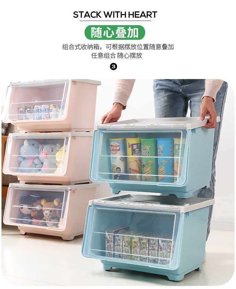 전면 열기 보관함 어린이 장난감 플라스틱 보관함 의류 보관 바구니 간식 가정용 마무리 상자