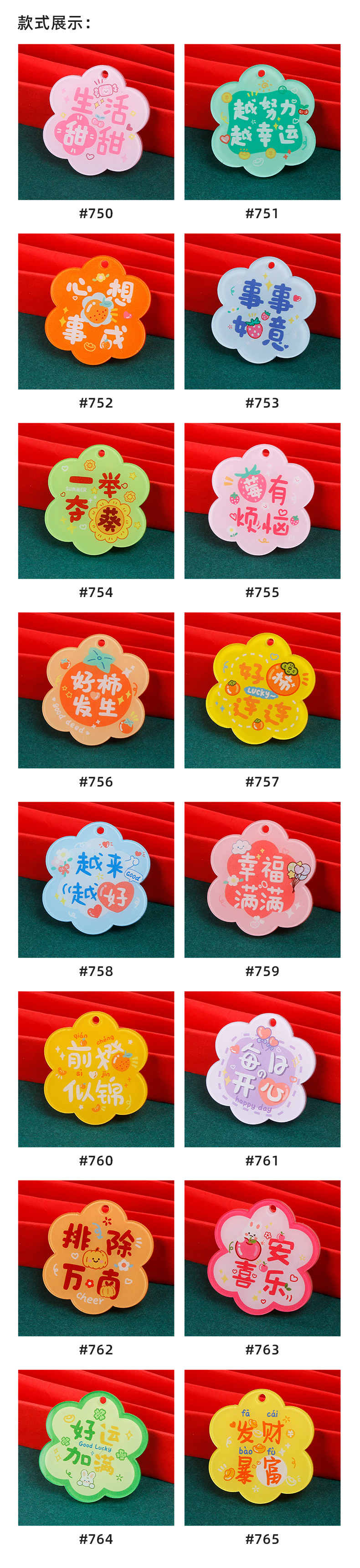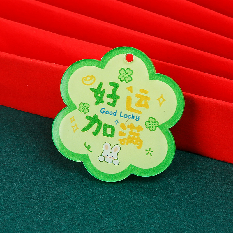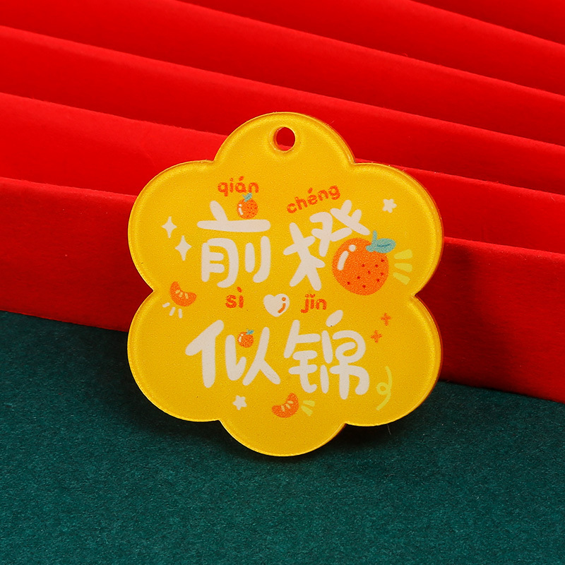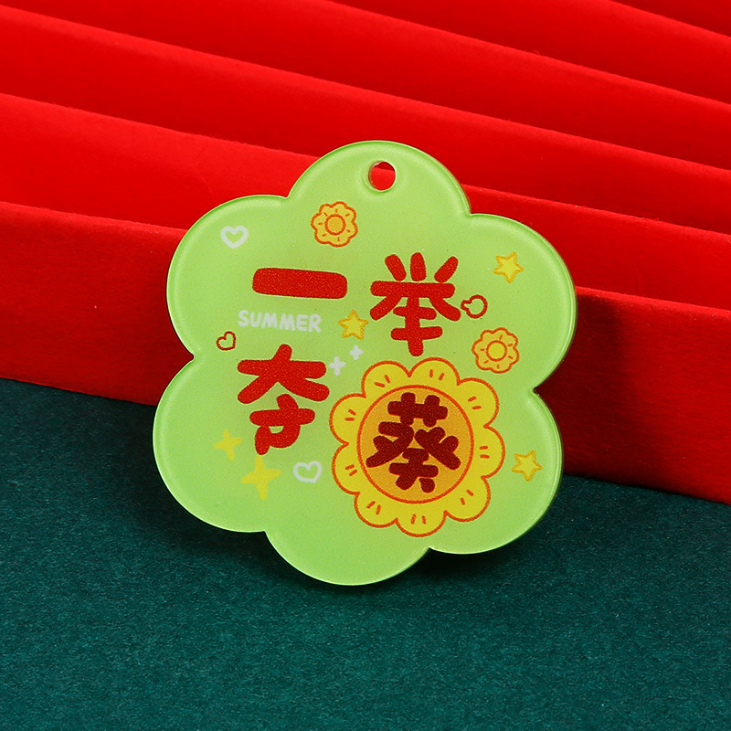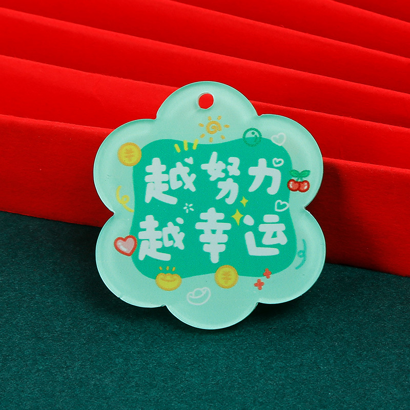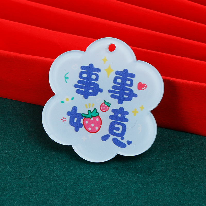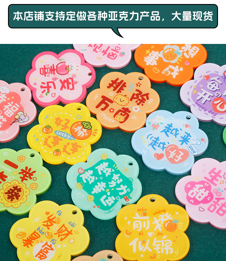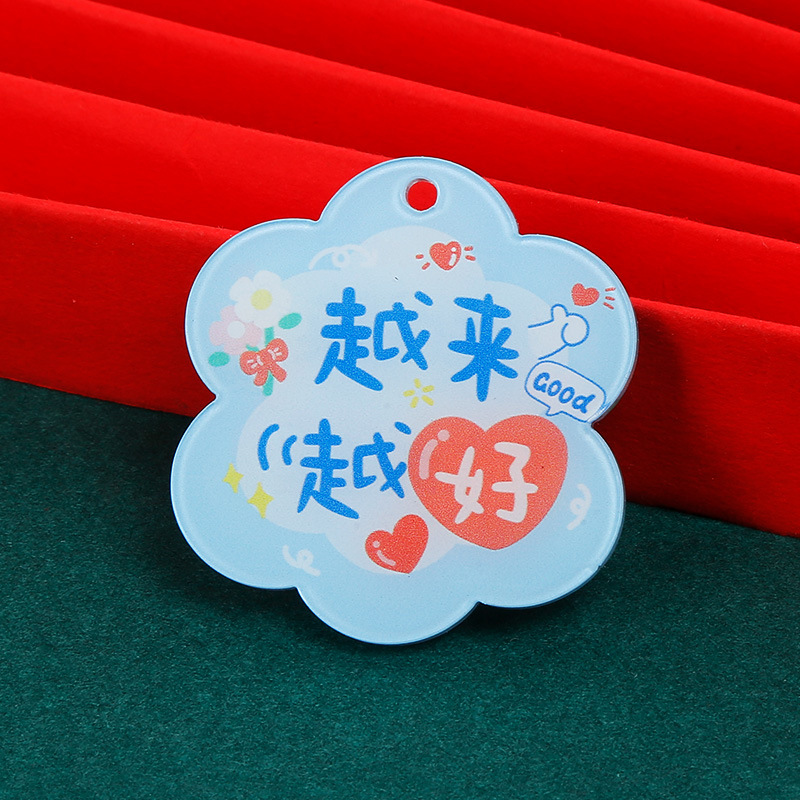 크리 에이 티브 아크릴 양면 텍스트 카드 DIY 액세서리 꽃 모양의 평화와 기쁨 열쇠 고리 펜던트스토어 가기