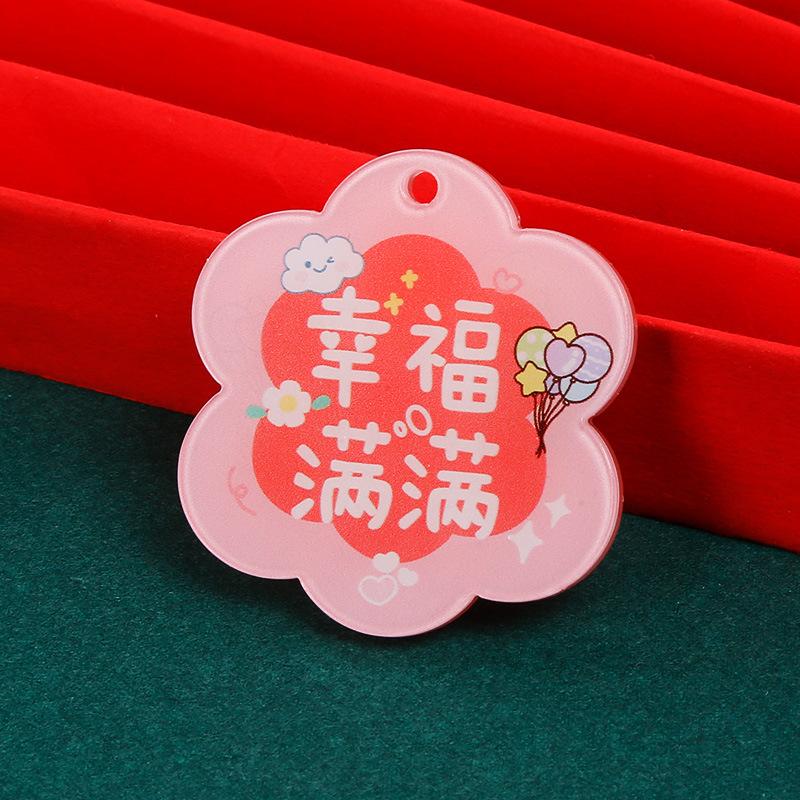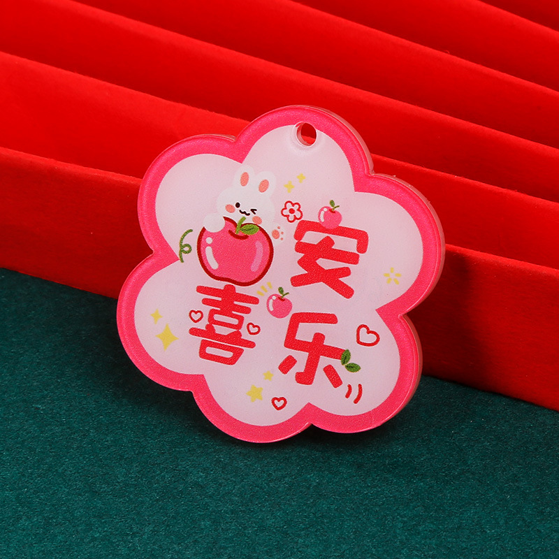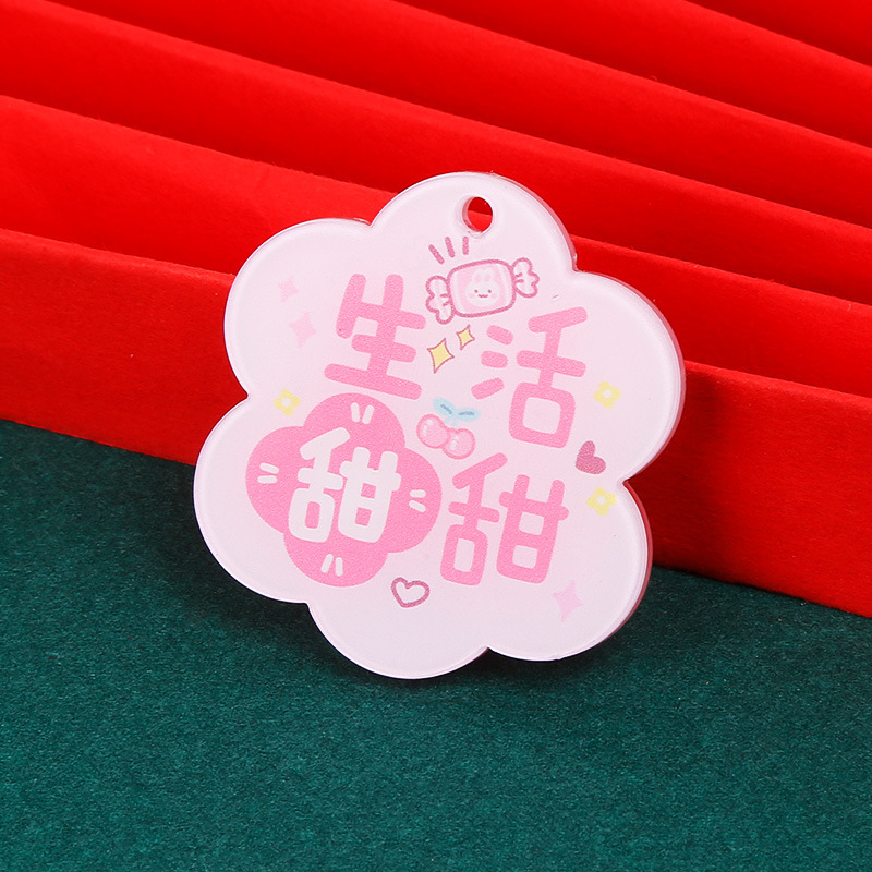 크리 에이 티브 아크릴 양면 텍스트 카드 DIY 액세서리 꽃 모양의 평화와 기쁨 열쇠 고리 펜던트