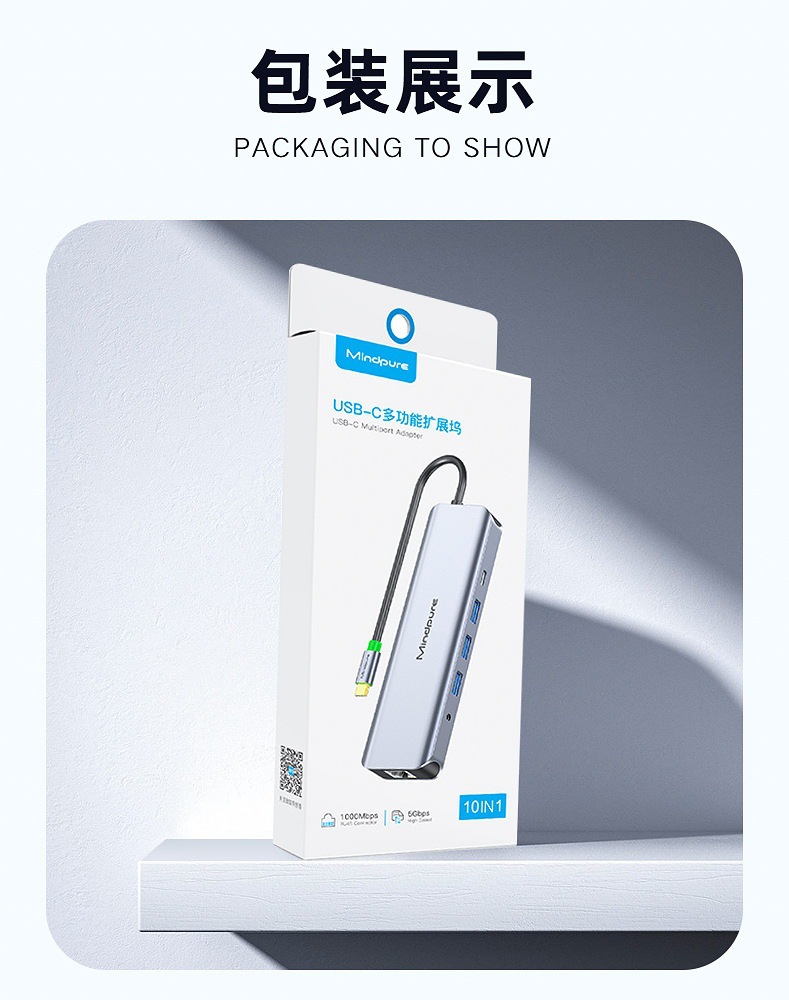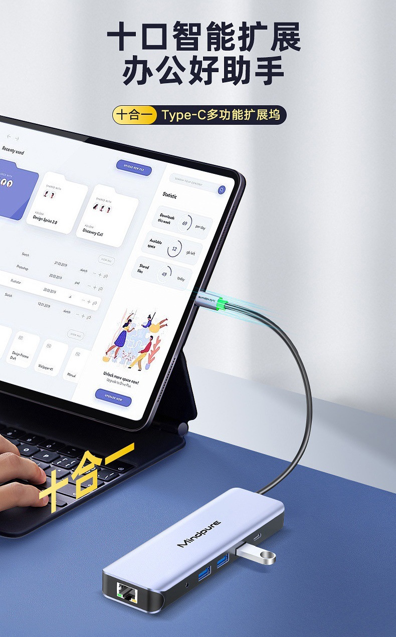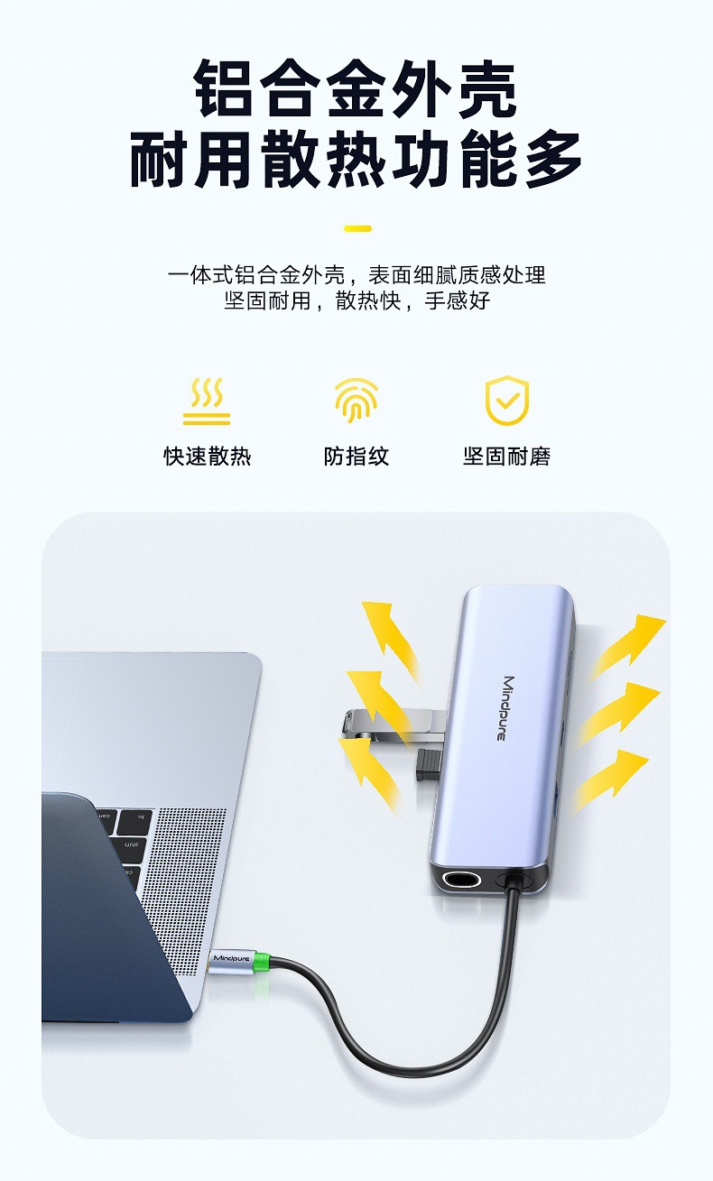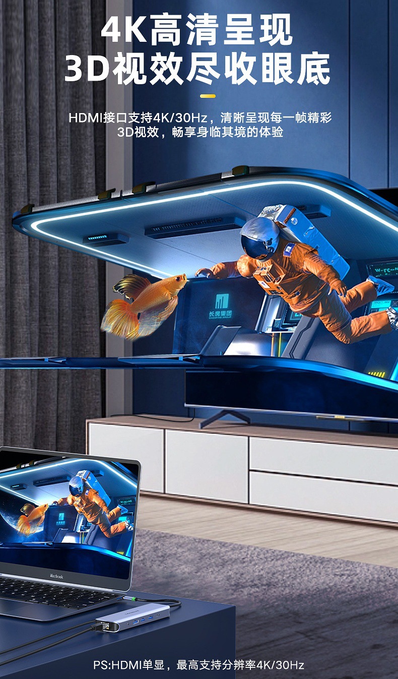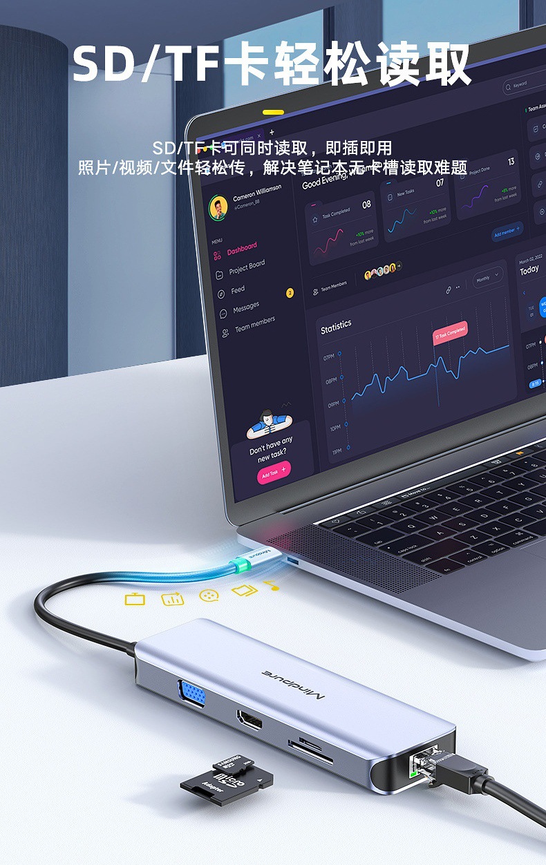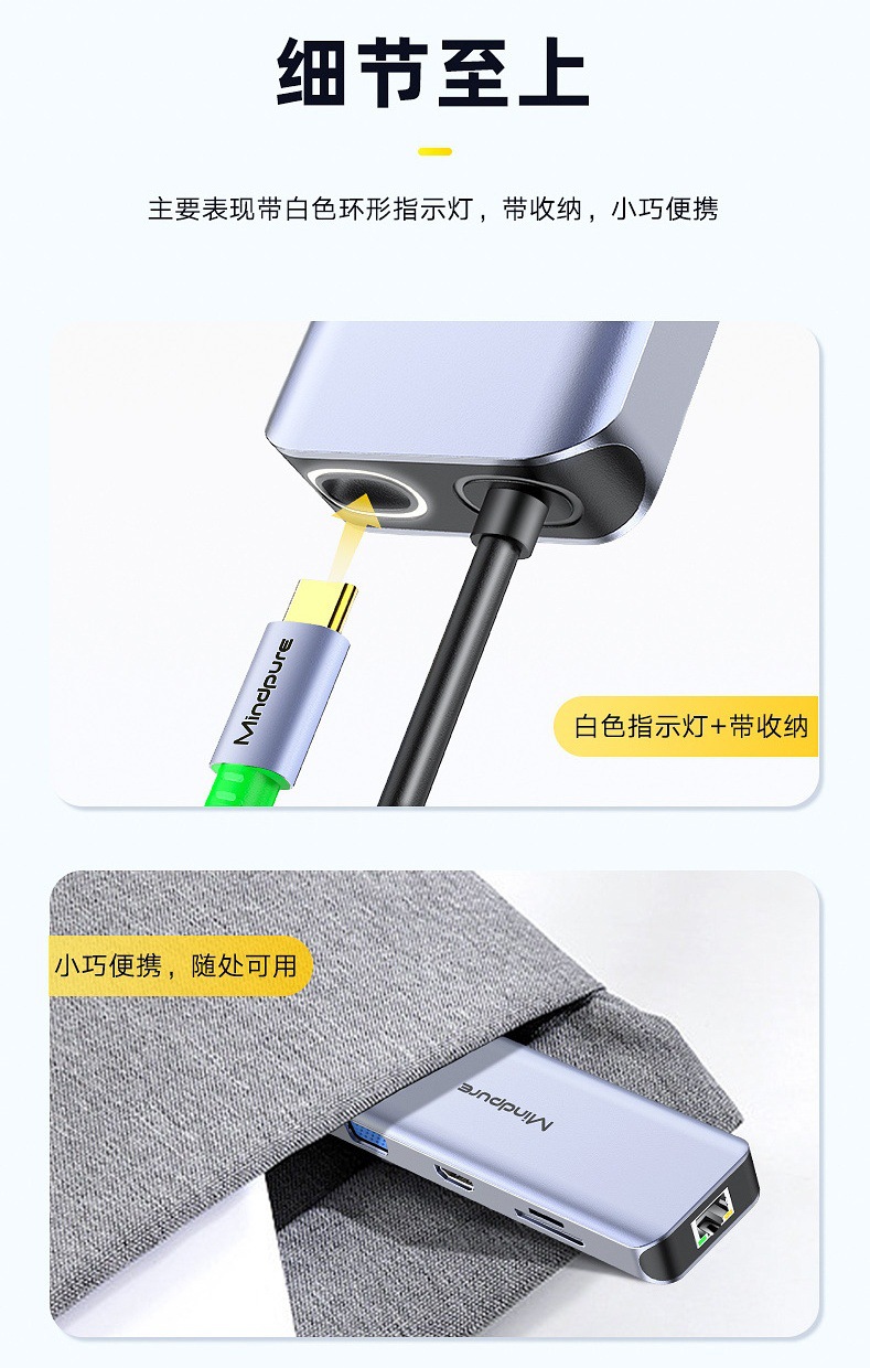 • HU010 Type-C - USB3.0*3+HDMI+PD+SD+TF+기가비트 RJ45 도킹 스테이션 8