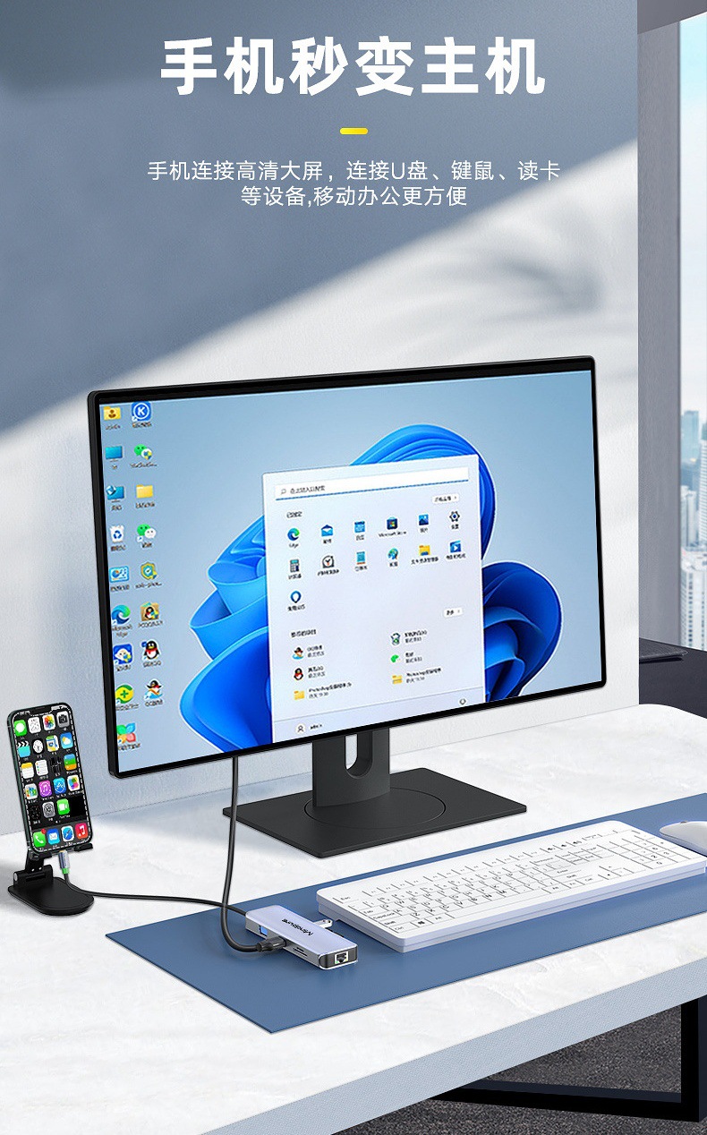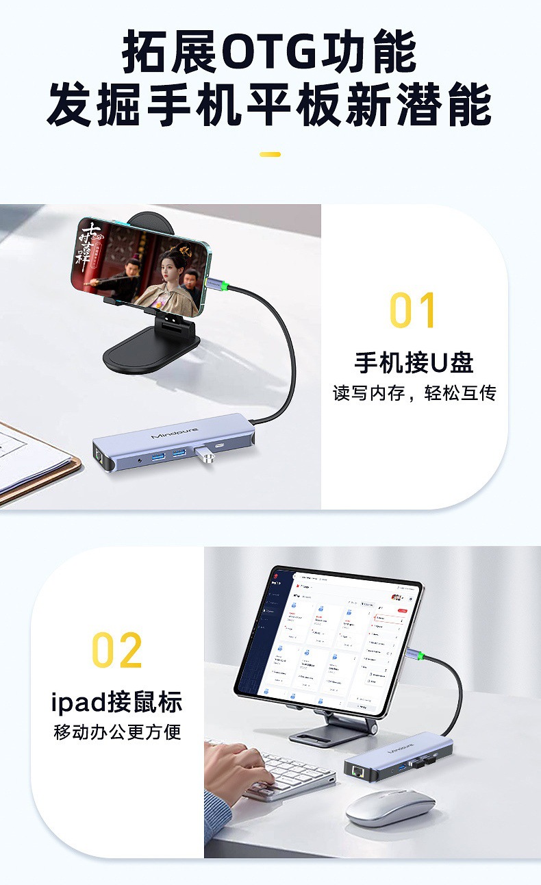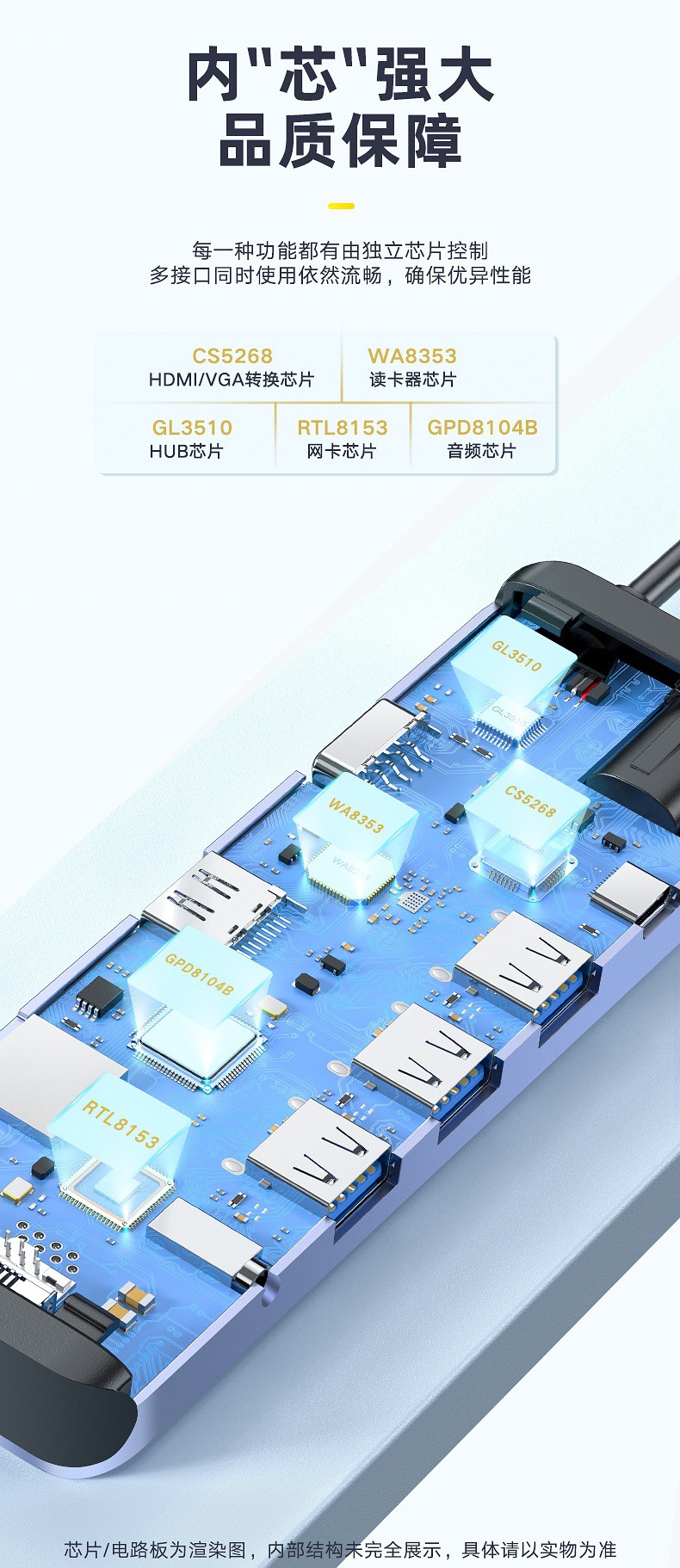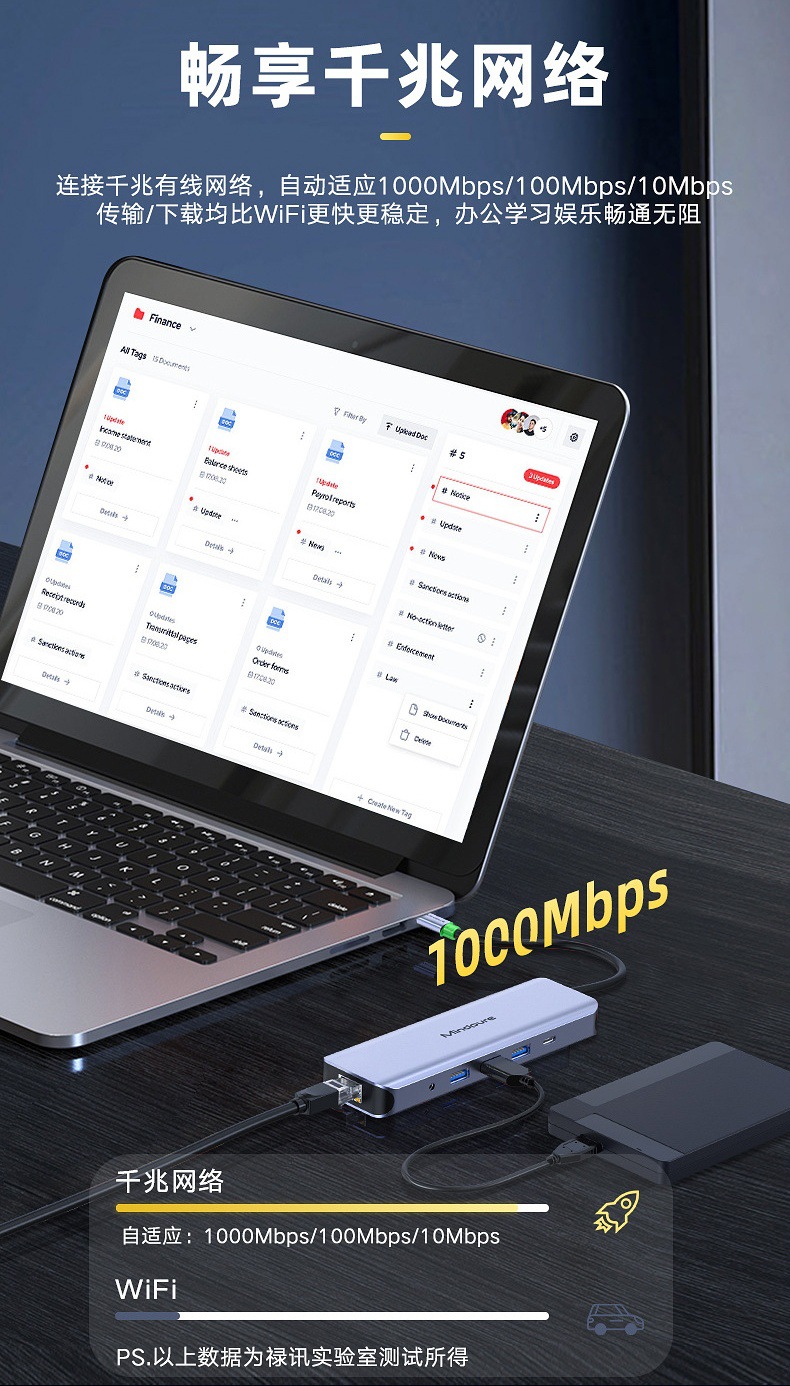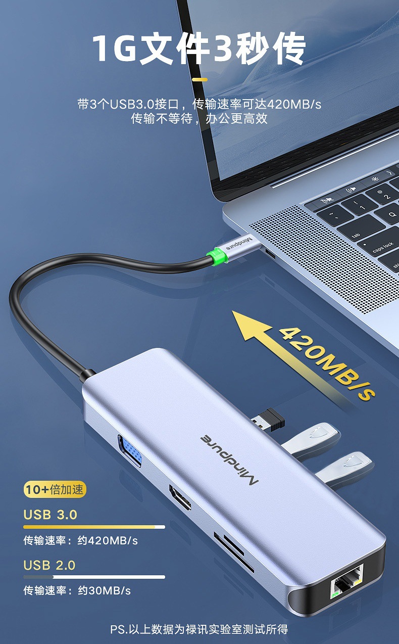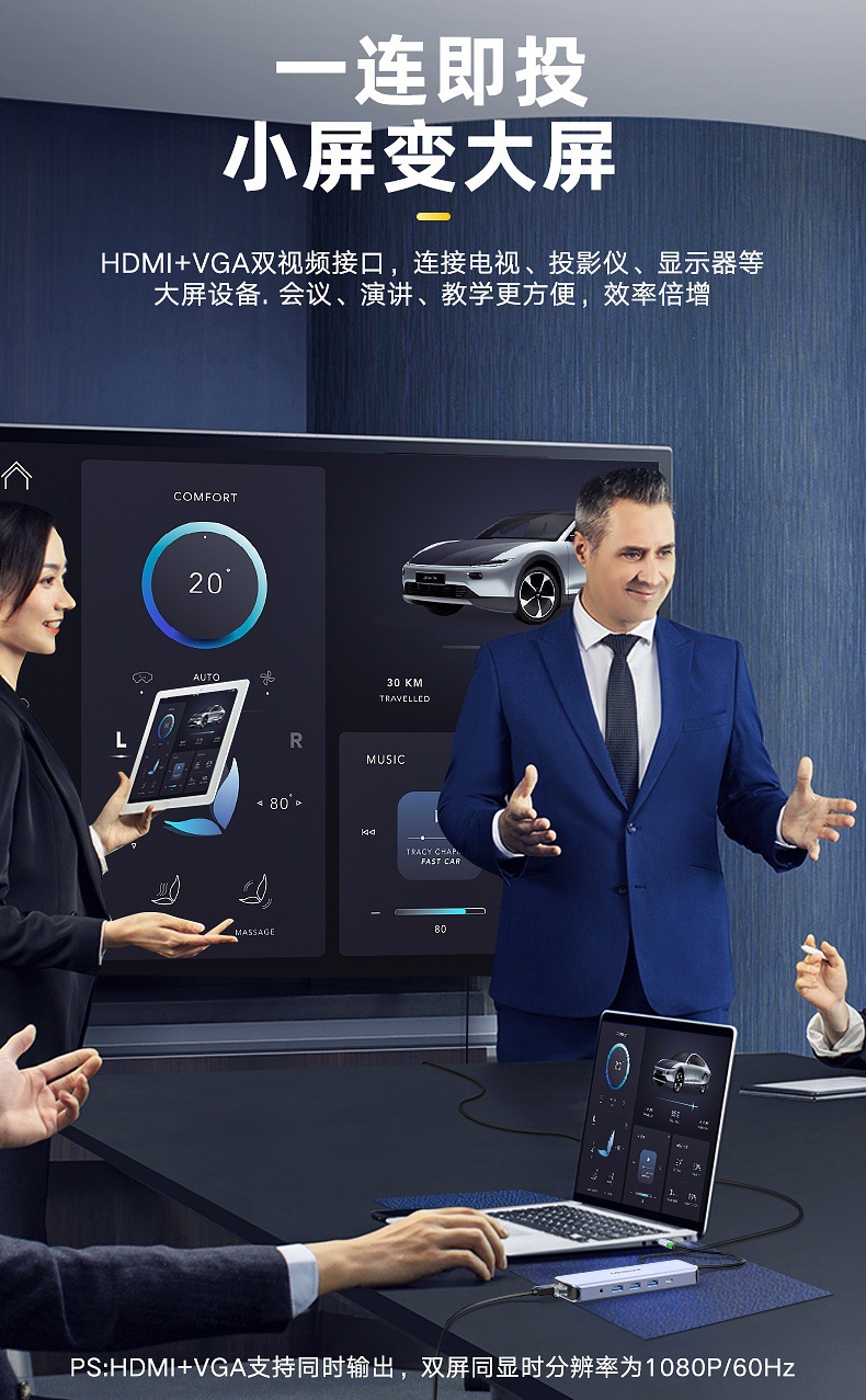 • HU010 Type-C - USB3.0*3+HDMI+PD+SD+TF+기가비트 RJ45 도킹 스테이션 8